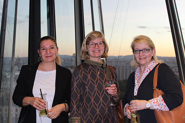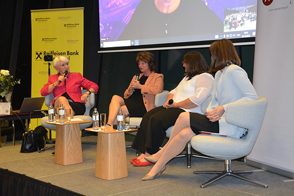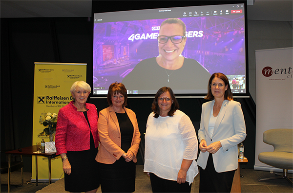 Bei atemberaubendem Ausblick im gläsernen Sky Conference-Dachsaal in der Raiffeisen Bank International, berichteten Henrietta Egerth-Stadlhuber, Nina Kaiser, Karin Meier-Martetschläger und Elisabeth Geyer-Schall im Karriere-Talk mit Maria Rauch-Kallat von ihren umfassenden Erfahrungen als Geschäftsfrauen in Top-Positionen.