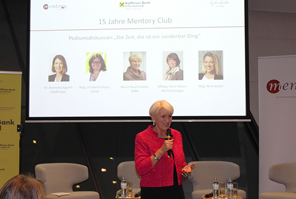 Anlässlich des 15. Geburtstages des Mentory Clubs lud Bundesministerin a.D. Maria Rauch-Kallat zu einem besonderen Clubabend mit einer Podiumsdiskussion zum Thema "Die Zeit, die ist ein sonderbar Ding" ein.