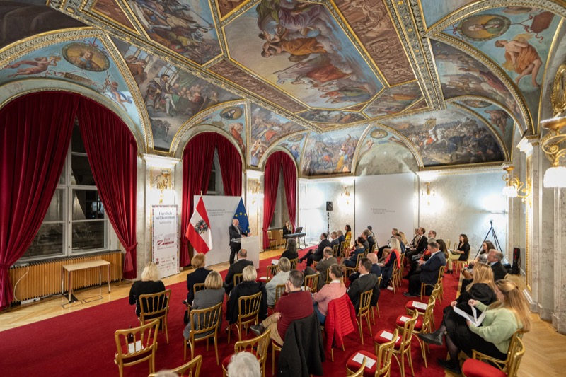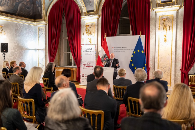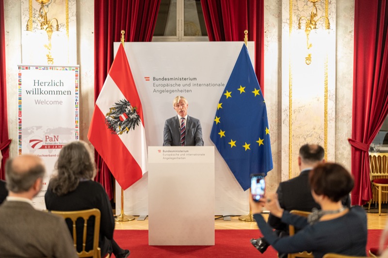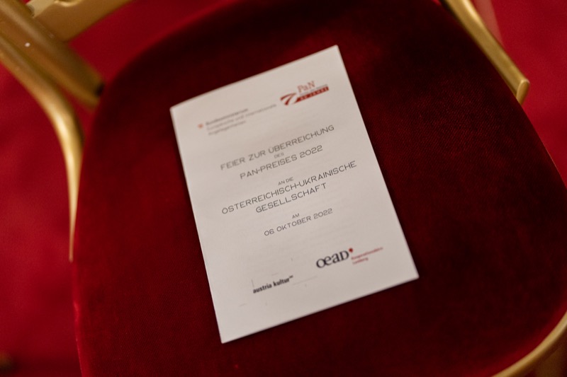 Der alljährlich vom Dachverband aller österreichisch-ausländischen Gesellschaften – PaN vergebene Preis des Bundesministeriums für europäische und internationale Angelegenheiten ging 2022 an die Österreichisch-Ukrainische Gesellschaft. Den Festakt eröffnete Botschafterin Dr. Teresa Indjein, Leiterin der Sektion für internationale Kulturbeziehungen; seitens der Botschaft der Ukraine dankte Gesandter Vadym Kovalevskyi. Die Laudatio hielt PaN-Präsident Univ.-Prof. Dr. Hermann Mückler, die Dankesrede Univ.-Prof. Dr. Alois Woldan, Präsident der Österreichisch-Ukrainischen Gesellschaft. Die ukrainische Opernsängerin Zoryana Kushpler, begleitet von Iryna Nikolayeva, gestaltete den musikalischen Rahmen.