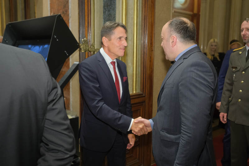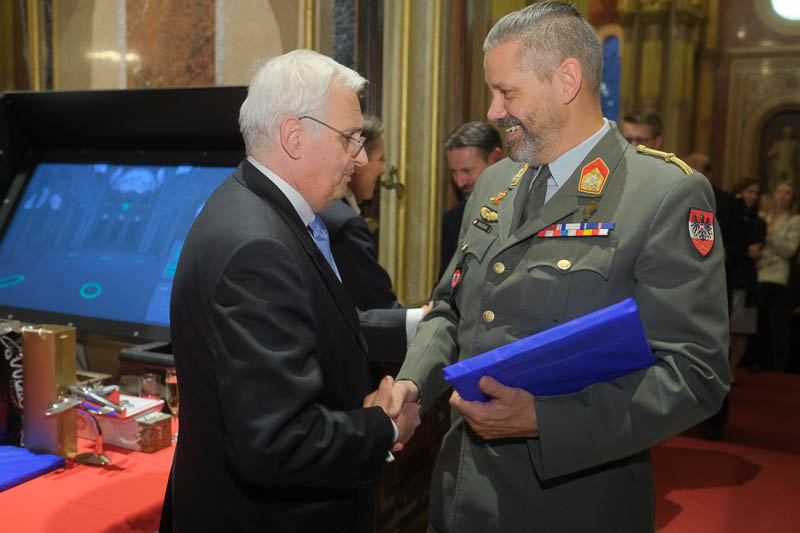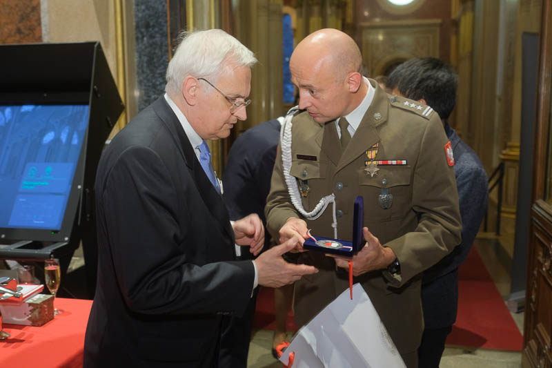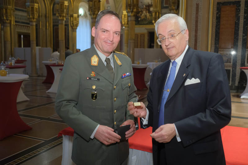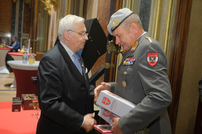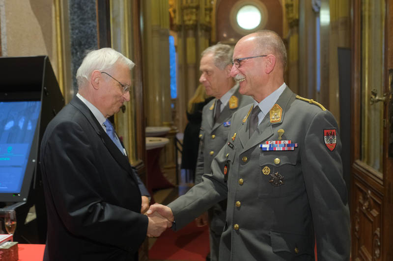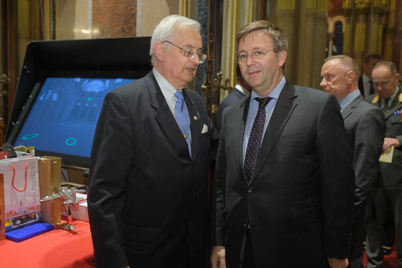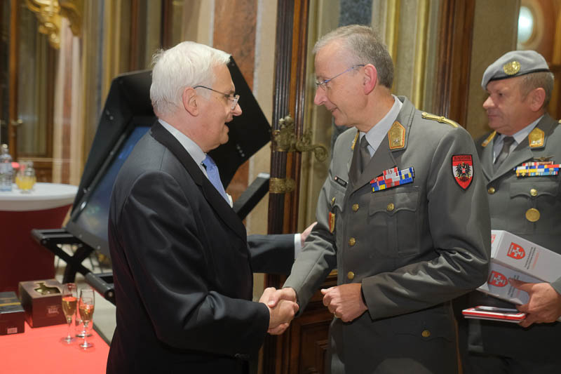 Nationalratsabgeordneter Dr. Reinhard Eugen Bösch lud anlässlich seiner Verabschiedung als Obmann des Landesverteidigungsausschusses sowie des Geburtstages von Cav. Marco Mercuri zu einem Empfang für Diplomaten und Militärs in die Ruhmeshalle des Heeresgeschichtlichen Museums.