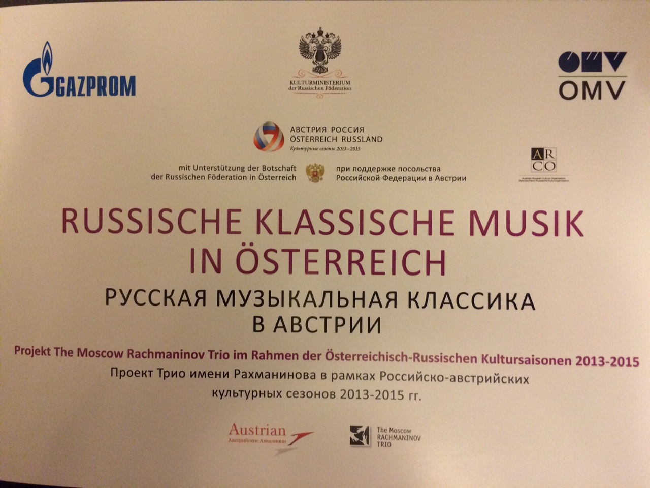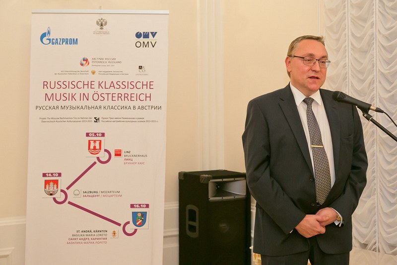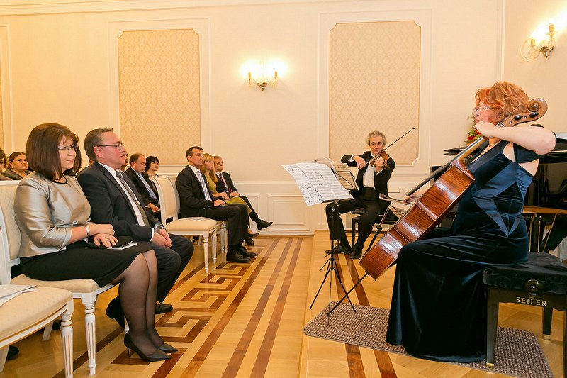 Anlässlich der Überreichung des Beglaubigungsschreibens durch den neuen russischen Botschafter in Österreich, S.E. Dimitry E. Lyubinskiy, luden er und seine Frau Elena N. Lyubinskaya zu einem Konzert des "Moscow Rachmaninov-Trios" und anschliessendem Empfang in die Botschaft.