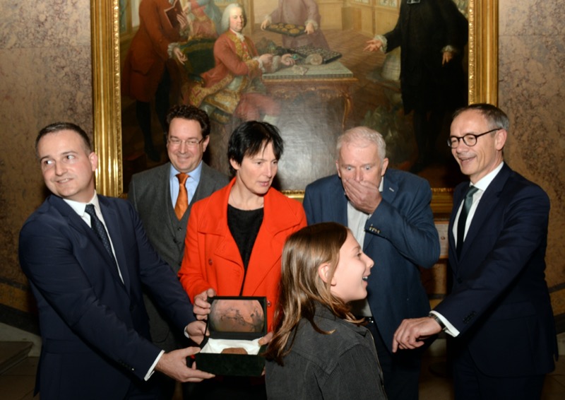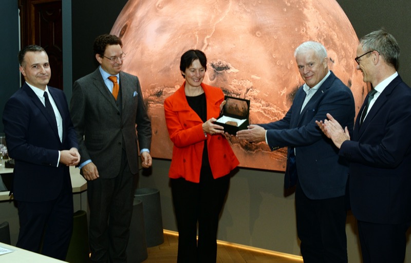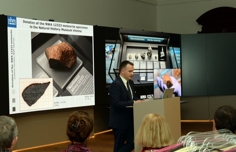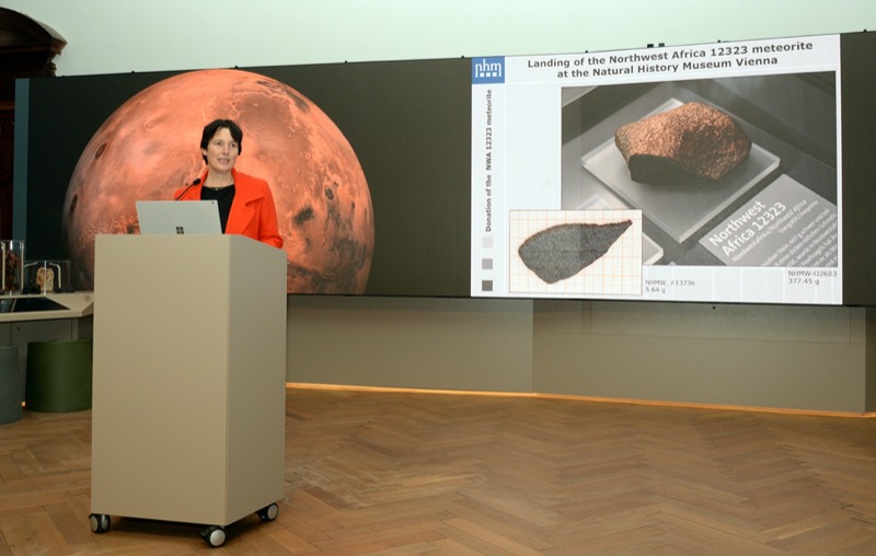 Das Naturhistorische Museum Wien und die Botschaft des Königreichs der Niederlande luden zur Übergabe eines Mars-Meteoriten auf das Deck 50 und anschließend in den Meteoritensaal des NHM Wien. Der Mars-Meteorit Nordwestafrika (NWA) 12323 entstand auf dem Planeten Mars, wurde durch einen Impact durch den Weltraum geschleudert und landete als 447 Gramm schwerer Meteorit auf der Erde in Nordwestafrika. Das Naturhistorische Museum Wien beherbergt die größte Meteoritenschau der Welt mit mehr als 1.100 ausgestellten Meteoritenstücken. Die Dauerpräsentation wurde vor genau 10 Jahren generalsaniert und modernisiert. Die Meteoritensammlung des NHM Wien ist die weltweit älteste ihrer Art.
