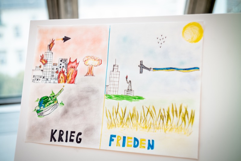 Kürzlich fand die Eröffnung der Ausstellung "𝐌𝐨𝐦, 𝐈 𝐝𝐨𝐧’𝐭 𝐰𝐚𝐧𝐭 𝐰𝐚𝐫! - 𝟏𝟗𝟑𝟗-𝟏𝟗𝟒𝟓 𝐏𝐎𝐋𝐄𝐍 | 𝟐𝟎𝟐𝟐 𝐔𝐊𝐑𝐀𝐈𝐍𝐄" mit anschließender Diskussion statt. Während des Abends wurden auch die Werke der Kinder präsentiert, die am Kunstwettbewerb "𝐊𝐢𝐧𝐝𝐞𝐫 𝐰𝐮̈𝐧𝐬𝐜𝐡𝐞𝐧 𝐬𝐢𝐜𝐡 𝐅𝐫𝐢𝐞𝐝𝐞𝐧" teilgenommen haben.