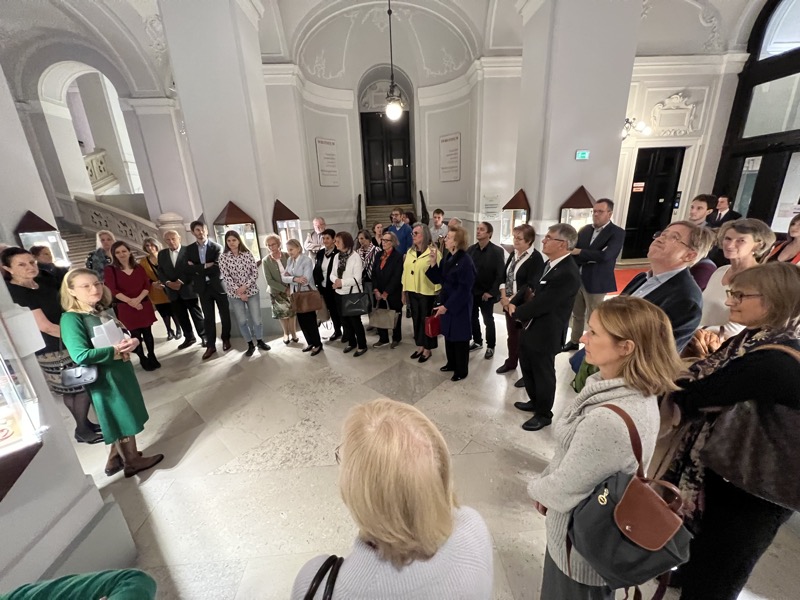 Das Dorotheum Wien und der Vorstand der Österreich-Belgischen Gesellschaft luden die Mitglieder und Freunde der Gesellschaft, sowie Diplomaten der belgischen Botschaft und der IAEO zu einer exklusiven Hausführung und Preview der Herbstauktionen in das Palais Dorotheum ein. Nach den Führungen gab Frau Karin Saey MBA, Prokuristin (Leitung Bereich Handel) einen Empfang für die Gäste.
