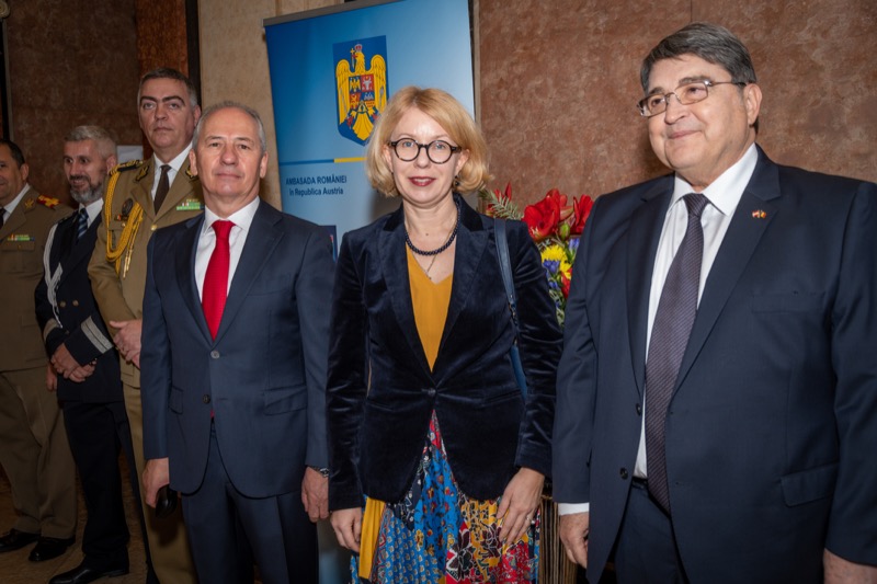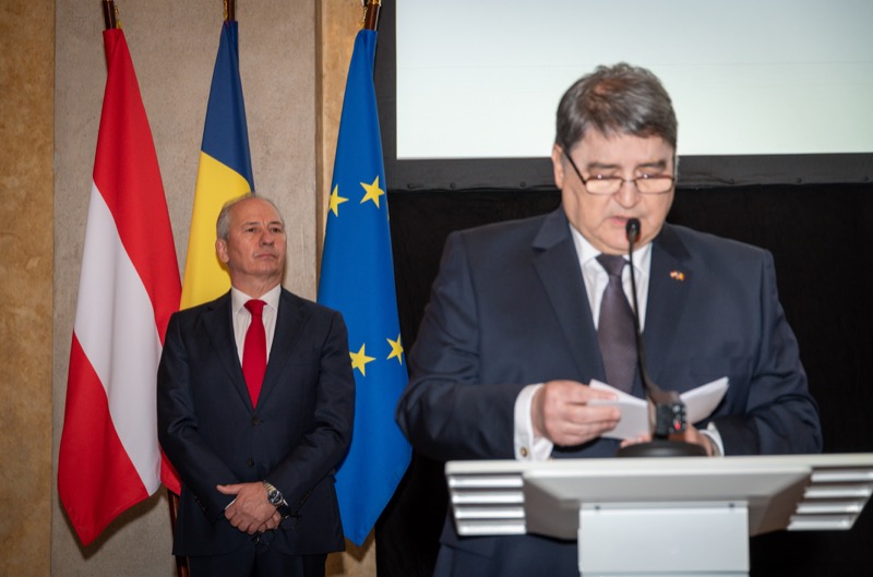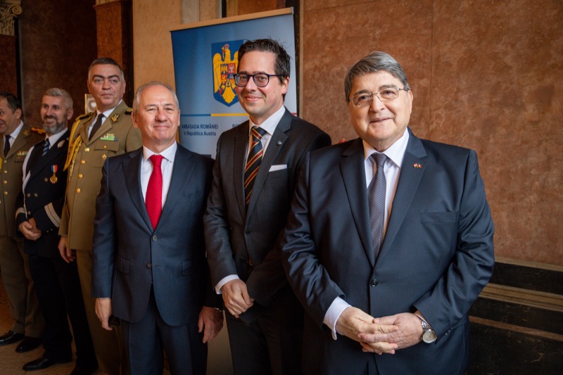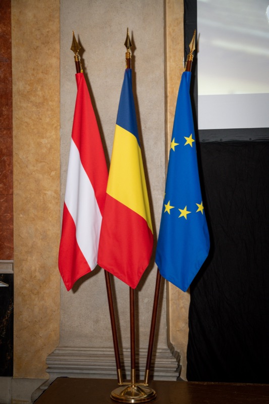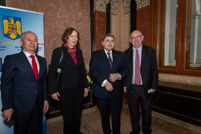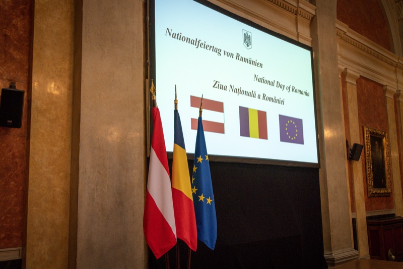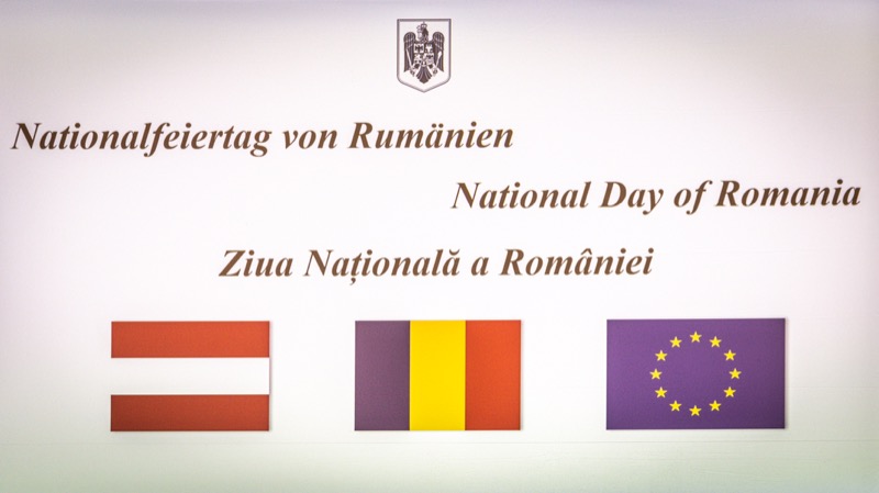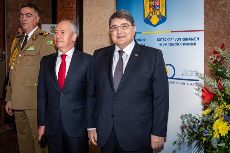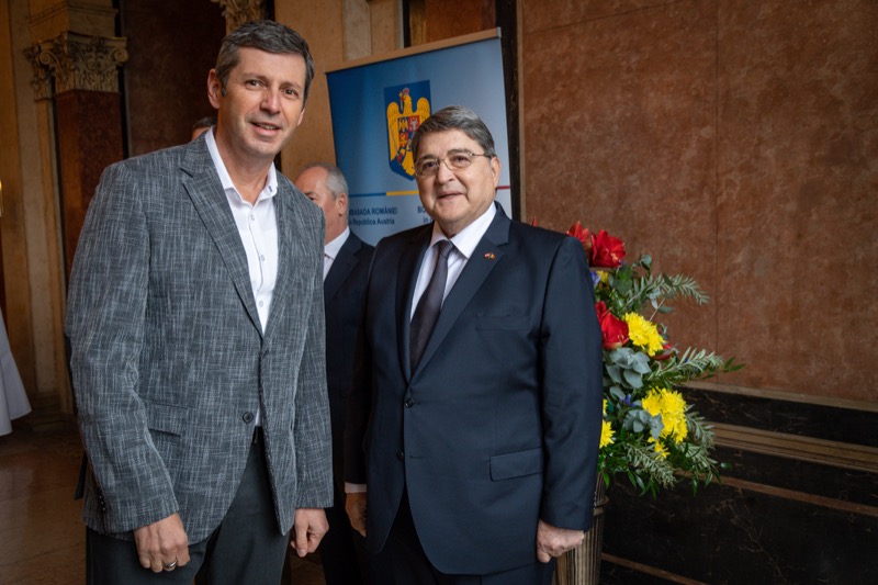 S.E. Emil Hurezeanu, Botschafter von Rumänien, und S.E. Stelian Stoian, Botschafter und Ständiger Vertreter beiden Internationalen Organisationen, luden anlässlich des Nationalfeiertages zu einem Empfang in die Wiener Börsensäle.