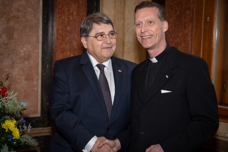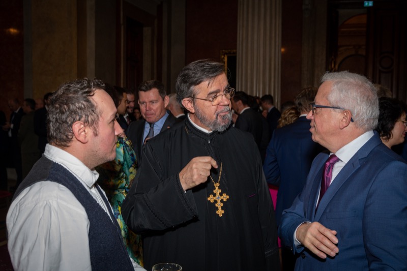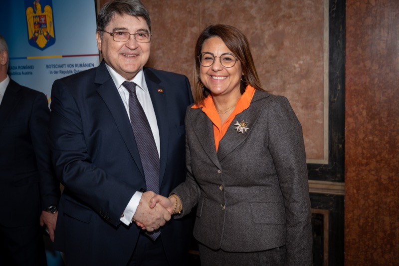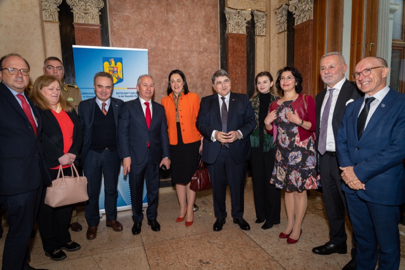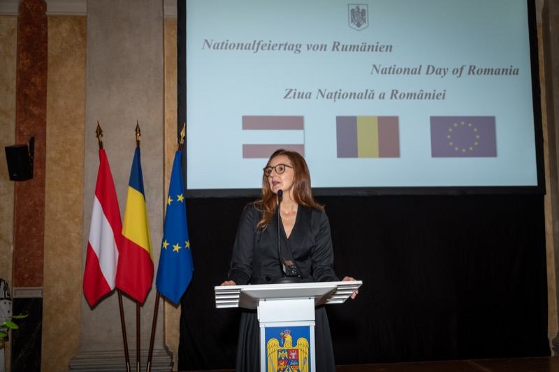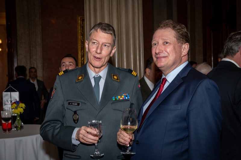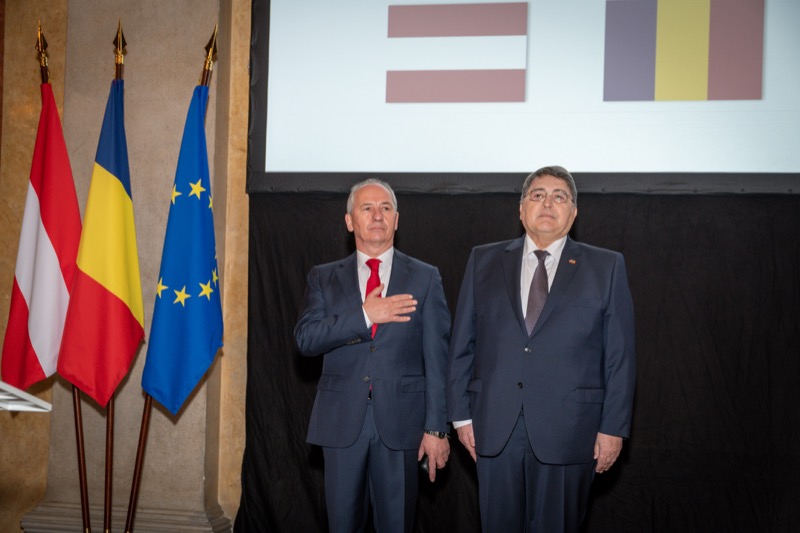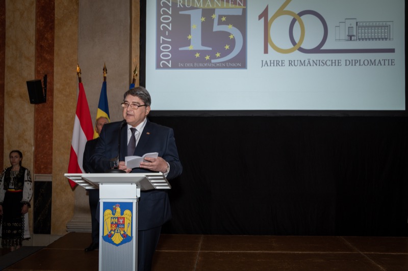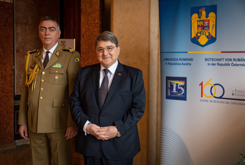 S.E. Emil Hurezeanu, Botschafter von Rumänien, und S.E. Stelian Stoian, Botschafter und Ständiger Vertreter beiden Internationalen Organisationen, luden anlässlich des Nationalfeiertages zu einem Empfang in die Wiener Börsensäle.