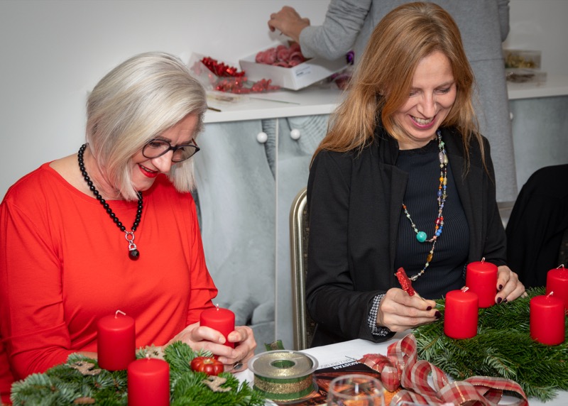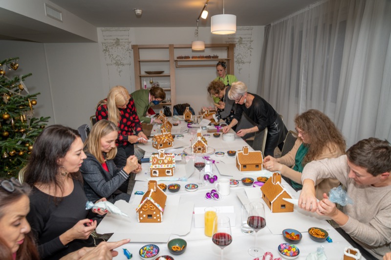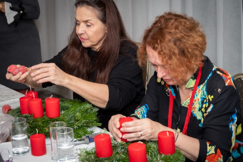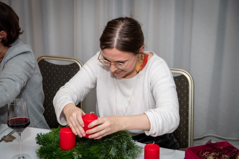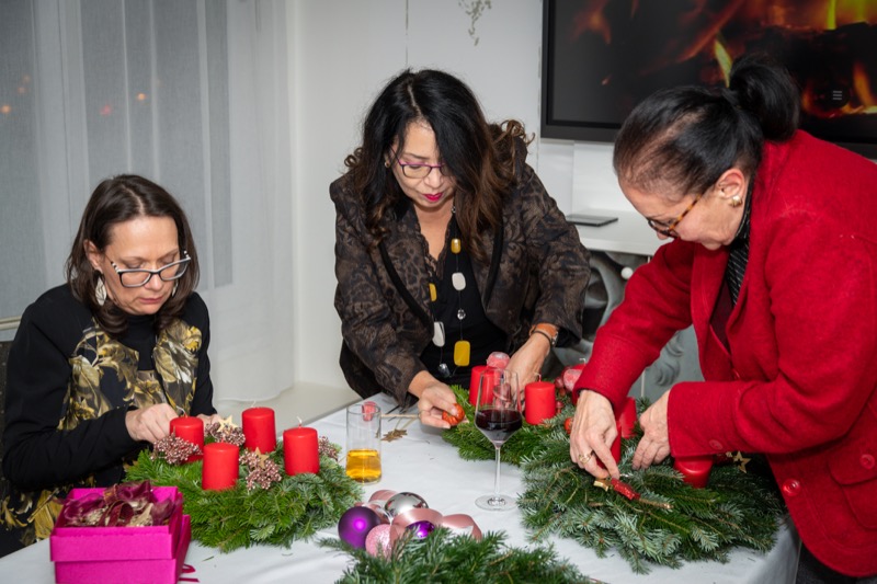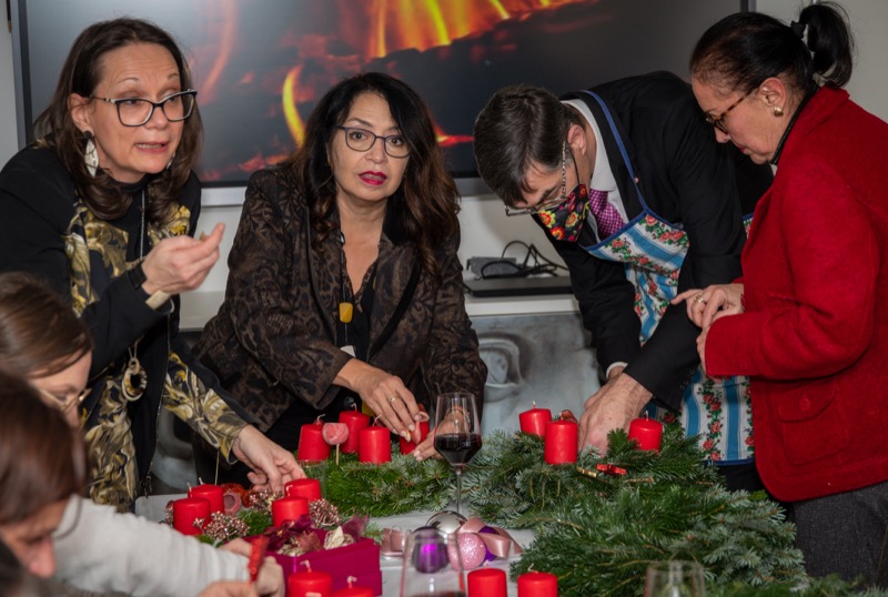 Andrea Fürnweger, Herausgeberin von CERCLE DIPLOMATIQUE, lud gemeinsam mit Direktor Sebastian Ömer und Tobias Walther, Sales Development Arcotel, persönliche AssistentInnen und Protokoll-MitarbeiterInnen der Botschaften im Arcotel Kaiserwasser zu einem vorweihnachtlichen Get-together ein. Als Willkommens-Begrüßung wurden Maroni und ausgezeichneter Punsch gereicht. Alle TeilnehmerInnen hatten zudem die Möglichkeit die beiden neu gestalteten Suiten sowie Zimmer exklusiv zu besuchen. Danach wurde die Gruppe in zwei kleinere Gruppe aufgeteilt. Während die eine unter der professionellen Hilfe der Chef-Patissière des hauseigenen Restaurants UNO zuerst ein Lebkuchenhaus gestalten und dekorieren konnte, zeigte sich die andere Gruppe beim Schmücken eines Adventkranzes sehr kreativ – danach wurden die Gruppen getauscht. Im Anschluss wurde die Runde mit warmen Köstlichkeiten der hoteleigenen Küche sowie köstlichen Dessertvariationen und heimischen Weinen verwöhnt.