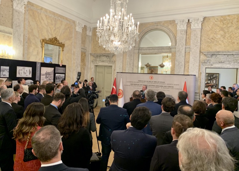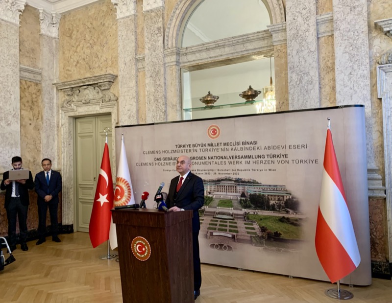 lud unter Teilnahme des Nationalratspräsidenten von Österreich, Wolfgang Sobotka, zur Eröffnung der Ausstellung DAS GEBÄUDE DER GROßEN NATIONALVERSAMMLUNG TÜRKİYE - CLEMENS HOLZMEISTERS MONUMENTALES WERK IM HERZEN VON TÜRKİYE in die Botschaft der Republik Türkiye.