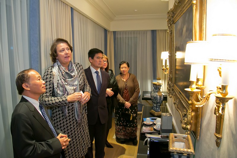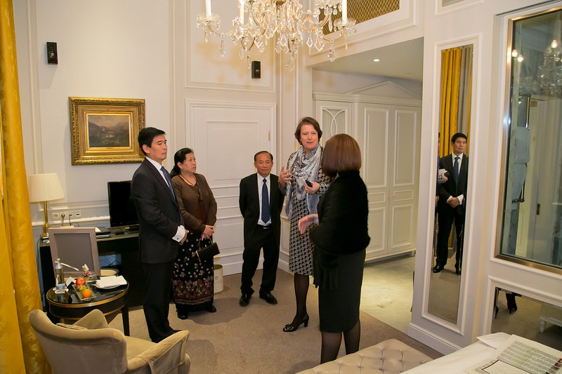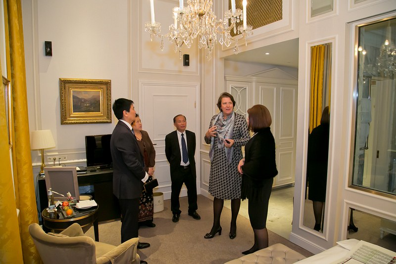 Nach einer kurzen Begrüssung und gestärkt durch kulinarische Köstlichkeiten (der berühmte Original-Sacher-Würfel durfte nicht fehlen, die Original-Sacher-Torte gab es zum Abschied für jeden Gast mit nach Hause!) konnten sich die interessierten Gäste bei einer Führung mit Brigitta Hartl-Wagner, Chief Sales and Marketing Officer, einen Eindruck vom Hotel verschaffen.