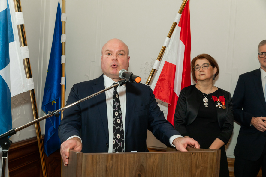 Anlässlich des Unabhängigkeitstages Finnlands luden I.E. Pirkko Hämäläinen, Botschafterin und Ständige Vertreterin Finnlands in Österreich, S.E. Vesa Häkkinen, Ständiger Vertreter Finnlands bei der OSZE und Verteidigungsattaché Hauptmann (Marine) Jaakko Jäntti zu einem Empfang in die Residenz der Botschaft von Finnland.
