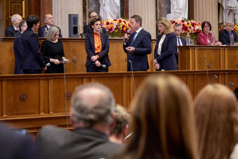 Das sanierte Parlamentsgebäude wurde am Donnerstag, den 12. Jänner 2023, um 15.00 Uhr mit einem Festakt im Bundesversammlungssaal eröffnet. Nationalratspräsident Wolfgang Sobotka, Bundesratspräsident Günter Kovacs, Zweite Nationalratspräsidentin Doris Bures und Dritter Nationalratspräsident Norbert Hofer hielten die Eröffnungsreden. Die Festrede kam vom ehemaligen Präsidenten des Deutschen Bundestages Wolfgang Schäuble. Abschließend fand ein moderiertes Gespräch mit Vertreter:innen aller Parlamentsfraktionen statt. Moderiert wurde der Festakt von den ORF-Journalistinnen Clarissa Stadler und Rebekka Salzer. Die musikalische Umrahmung erfolgte durch die Wiener Philharmoniker, die Wiener Sängerknaben und die Wiener Chormädchen.