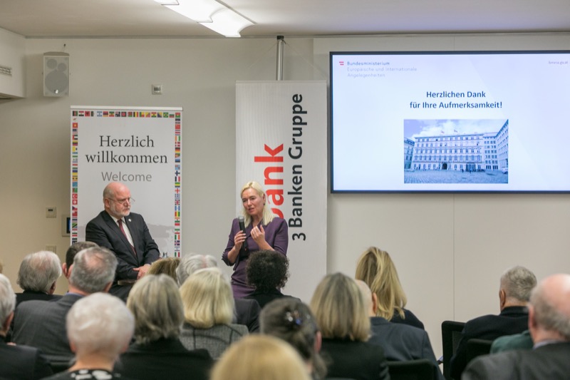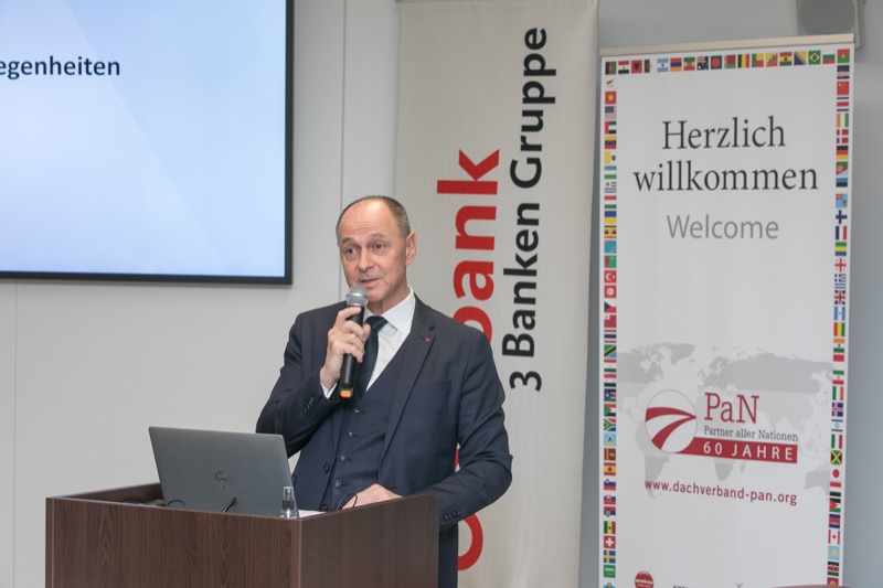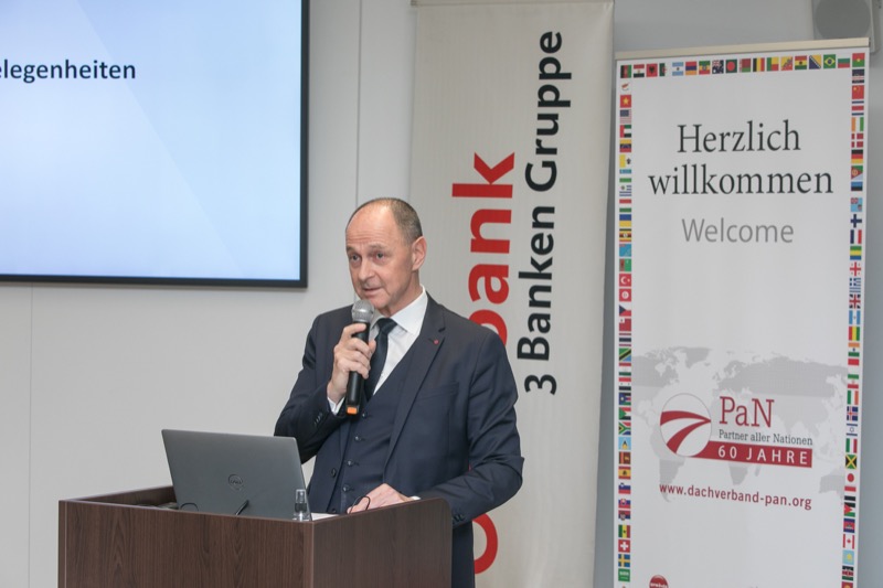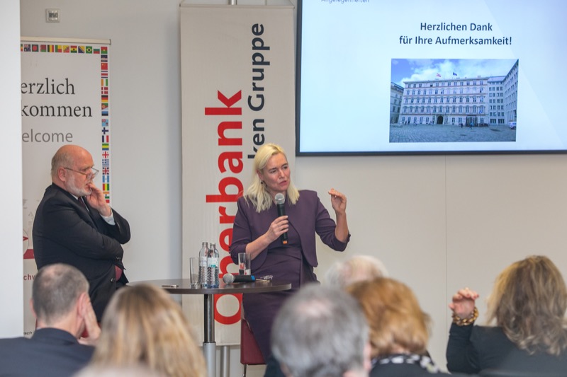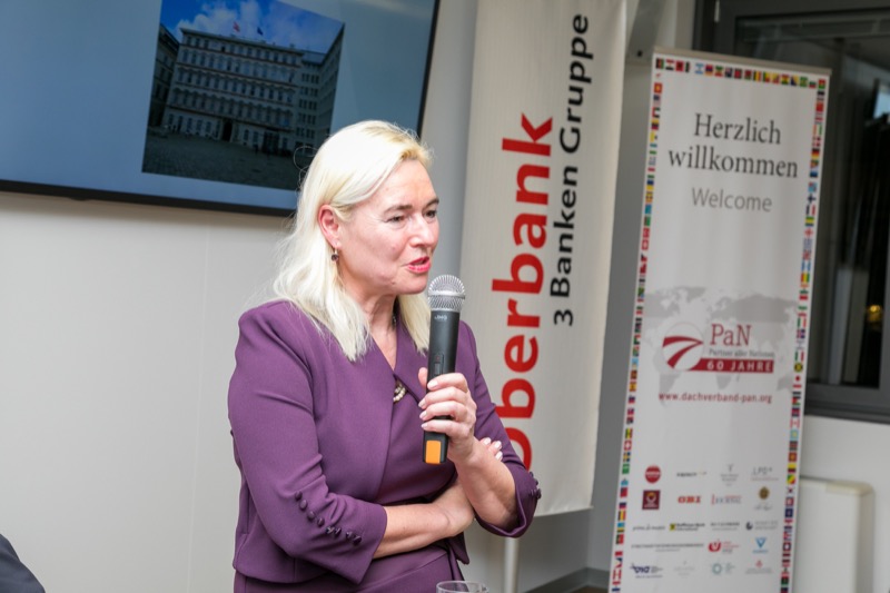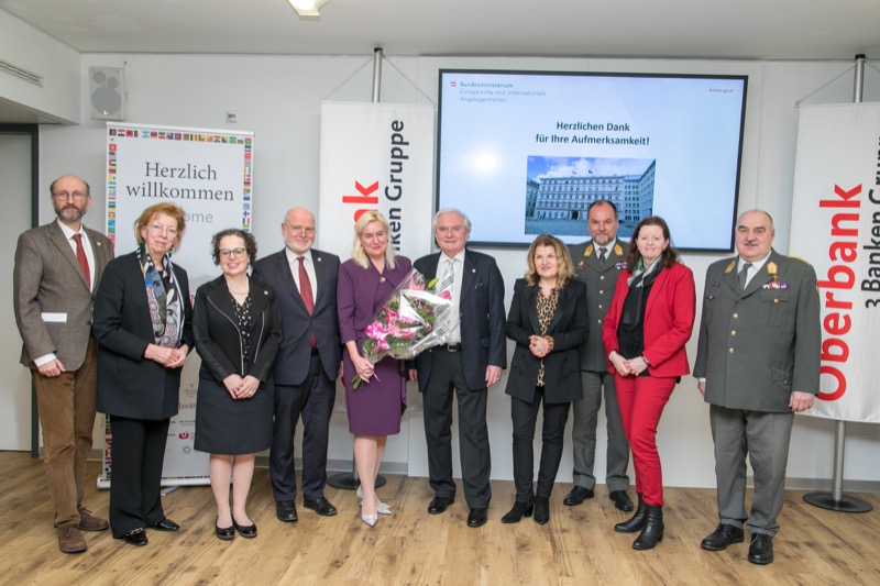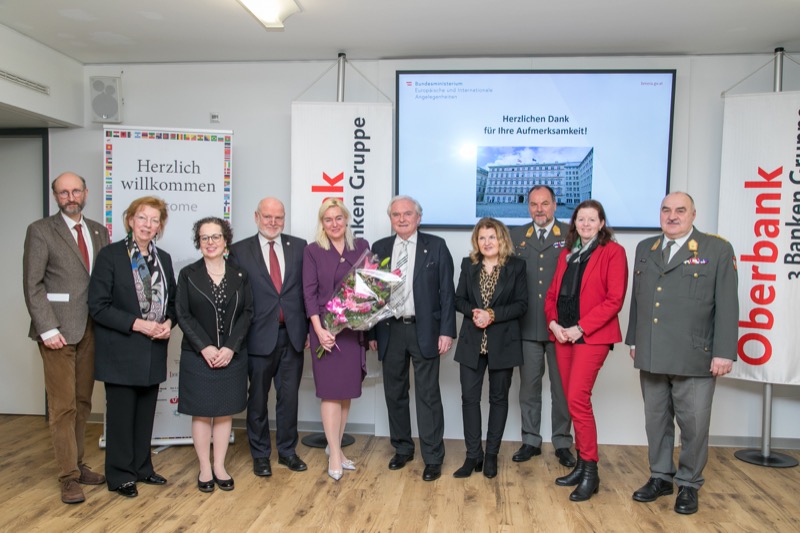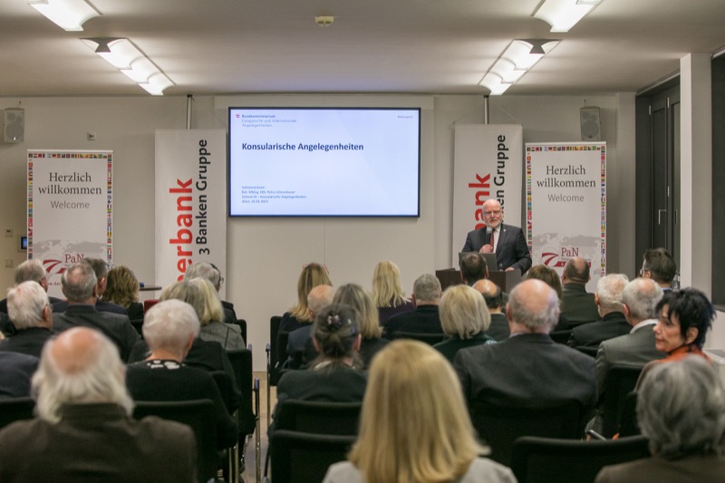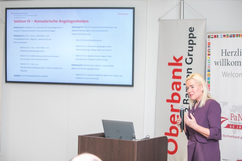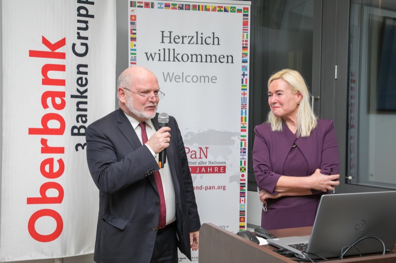Der Dachverband aller österreichisch-ausländischen Gesellschaften – PaN lud zu einem Vortrag von Botschafterin DDr. Petra Schneebauer über das »Krisenmanagement von Corona bis Krieg« in die Oberbank Wien. Botschafterin DDr. Schneebauer, Vorstandsmitglied des Dachverbands-PaN, leitet die Konsularische Sektion des Bundesministeriums für europäische und internationale Angelegenheiten in bewegten Zeiten. Sie berichtete über die Herausforderungen, die aus dem umfangreichen Aufgabengebiet resultieren. PaN-Präsident Univ.-Prof. Dr. Hermann Mückler moderierte die interessierten Publikumsfragen. Der Direktor der Oberbank Wien, Andreas Klingan, MBA, bat zum Ausklang zu einem Buffet.
