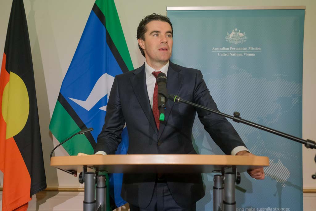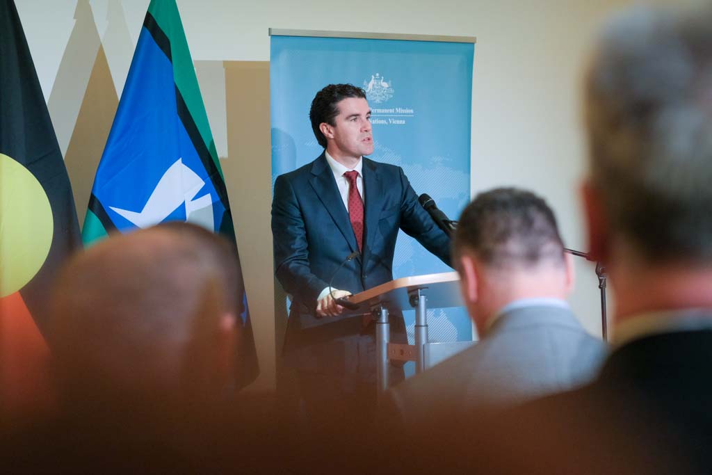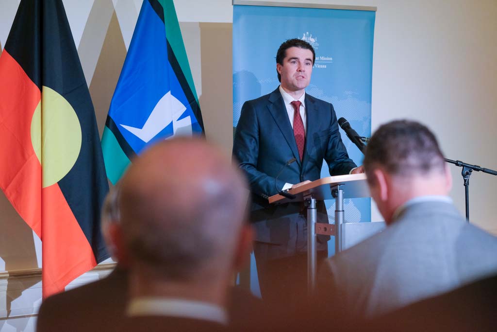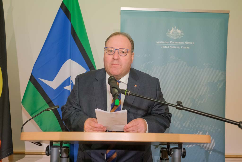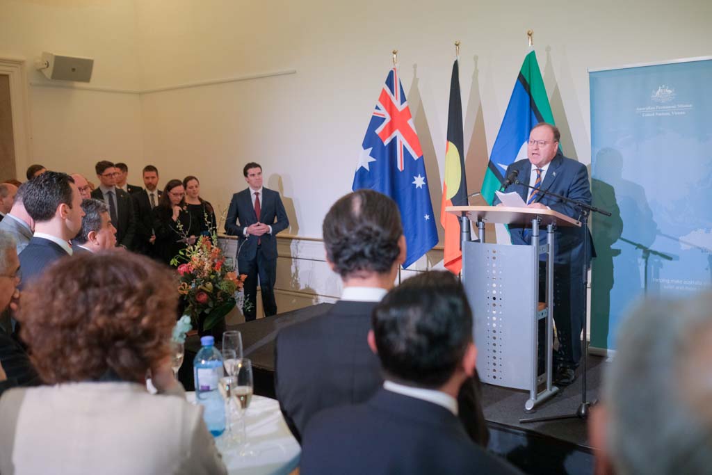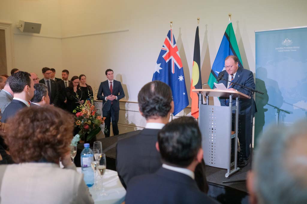 S.E. Richard Sadleir, Botschafter und ständiger Vertreter Australiens bei den Vereinten Nationen, lud anlässlich des Nationalfeiertages zu einem Empfang in das Palais Pálffy.