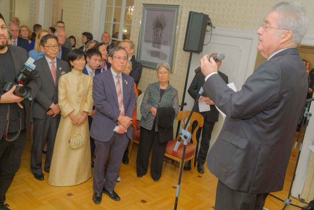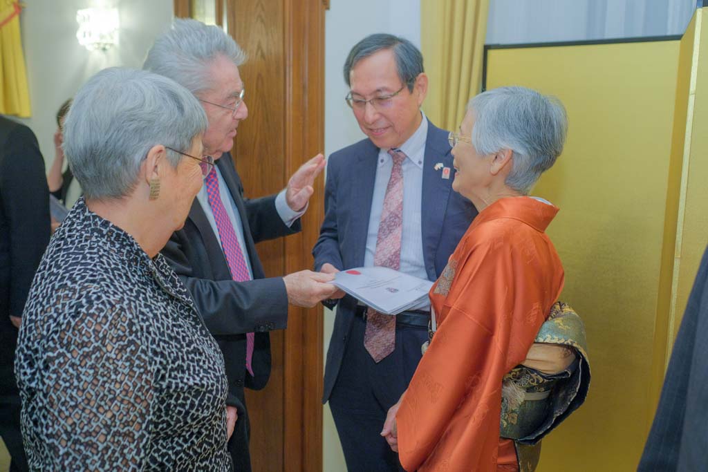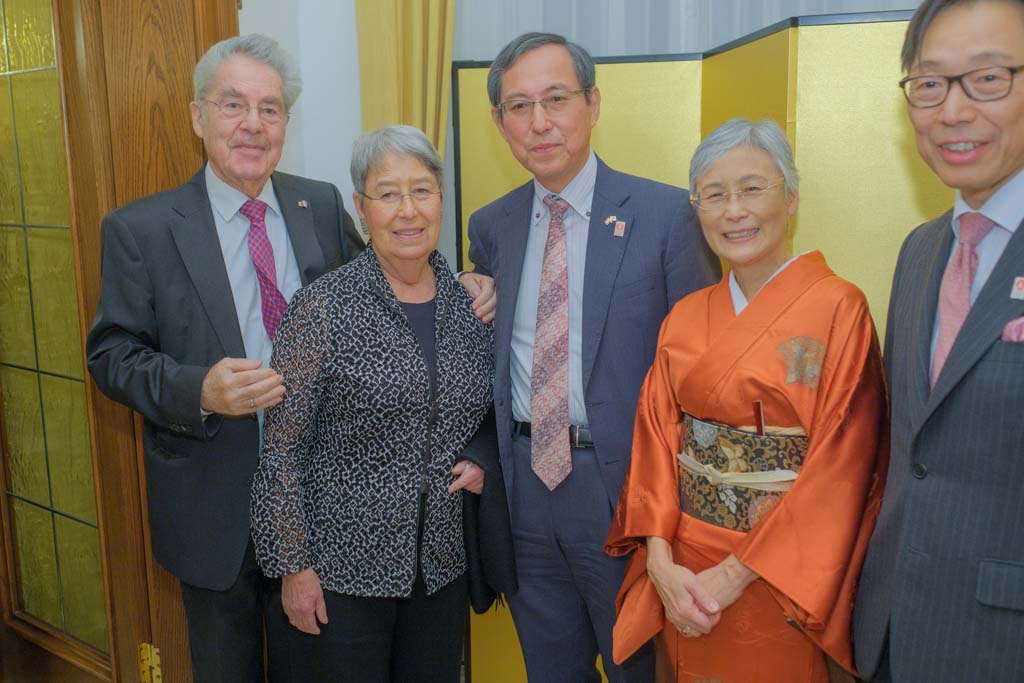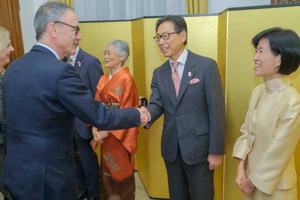 Anlässlich des Geburtstages Seiner Majestät des Kaisers Naruhito, luden der Botschafter von Japan in Österreich, S.E. Ryuta Mizuuchi, und Frau Dr. Akemi Mizuuchi sowie der Ständige Vertreter Japans bei den Internationalen Organisationen, S.E. Takeshi Hikihara, und Gattin Hammi Hikihara zu einem Empfang in die Residenz des Botschafters.