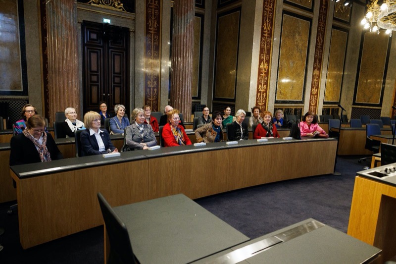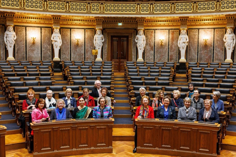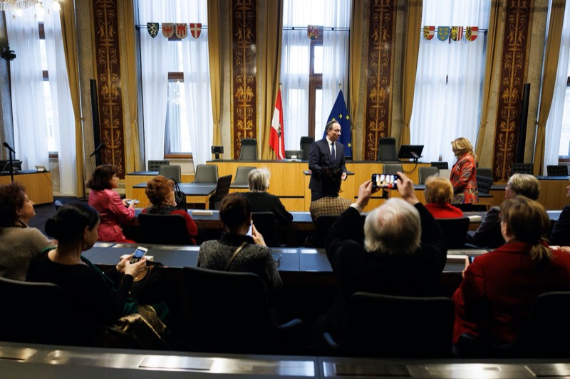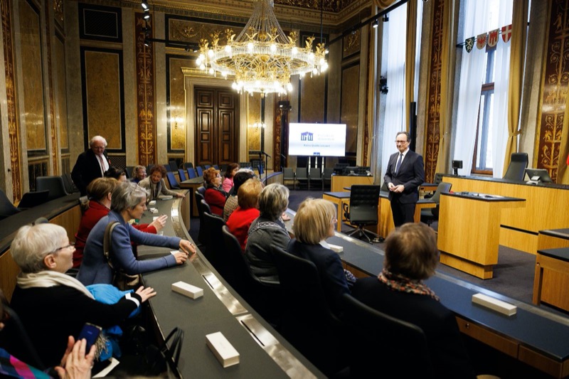 Der Dachverband aller österreichisch-ausländischen Gesellschaften – PaN lud am 8. März 2023 anlässlich des Weltfrauentags zu einer exklusiven Führung durch Dr. Alice Alsch-Harant, Vizedirektorin des Bundesrats und Vorstandsmitglied des Dachverbands-PaN, ins wiedereröffnete Parlament als Herz der Demokratie. Im Sitzungssaal des Bundesrates begrüßte dessen Präsident Günter Kovacs die auf zwanzig Personen limitierte Gruppe aus Repräsentantinnen der bilateralen Freundschaftsgesellschaften. Das Gespräch mit Bundesratspräsident Kovacs wurde bei einem Empfang im Café-Restaurant Kelsen fortgesetzt.