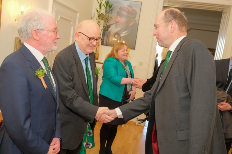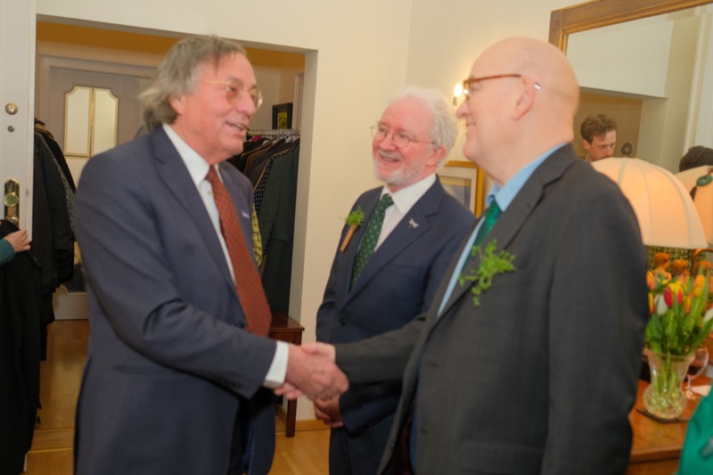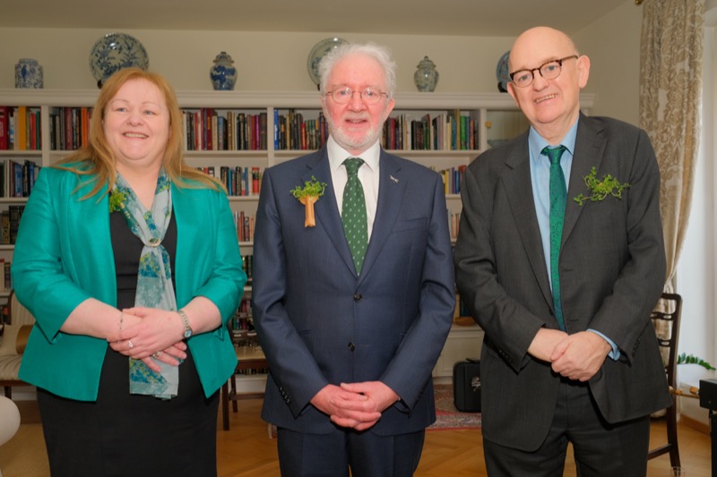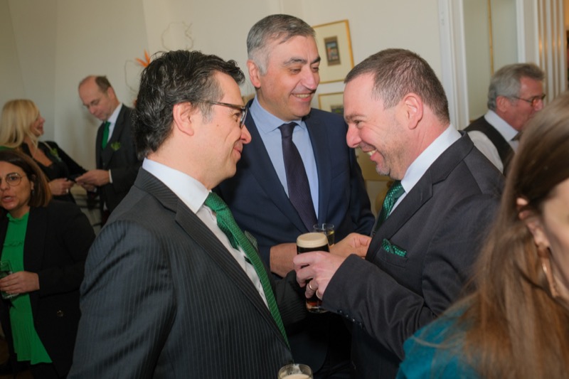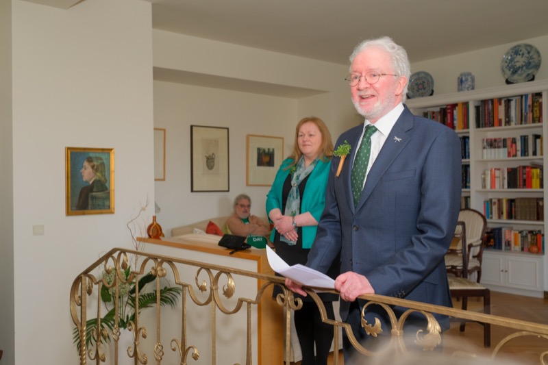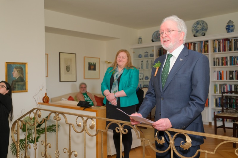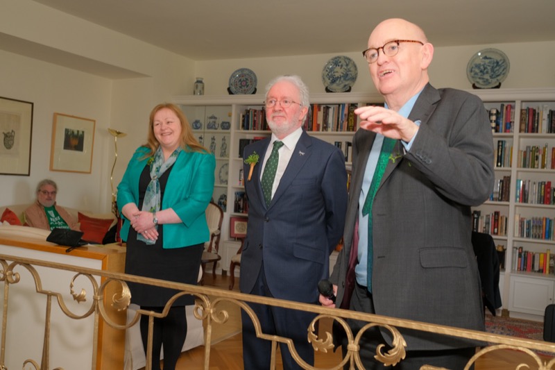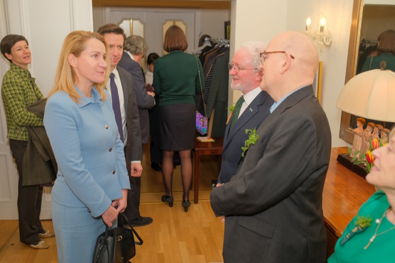 Anlässlich des St. Patrick's day luden der Botschafter der Republik Irland und ständige Vertreter bei den internationalen Organisationen in Wien, S.E. Eoin O'Leary, und Frau Anne Delaney sowie I.E. Anne-Marie Callan, Botschafterin der Republik Irland bei der OSZE, zu einem Empfang in die Residenz. Anwesend war auch Malcolm Noonan, Minister für Kulturerbe und Wahlreform.