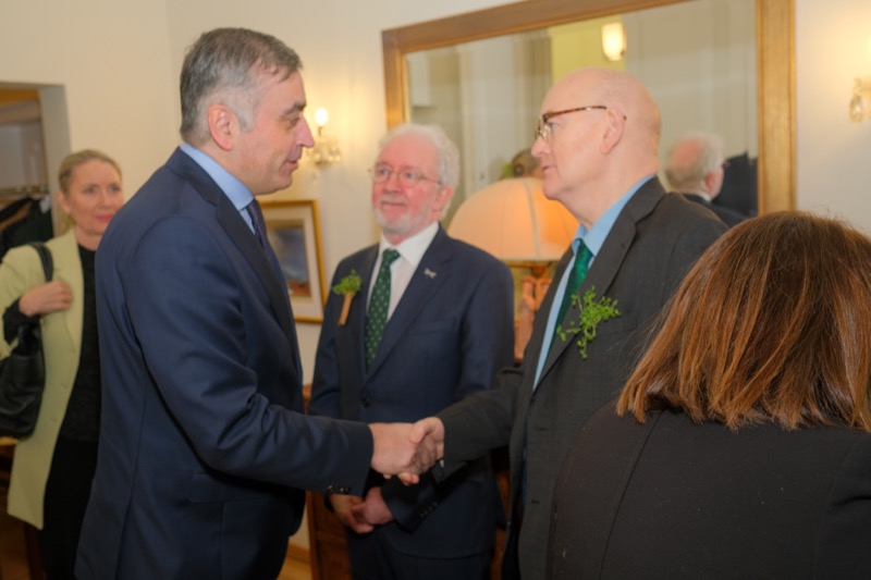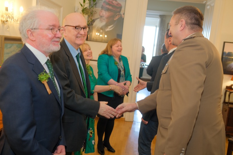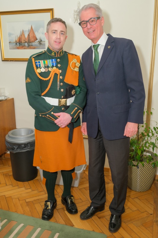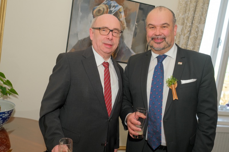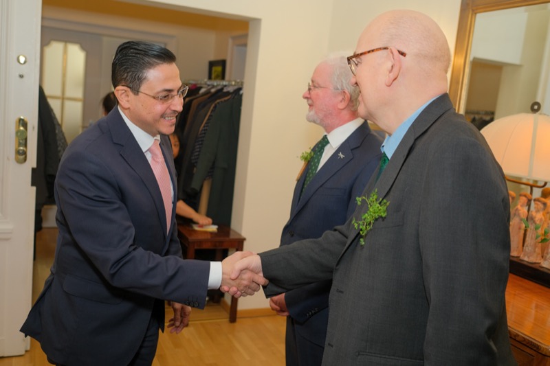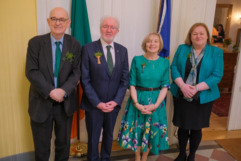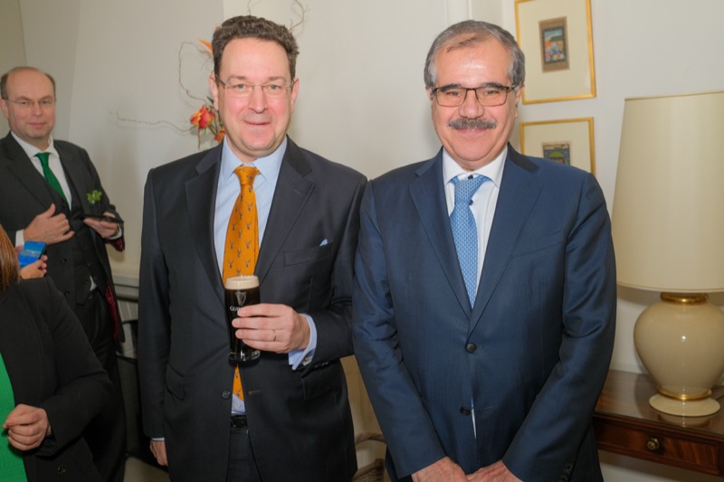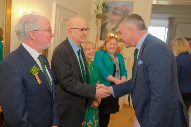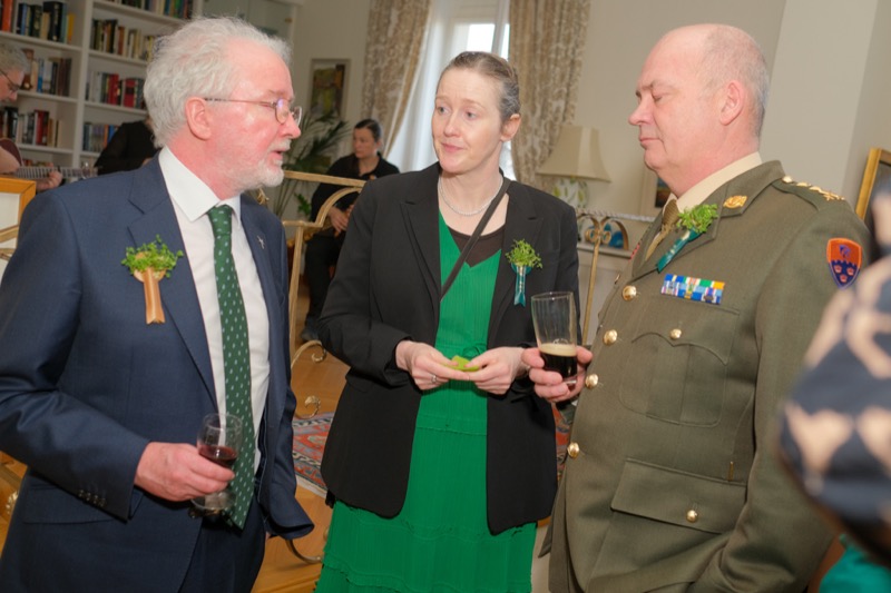 Anlässlich des St. Patrick's day luden der Botschafter der Republik Irland und ständige Vertreter bei den internationalen Organisationen in Wien, S.E. Eoin O'Leary, und Frau Anne Delaney sowie I.E. Anne-Marie Callan, Botschafterin der Republik Irland bei der OSZE, zu einem Empfang in die Residenz. Anwesend war auch Malcolm Noonan, Minister für Kulturerbe und Wahlreform.