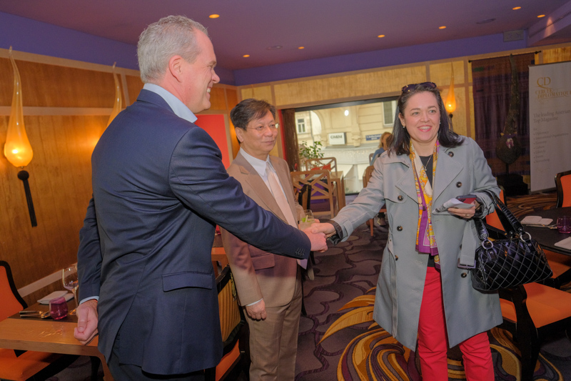 Die Herausgeber von Cercle Diplomatique, Andrea Fürnweger und Alexander Bursky, luden die in Österreich neu akkreditierten Botschafter zum traditionellen "Ambassadors' Welcome Lunch" in das Restaurant Patara-Fine Thai Cuisine am Petersplatz. Das Kennenlernen in ungezwungener Atmosphäre sowie vorzügliche thailändische Küche in einem der besten Thai-Restaurants der Stadt standen im Mittelpunkt dieses Essens.