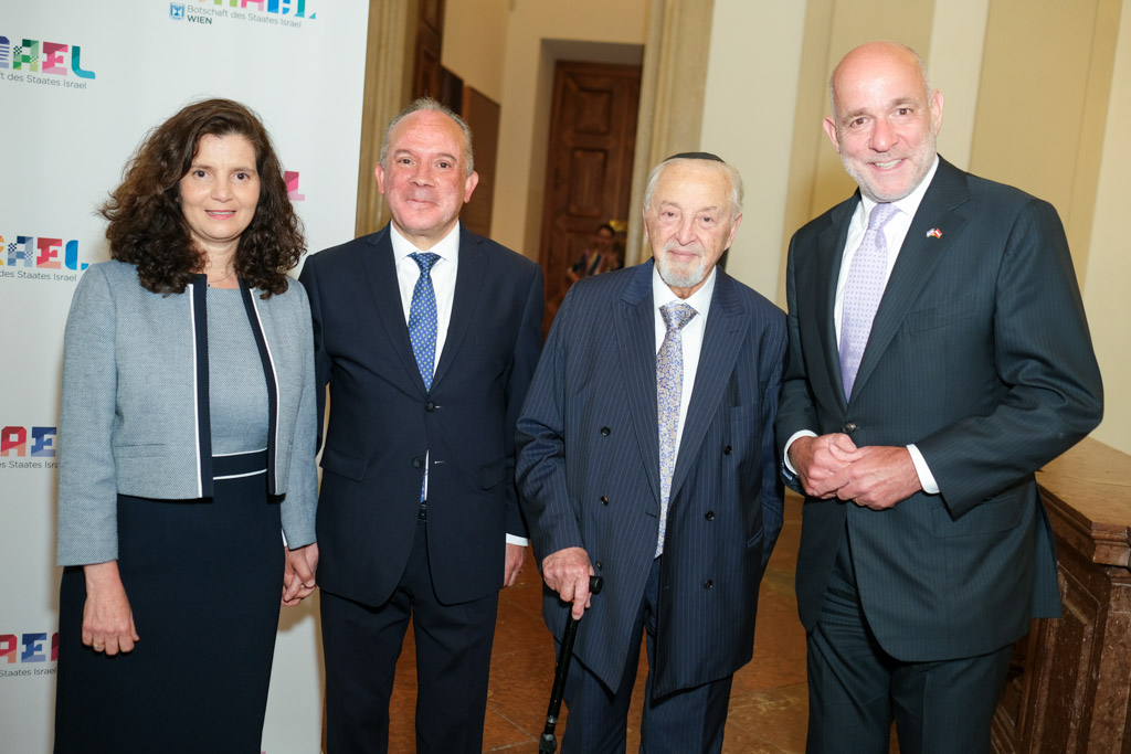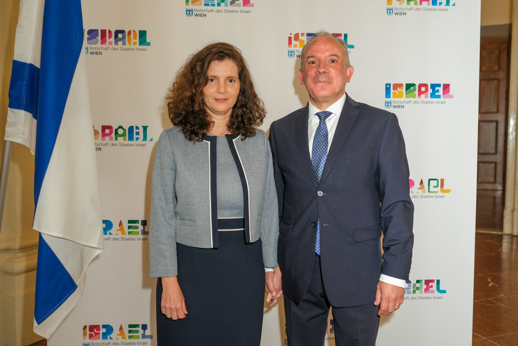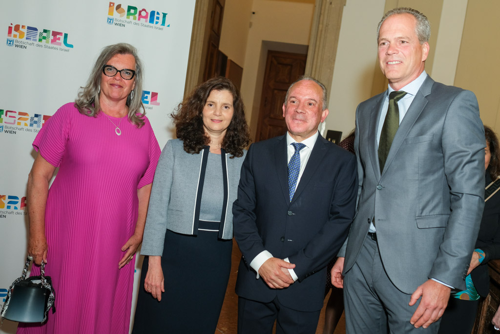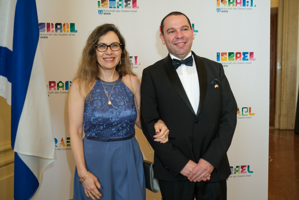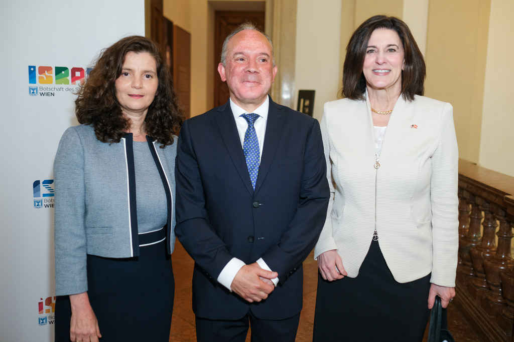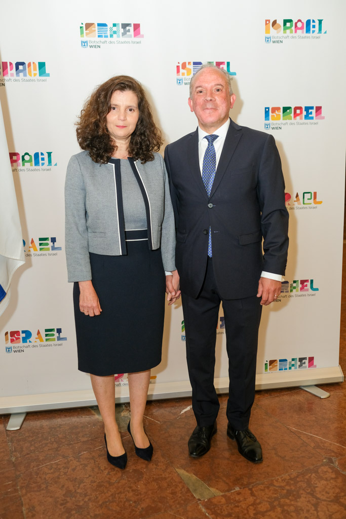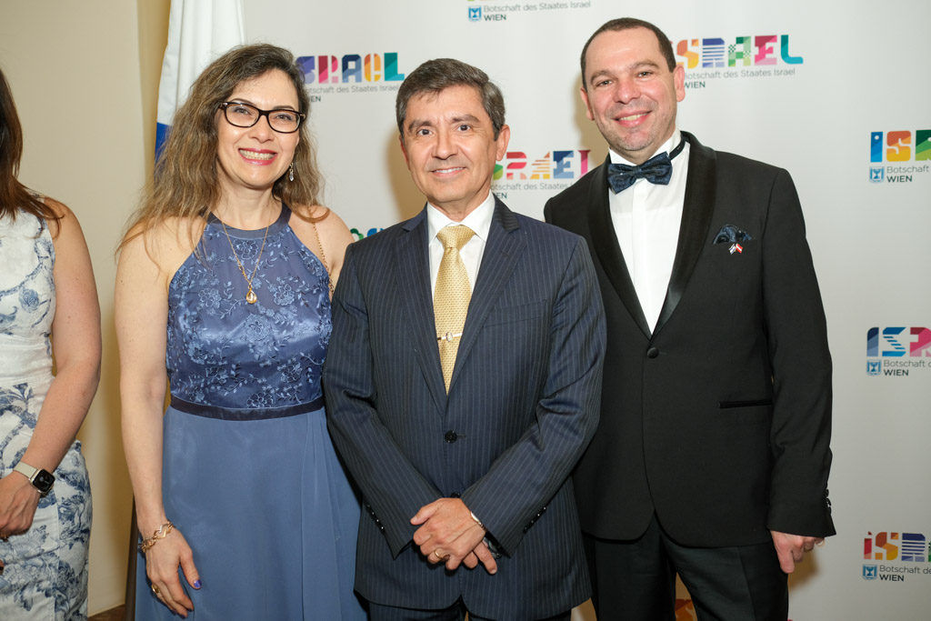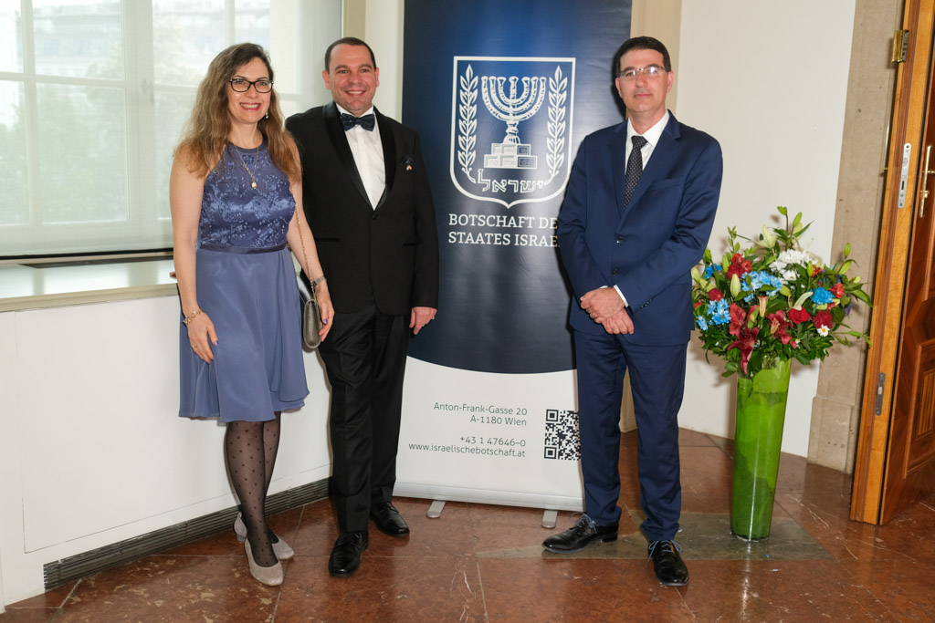 Der Botschafter des Staates Israel und Ständige Vertreter bei den Vereinten Nationen, der OSZE und internationalen Organisationen, S.E. Mordechai Denis Rodgold und Frau Céline Rodgold sowie der Botschafter und Ständige Vertreter des Staates Israel bei der IAEO und CTBTO PrepCom, S.E. David Nusbaum und