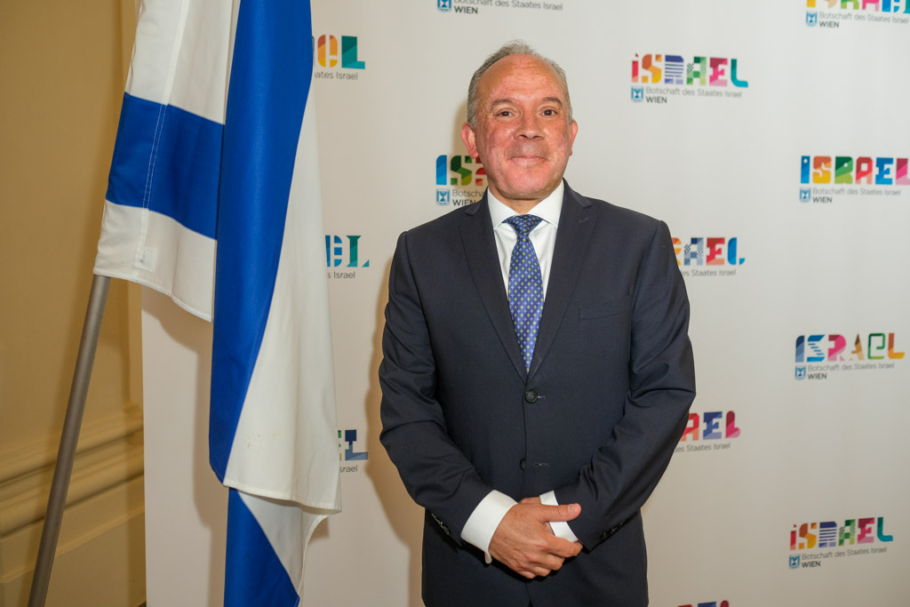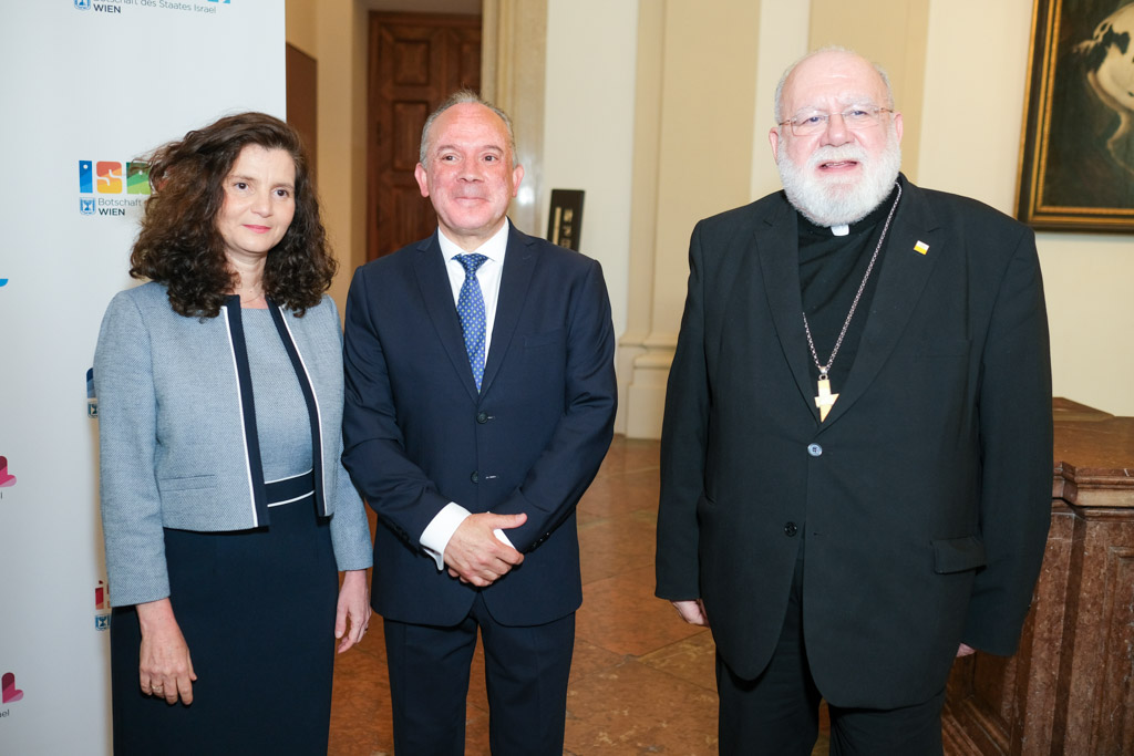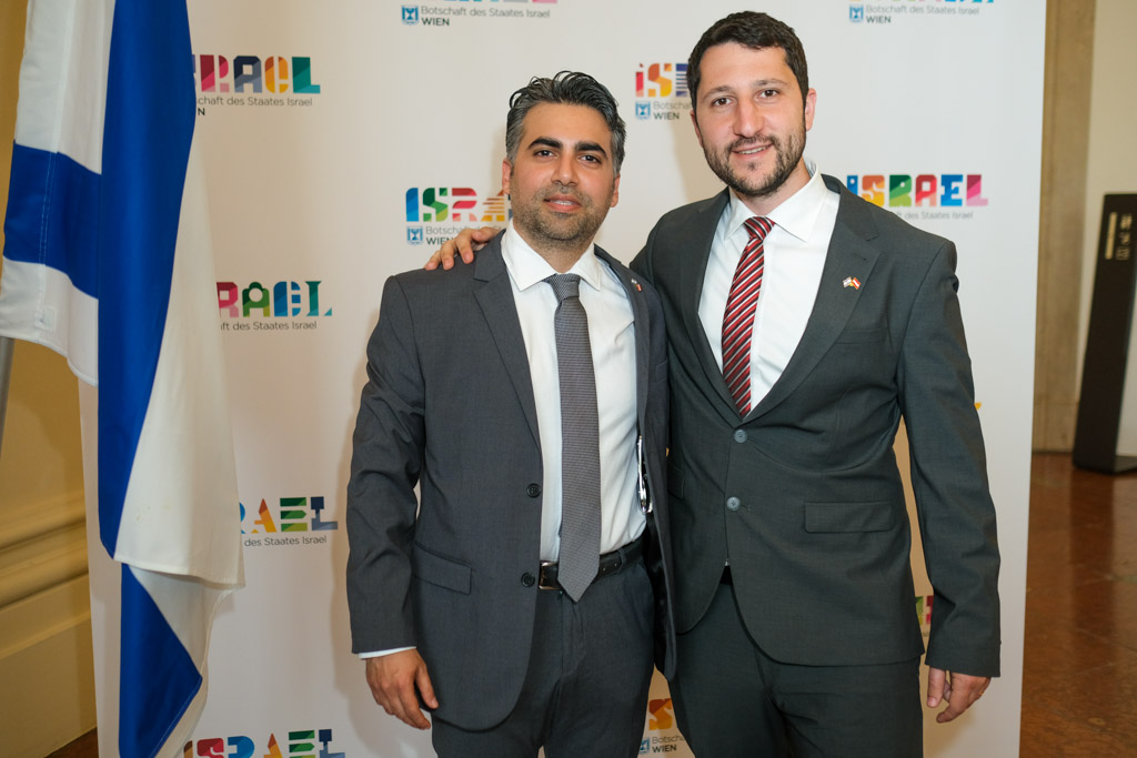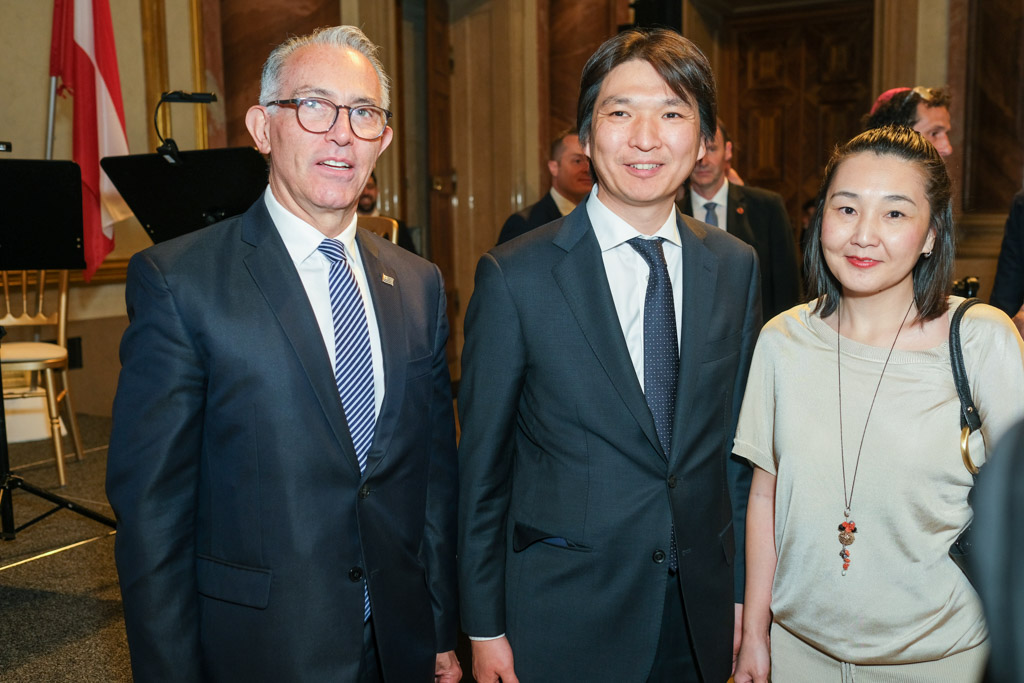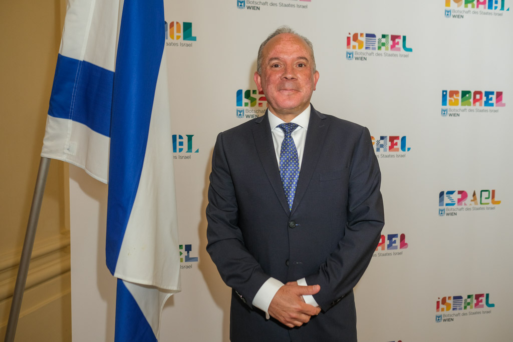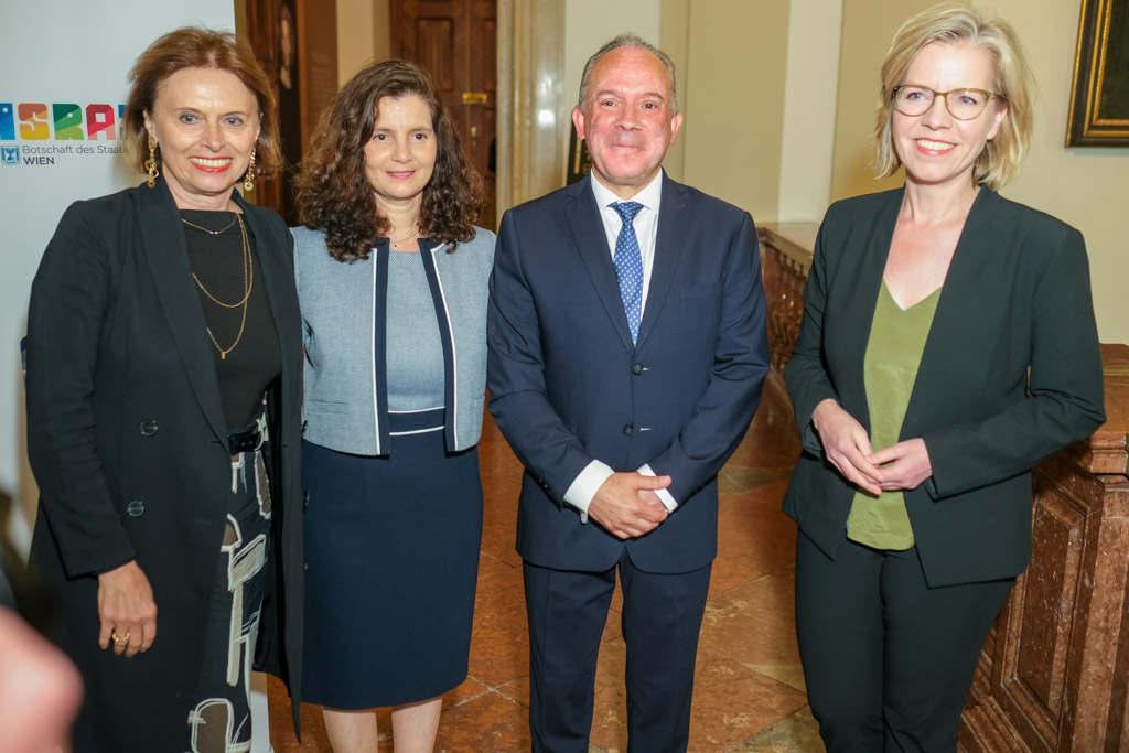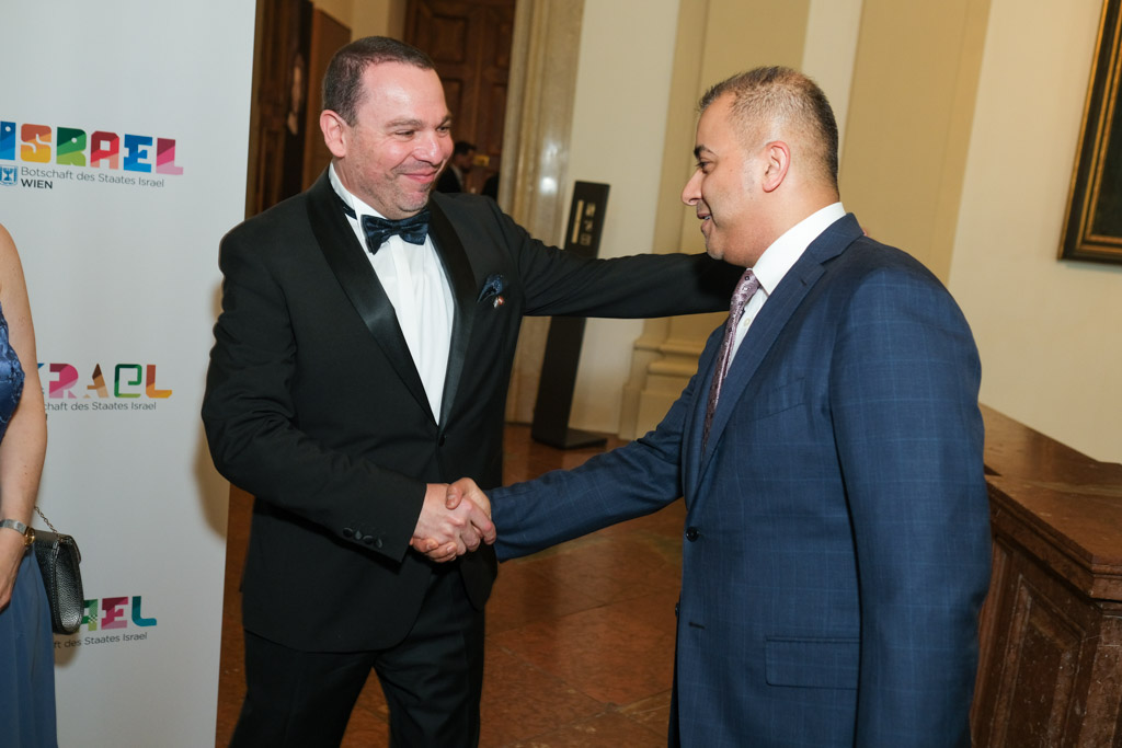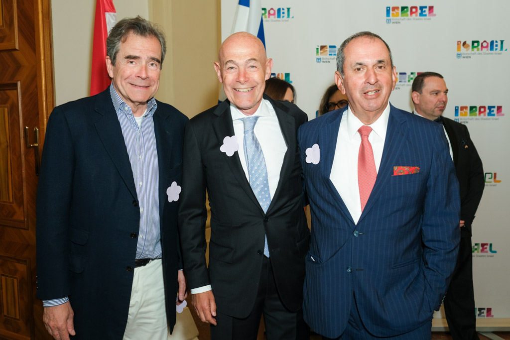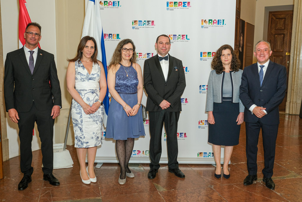 Der Botschafter des Staates Israel und Ständige Vertreter bei den Vereinten Nationen, der OSZE und internationalen Organisationen, S.E. Mordechai Denis Rodgold und Frau Céline Rodgold sowie der Botschafter und Ständige Vertreter des Staates Israel bei der IAEO und CTBTO PrepCom, S.E. David Nusbaum und