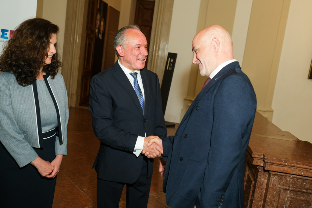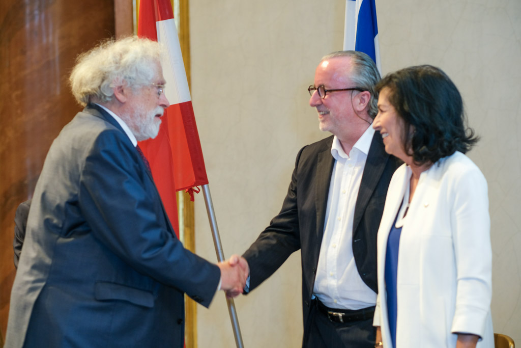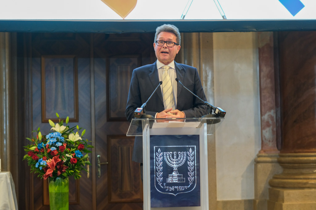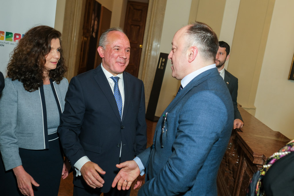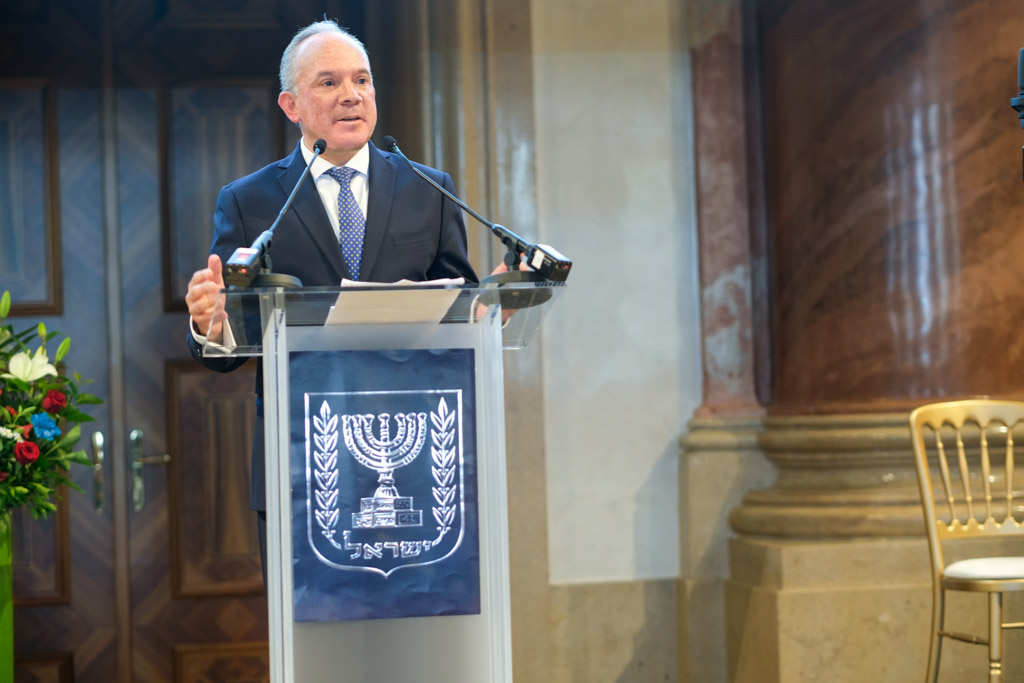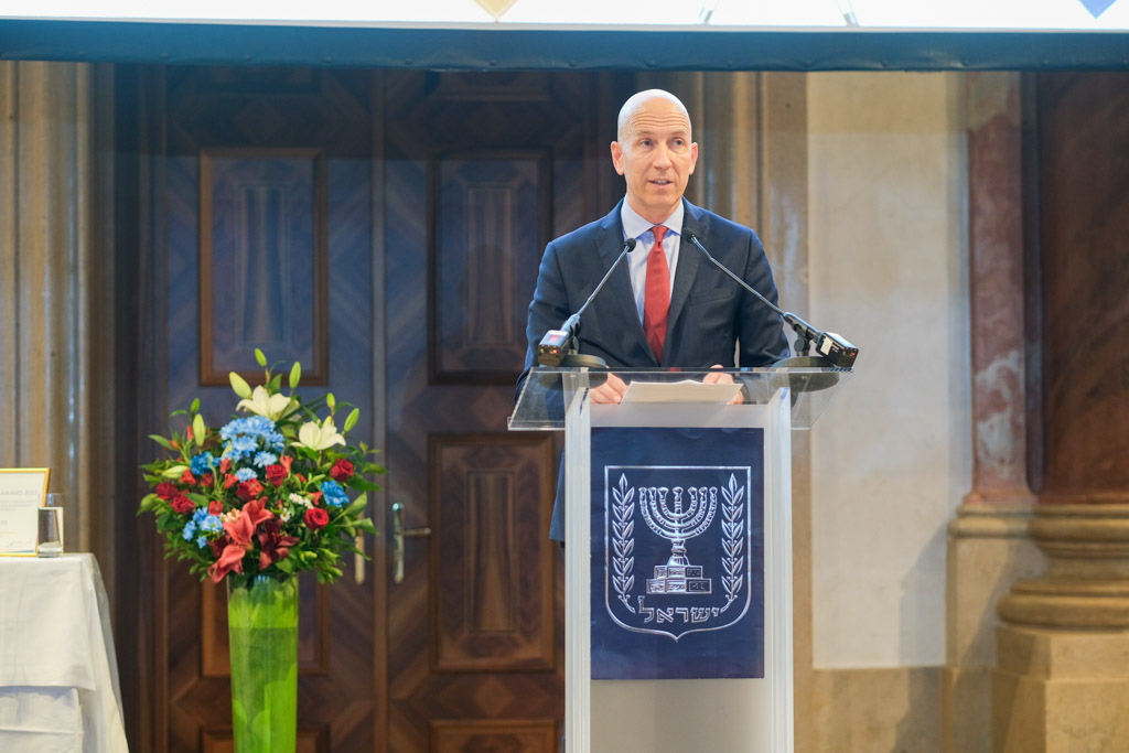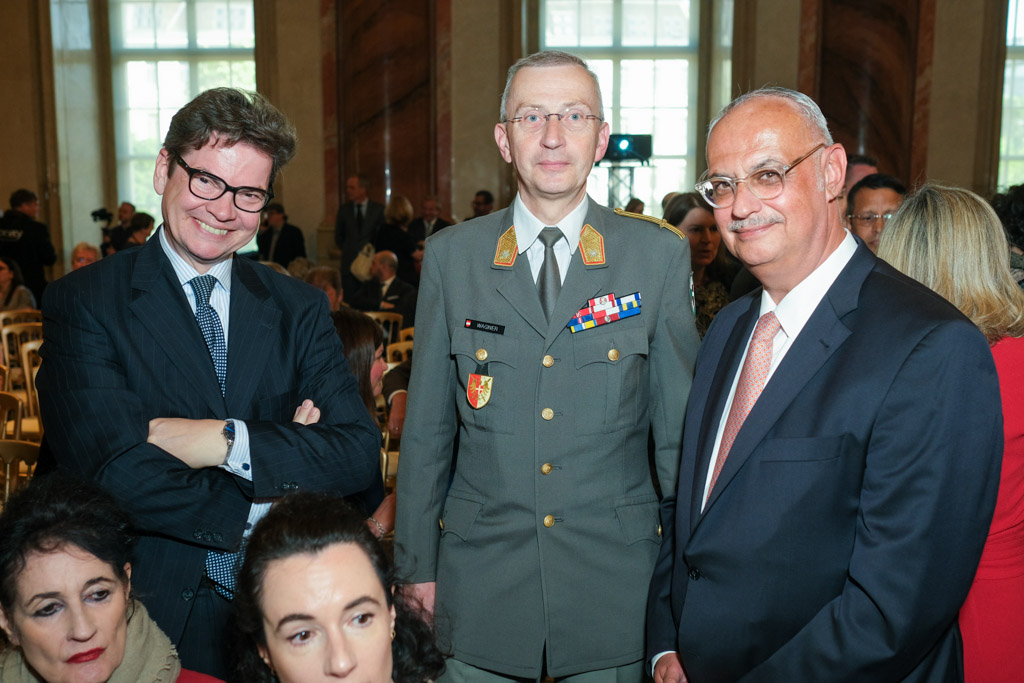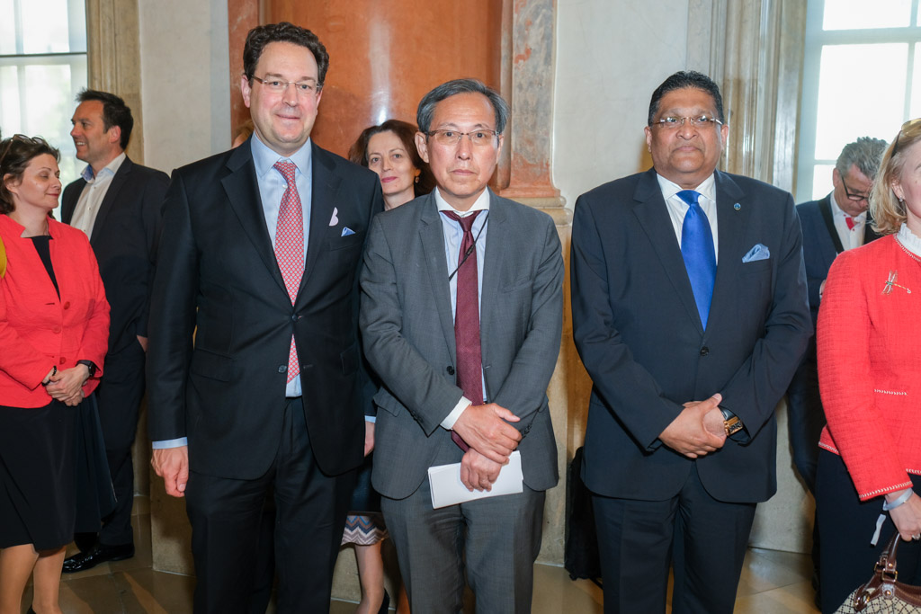 Der Botschafter des Staates Israel und Ständige Vertreter bei den Vereinten Nationen, der OSZE und internationalen Organisationen, S.E. Mordechai Denis Rodgold und Frau Céline Rodgold sowie der Botschafter und Ständige Vertreter des Staates Israel bei der IAEO und CTBTO PrepCom, S.E. David Nusbaum und