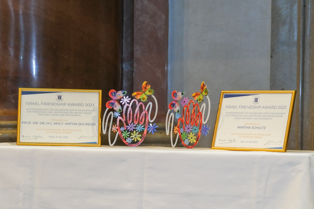 Frau Dr. Lidia Lika Nusbaum luden anlässlich des 75. Unabhängigkeitstages des Staates Israel zu einem grossen Empfang in das Palais Liechtenstein. Auch wurde in diesem Rahmen zum zweiten Mal der 'Israel Friendship Award' vergeben. Die Jury hat sich einstimmig für Nobelpreisträger Prof. Anton Zeilinger und WKÖ-Vizepräsidentin Martha Schultz entschieden, die sich besonders um die Förderung der Beziehungen zwischen Österreich und Israel verdient gemacht haben.
