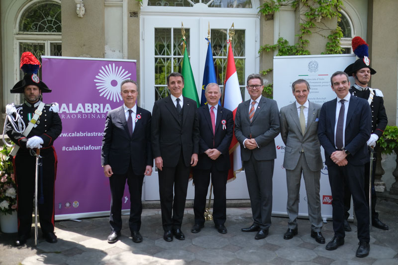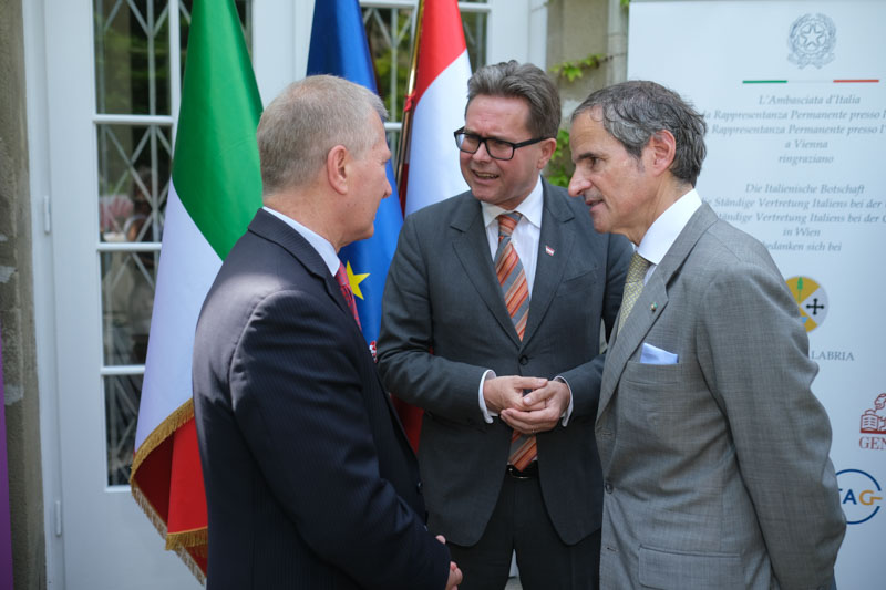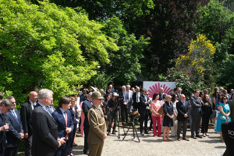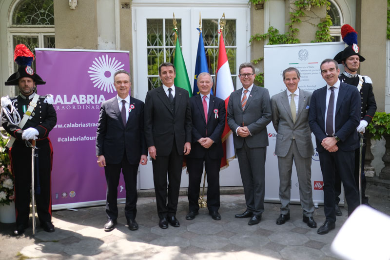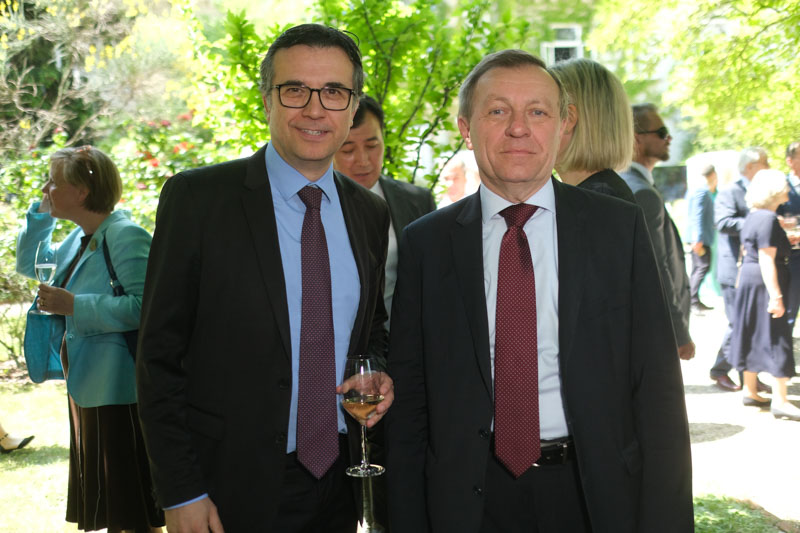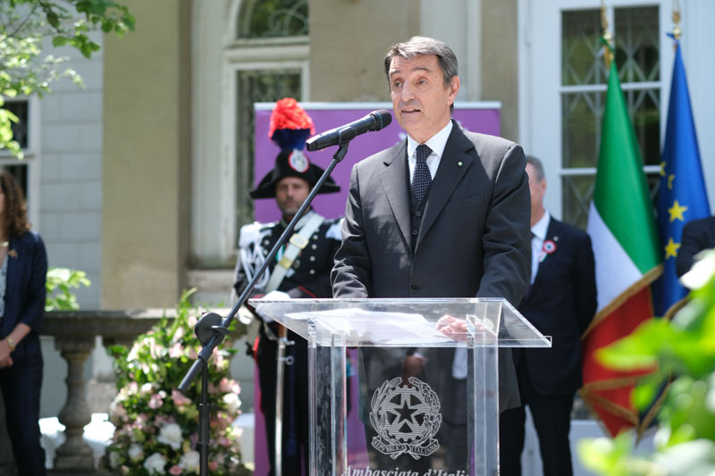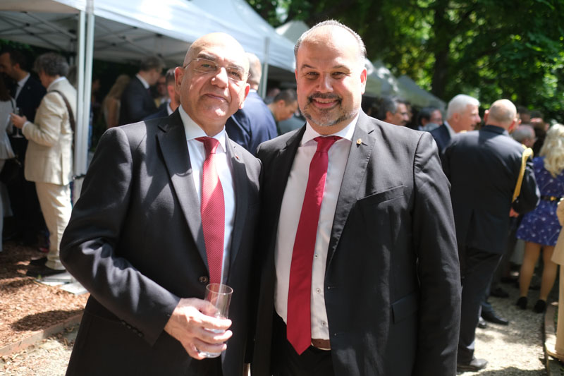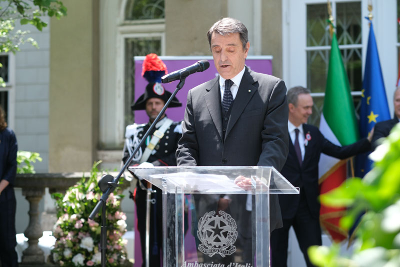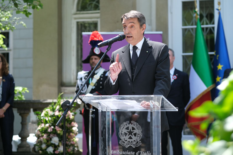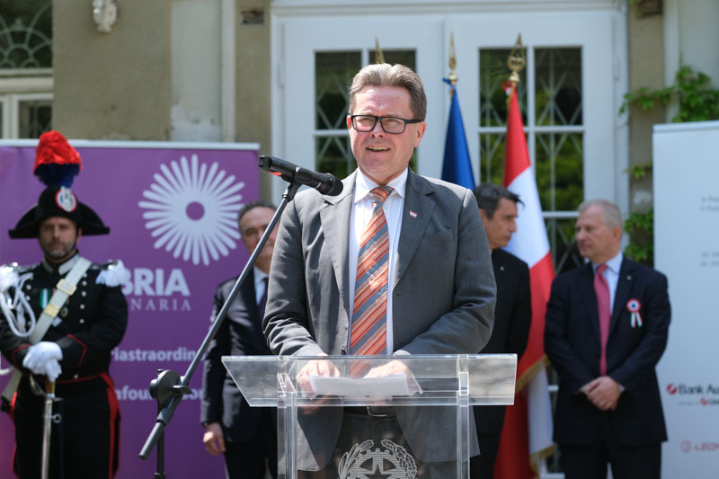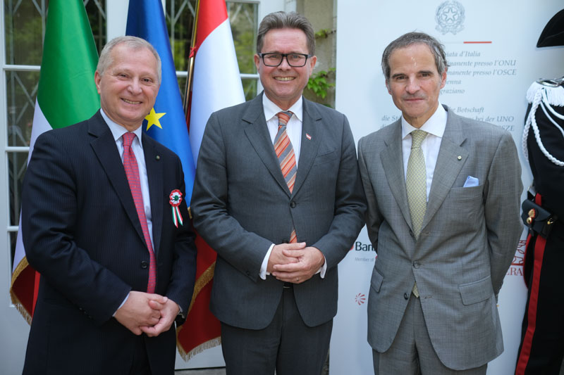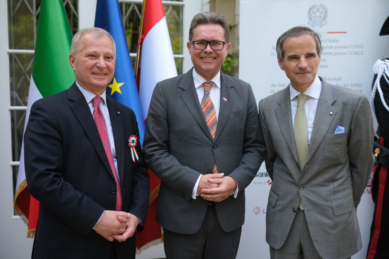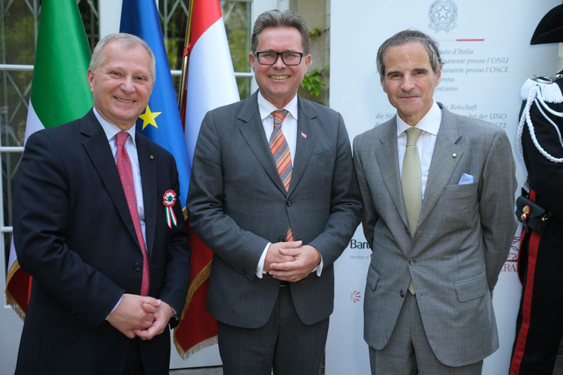 Anlässlich des Nationalfeiertages luden S.E. Stefano Beltrame, Botschafter der Republik Italien, S.E. Alessandro Cortese, ständiger Vertreter bei den Internationalen Organisationen und S.E. Stefano Baldi, ständiger Vertreter bei der OSZE, zu einem Empfang in den Garten des italienischen Kulturinstitutes.