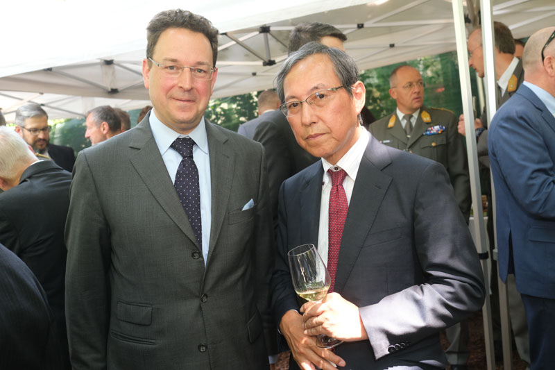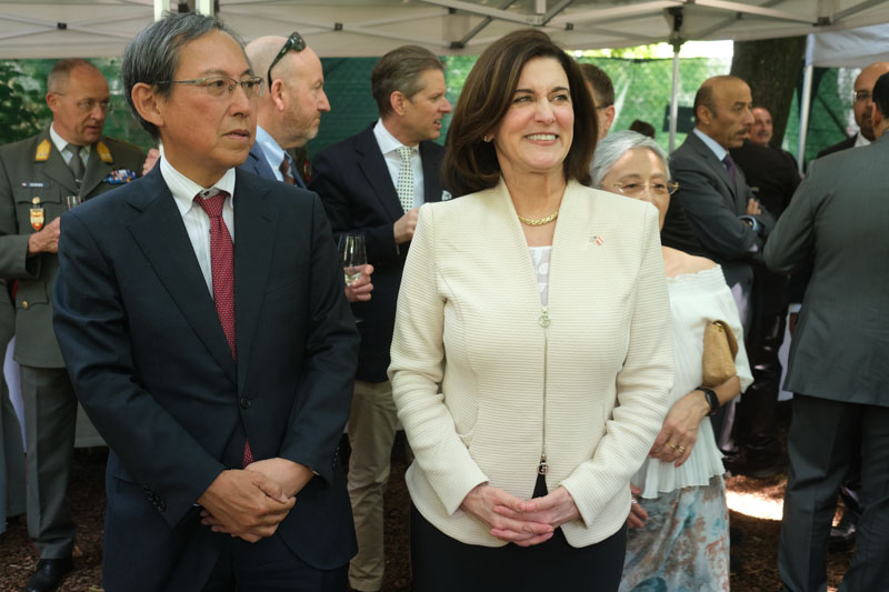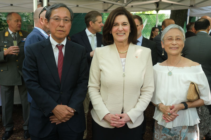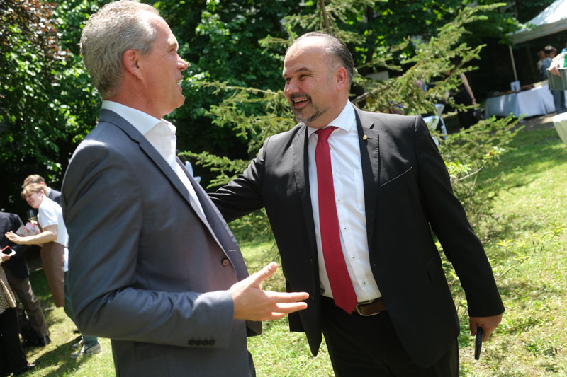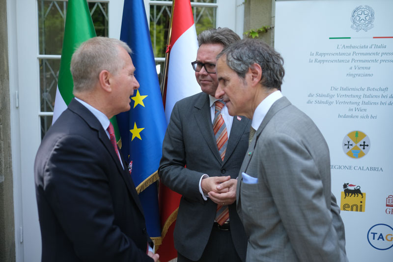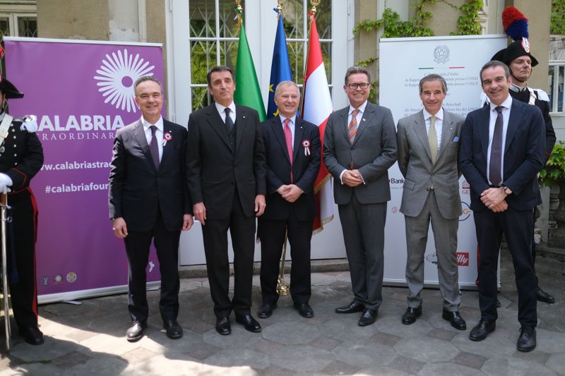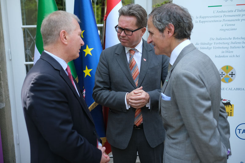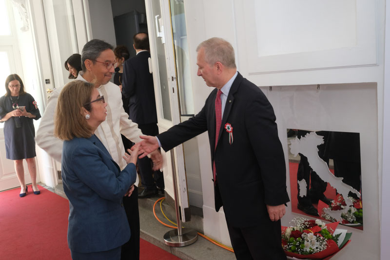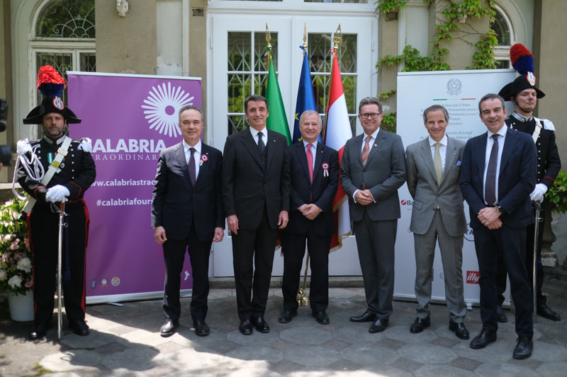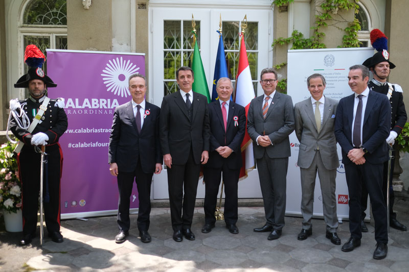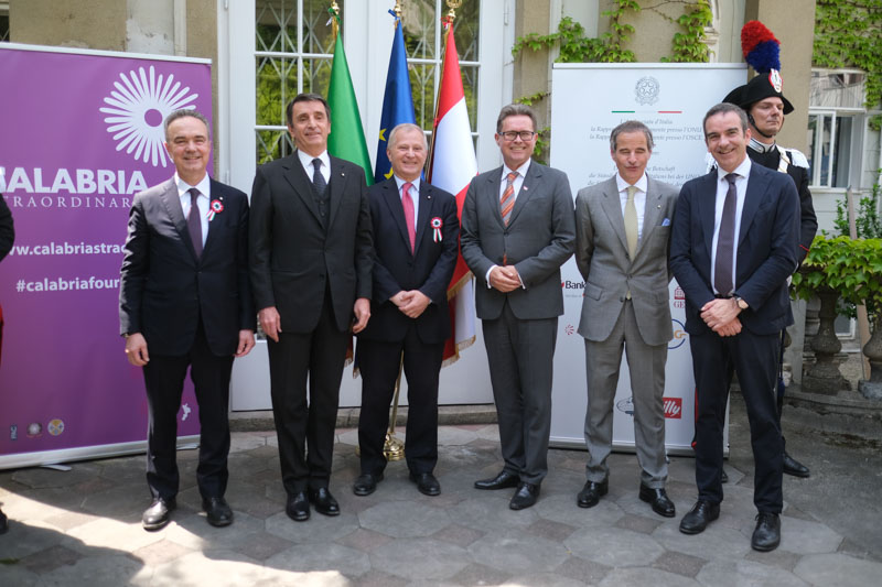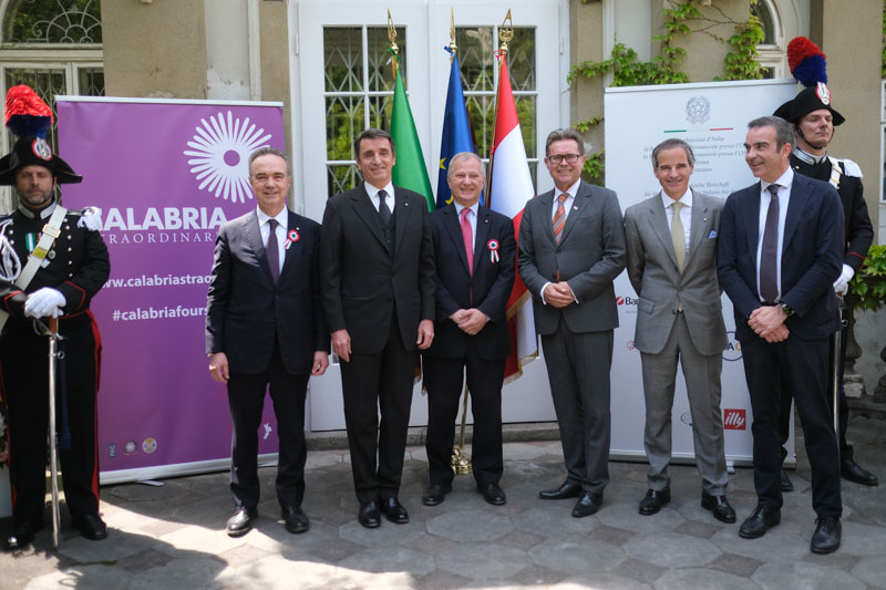 Anlässlich des Nationalfeiertages luden S.E. Stefano Beltrame, Botschafter der Republik Italien, S.E. Alessandro Cortese, ständiger Vertreter bei den Internationalen Organisationen und S.E. Stefano Baldi, ständiger Vertreter bei der OSZE, zu einem Empfang in den Garten des italienischen Kulturinstitutes.