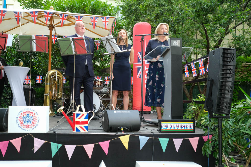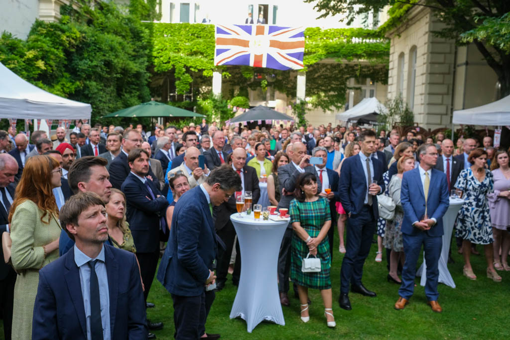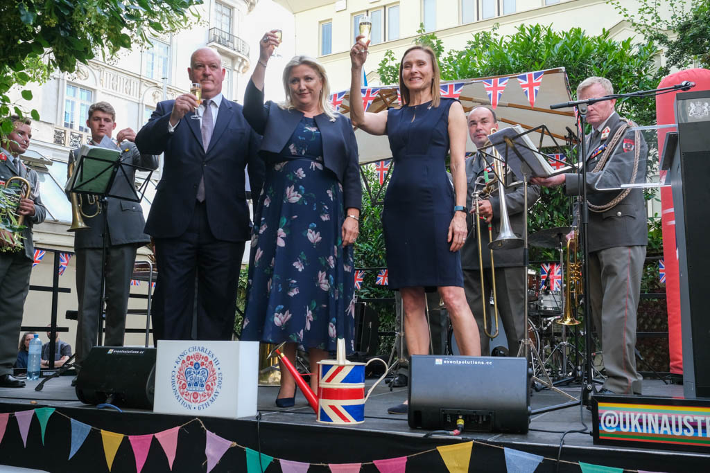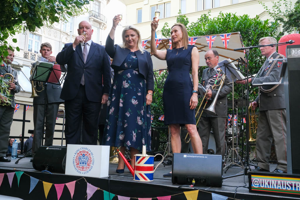 Anlässlich der Krönung sowie des 75. Geburtstages seiner Majestät König Charles III, luden die Botschafterin und ständige Vertreterin des Vereinigten Königreiches bei den Vereinten Nationen, I.E. Lindsay Skoll, der Leiter der britischen Delegation bei der OSZE, S.E. Neil Holland, sowie die Ständige Vertreterin bei der IAEA und CTBTO, I.E. Corinne Kitsell, zu einem Empfang in die Residenz der Botschafterin.
