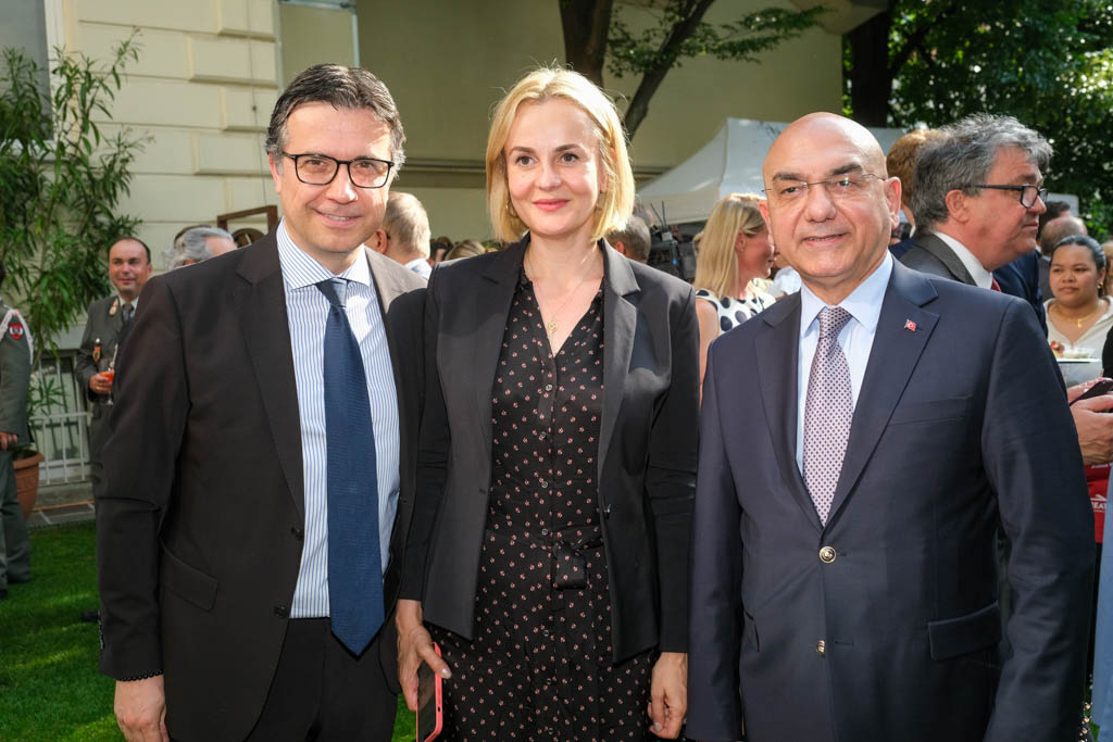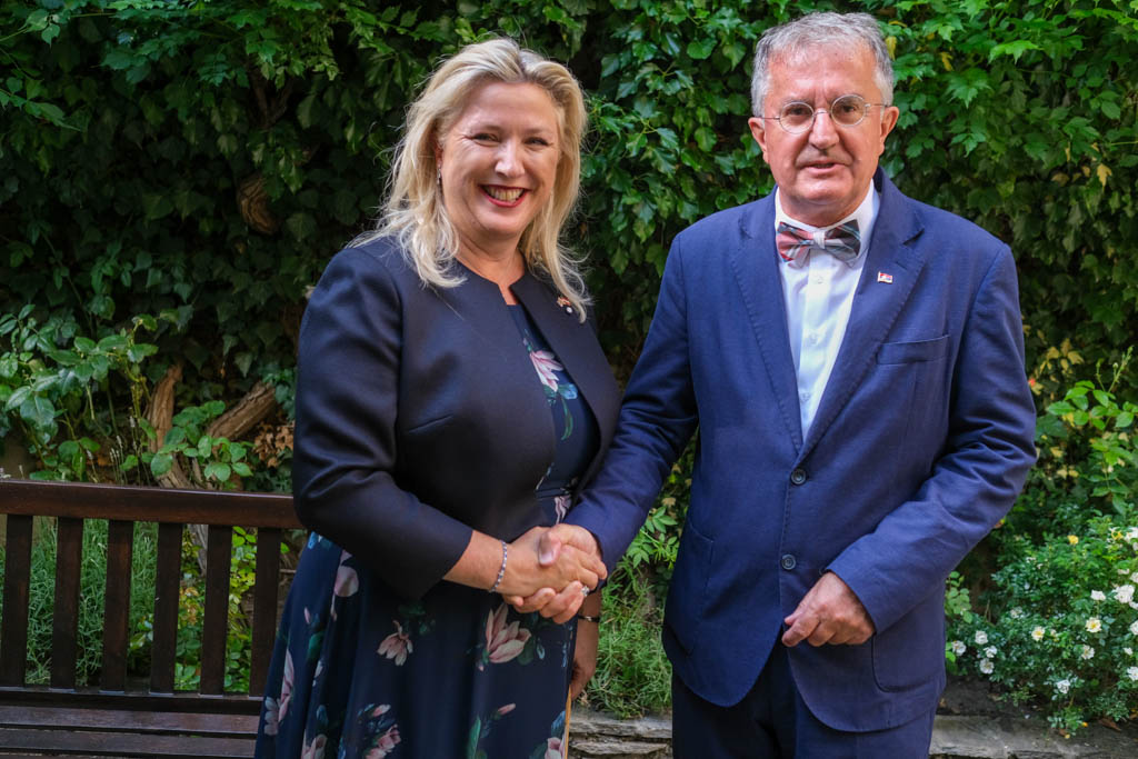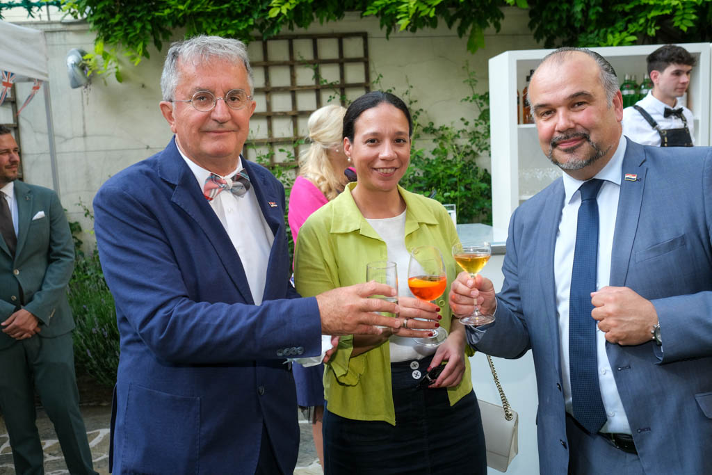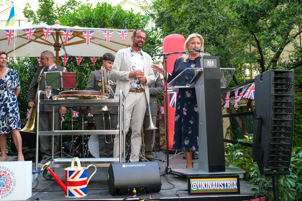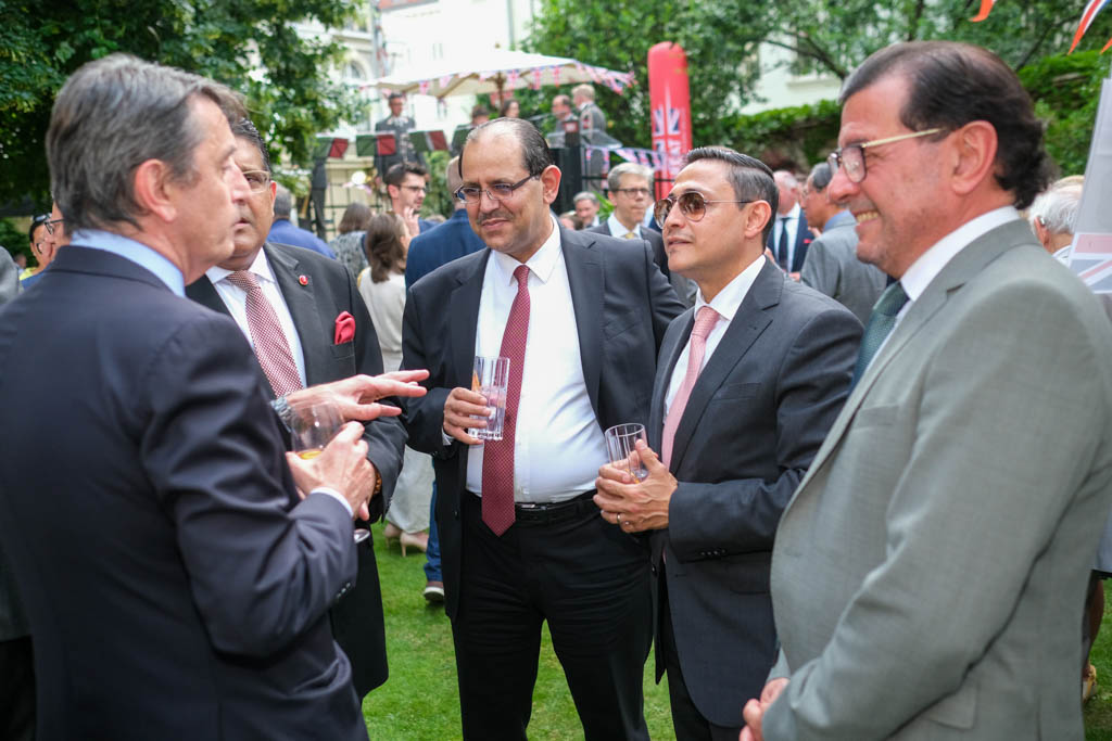 Anlässlich der Krönung sowie des 75. Geburtstages seiner Majestät König Charles III, luden die Botschafterin und ständige Vertreterin des Vereinigten Königreiches bei den Vereinten Nationen, I.E. Lindsay Skoll, der Leiter der britischen Delegation bei der OSZE, S.E. Neil Holland, sowie die Ständige Vertreterin bei der IAEA und CTBTO, I.E. Corinne Kitsell, zu einem Empfang in die Residenz der Botschafterin.