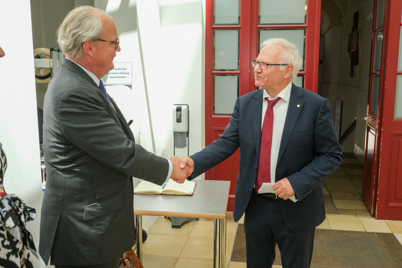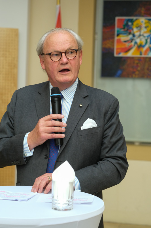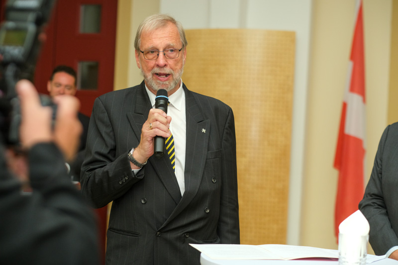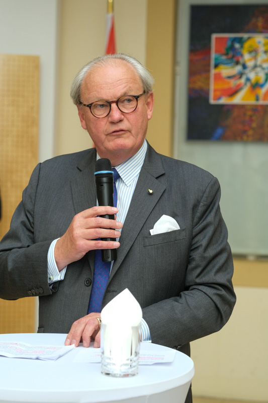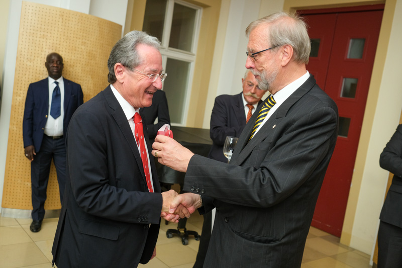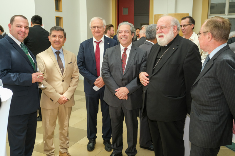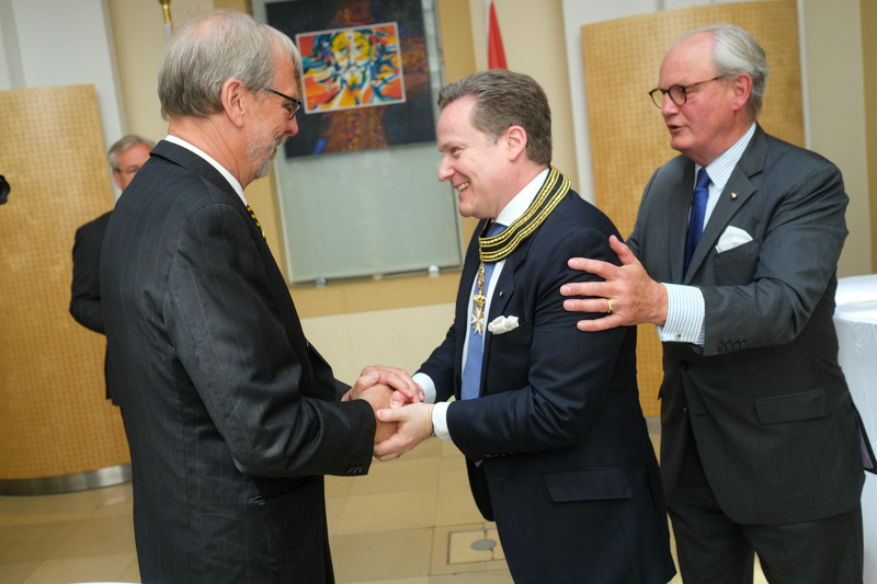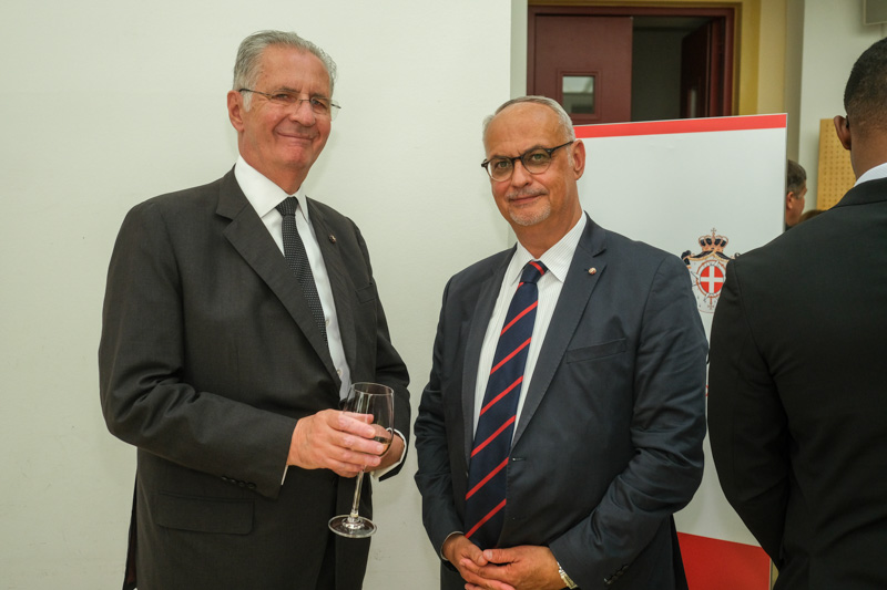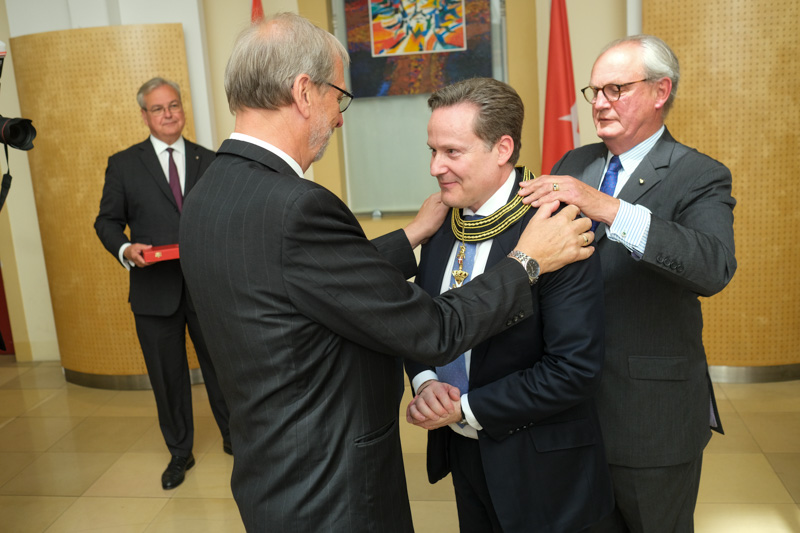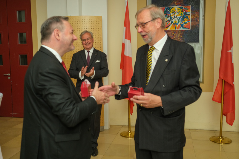 Der Botschafter des Souveränen Malteser-Ritterordens bei der Republik Österreich, S.E. Sebastian Prinz von Schoenaich-Carolath, und der Großprior des Großpriorats von Österreich, Fra‘ Gottfried Kühnelt-Leddihn, luden anlässlich des Patroziniums des Hl. Johannes des Täufers, des Schutzpatrons des Ordens, zum gemeinsamen Empfang ins Curhaus St. Stephan. Im Zuge des Botschaftsempfangs überreichte der Großprior des Souveränen Malteser-Ritter-Ordens in Österreich, Fra‘ Gottfried Kühnelt-Leddihn, dem Gesandten und bevollmächtigten Minister Mag. Constantin von Hoheneck, in Anerkennung seiner besonderen Verdienste im diplomatischen Dienst des Ordens das Gratial- und Devotions-Großkreuz.