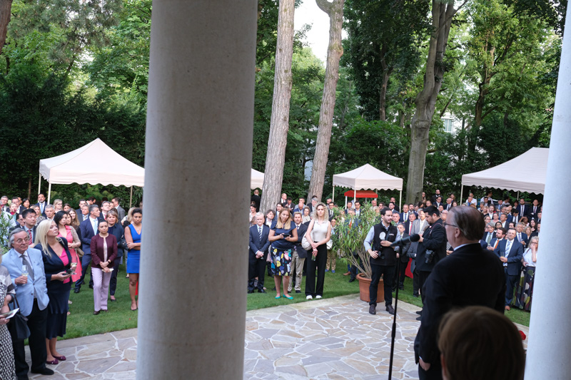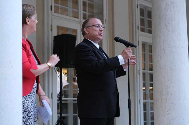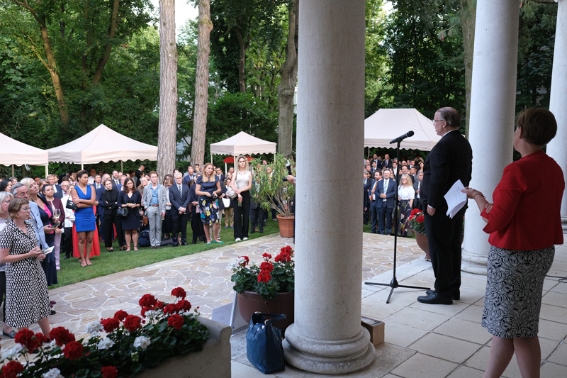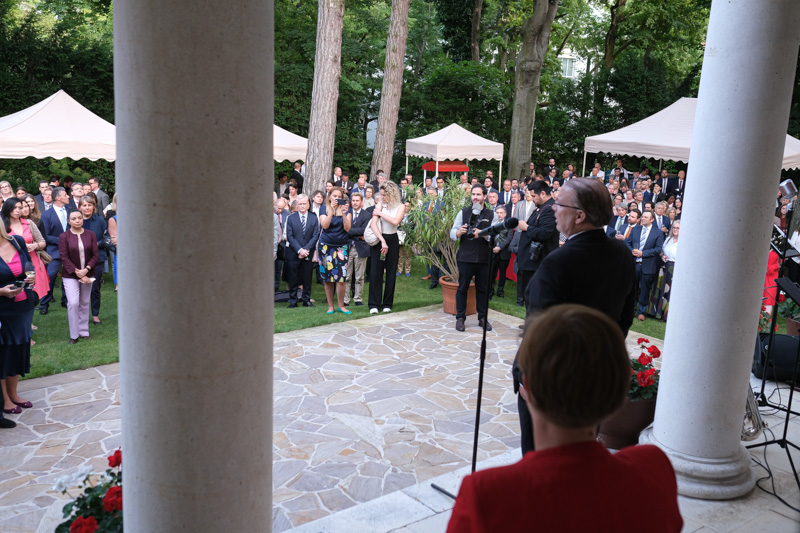 S.E. Troy Lulashnyk, Botschafter von Kanada in Österreich und ständiger Vertreter bei den internationalen Organisationen, und I.E. Jocelyn Kinnear, Botschafterin und ständige Vertreterin bei der OSZE, luden anlässlich des Nationalfeiertages zur traditionellen Gartenparty in die Residenz.