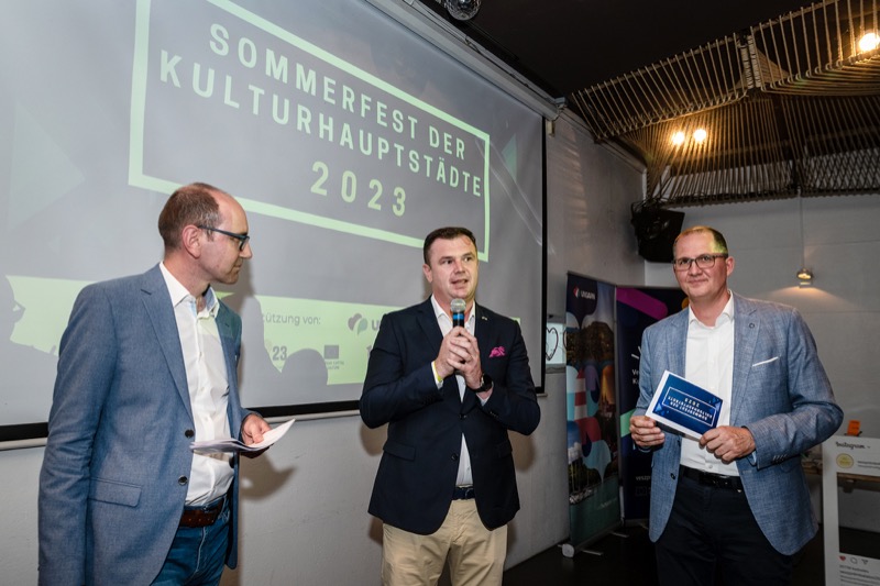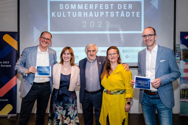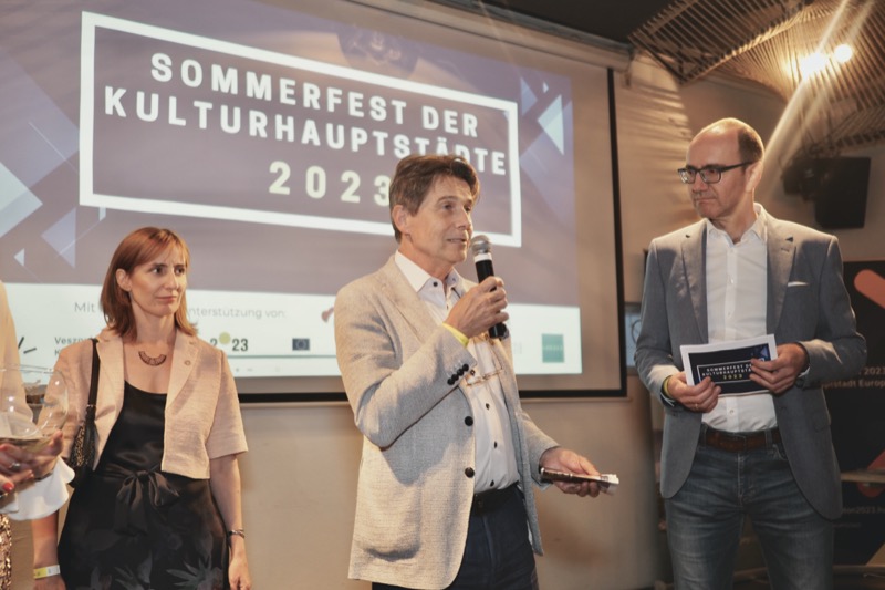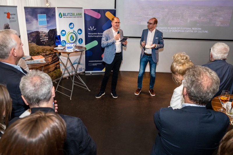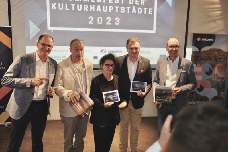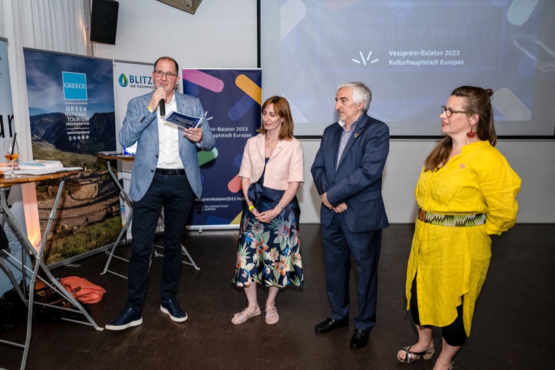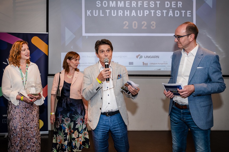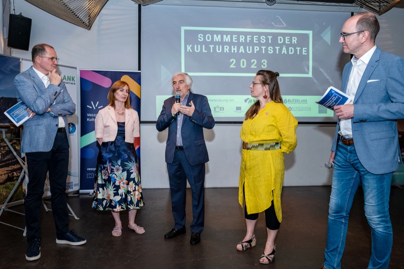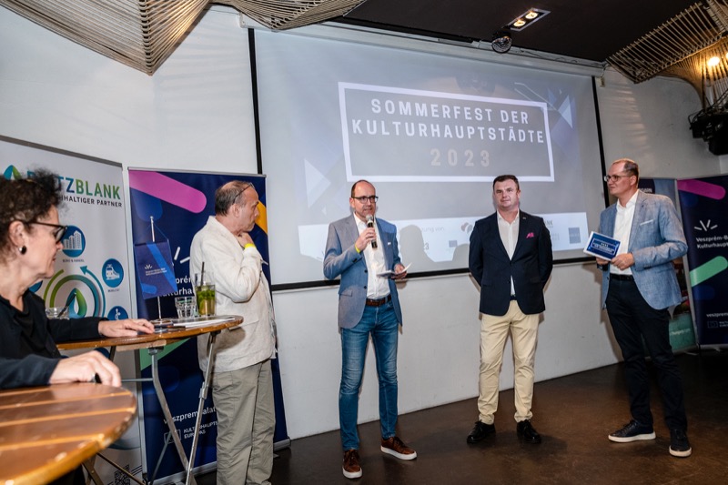 Die drei diesjährigen Kulturhauptstädte Europas trafen sich in einer der trendigsten Locations am Wiener Donaukanal auf Initiative des Collegium Hungaricum Wien und der Kulturhauptstadt Veszprém-Balaton 2023 in Zusammenarbeit mit der Kulturhauptstadt Timisoara (Temeswar) 2023, dem Rumänischen Kulturinstitut Wien und der Griechischen Zentrale für Fremdenverkehr Wien.