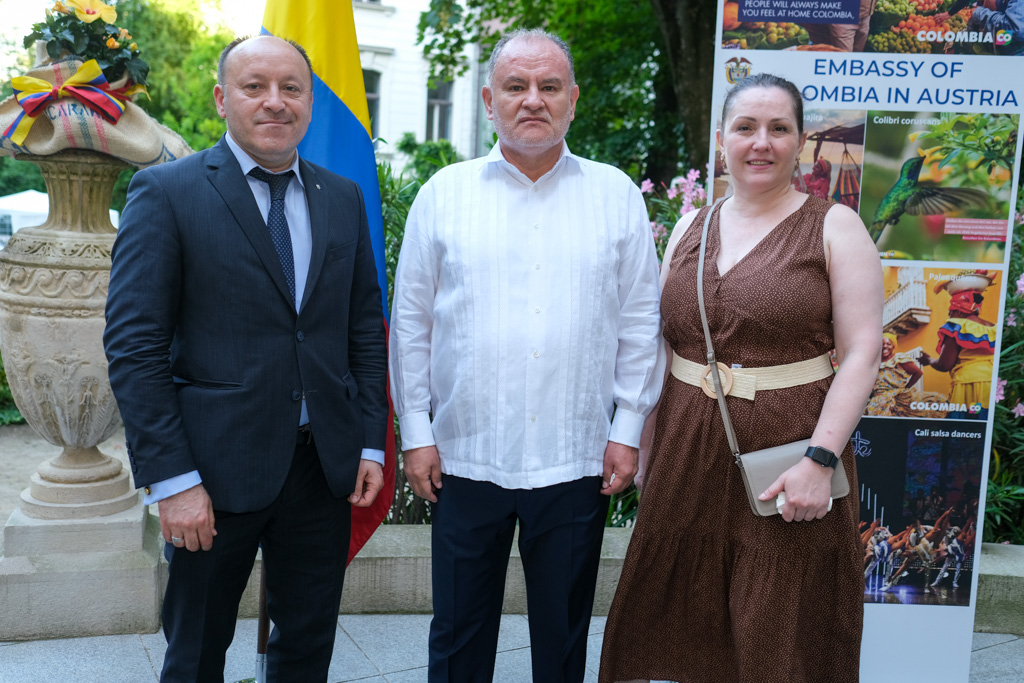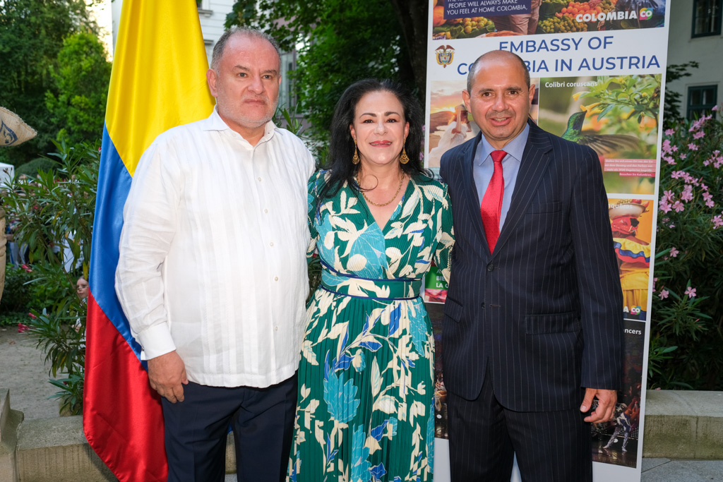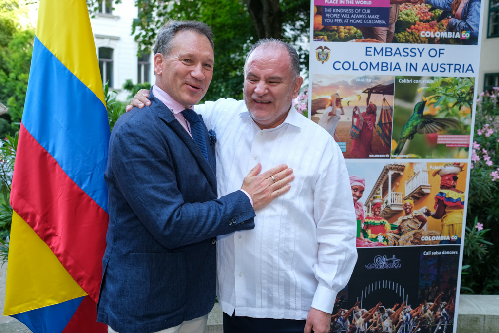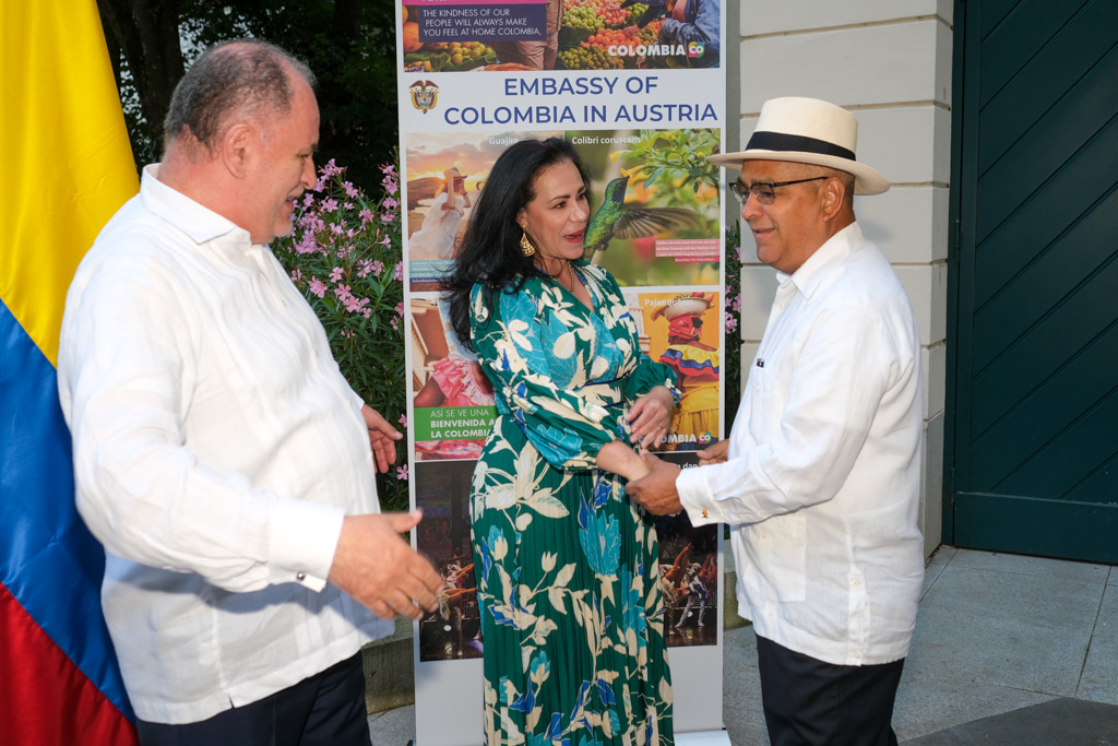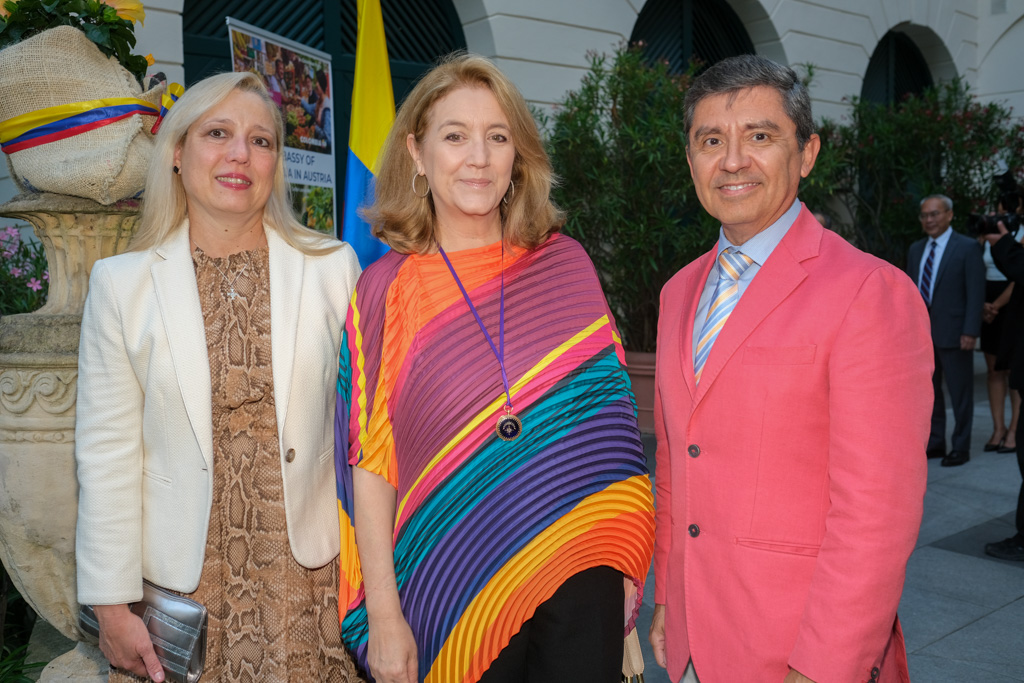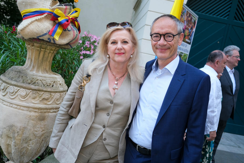 S.E. Miguel Camilo Ruiz Blanco, Botschafter von Kolumbien in Österreich, und seine Frau luden anlässlich des Nationalfeiertages sowie ihres Abschiedes aus Wien zu einem Empfang in den Garten der Residenz.
