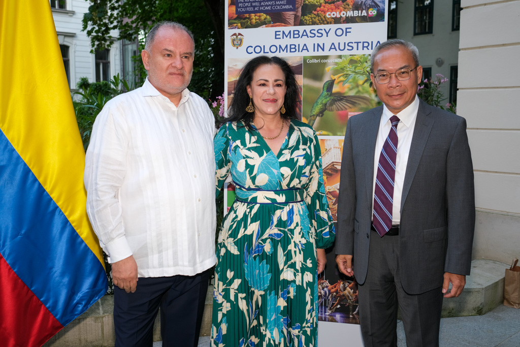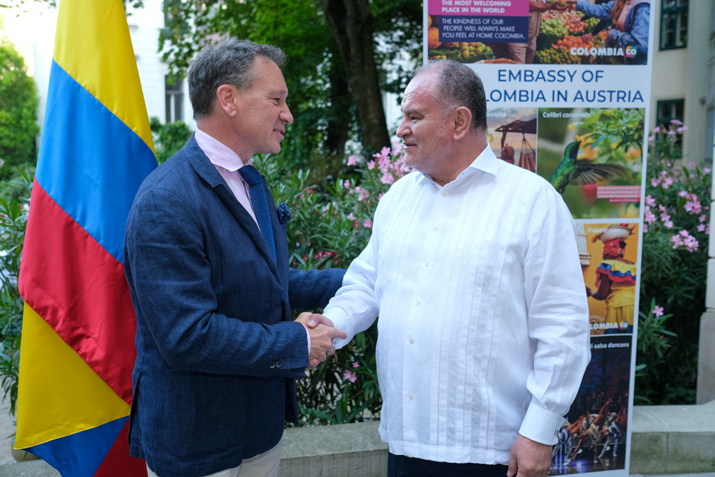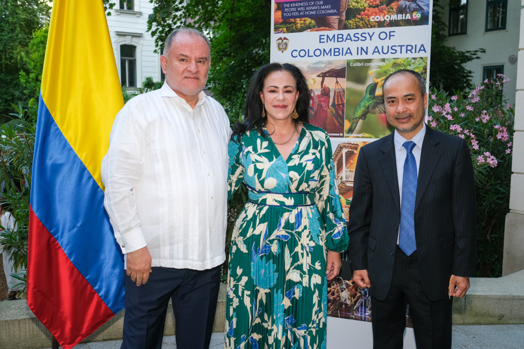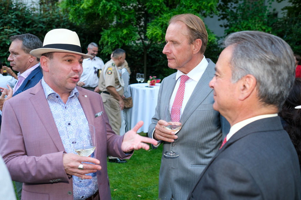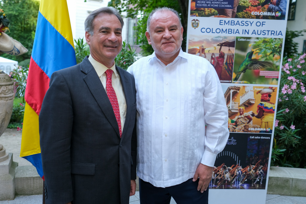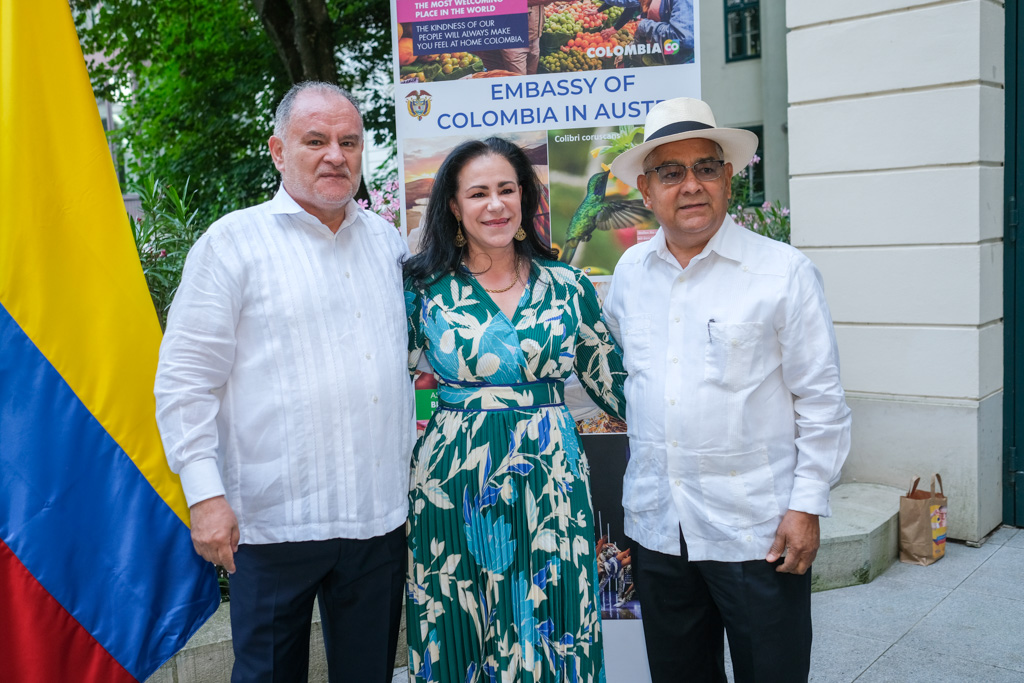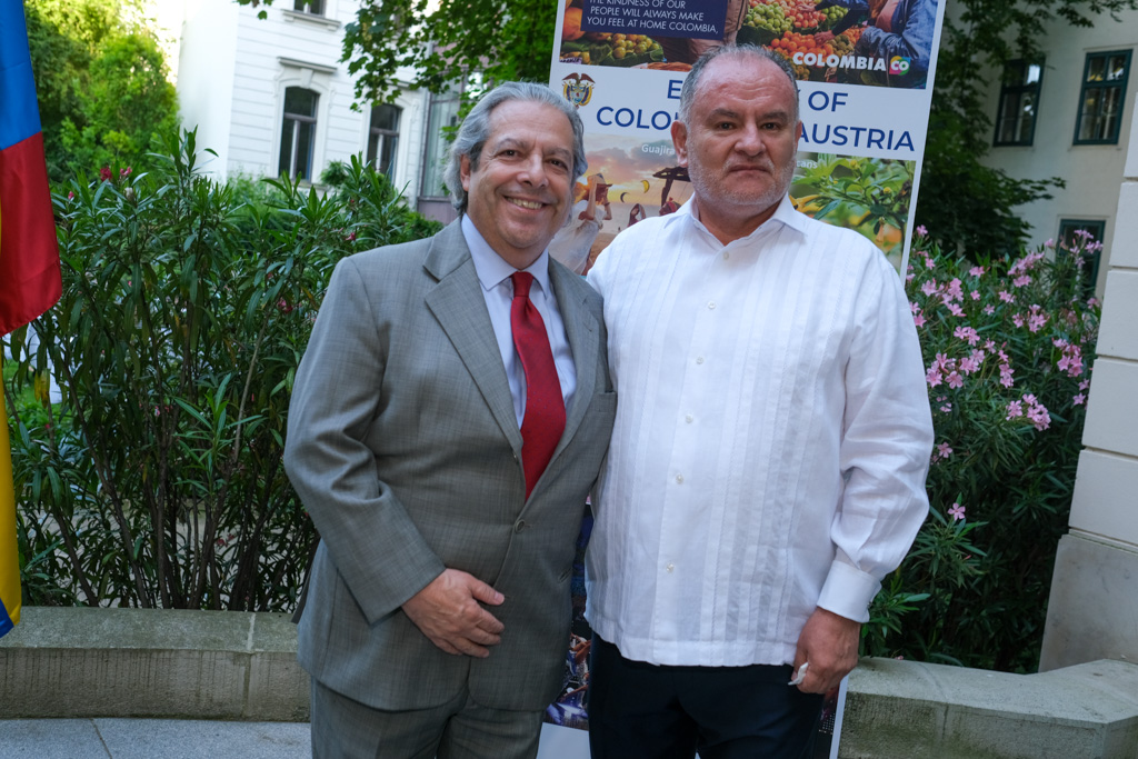 S.E. Miguel Camilo Ruiz Blanco, Botschafter von Kolumbien in Österreich, und seine Frau luden anlässlich des Nationalfeiertages sowie ihres Abschiedes aus Wien zu einem Empfang in den Garten der Residenz.