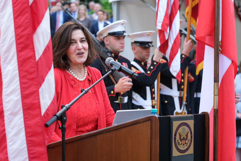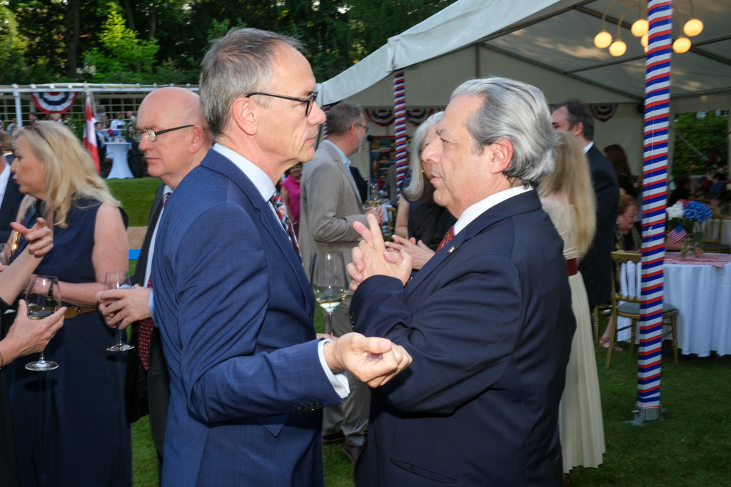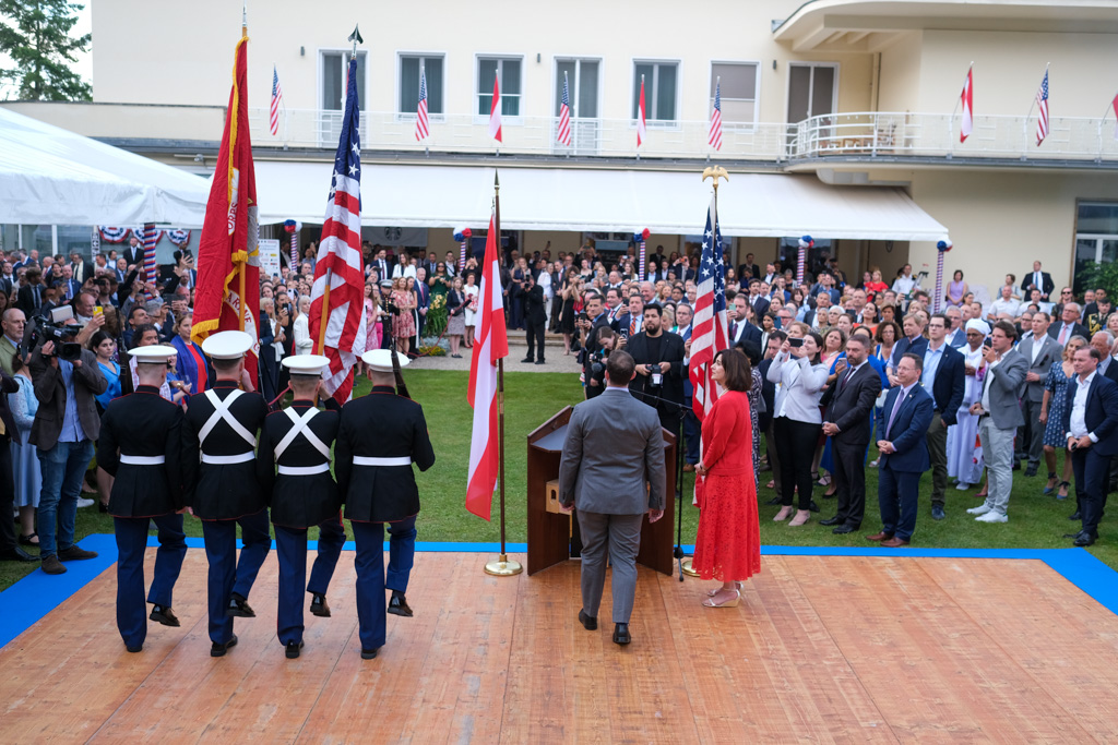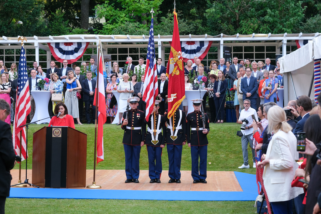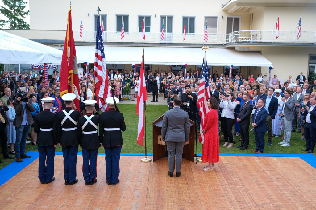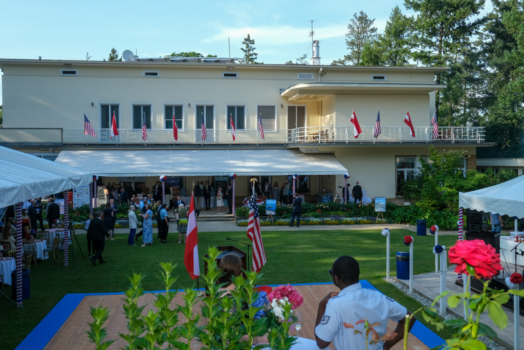Anlässlich des 247. Jahrestages der Unabhängigkeitserklärung der Vereinigten Staaten von Amerika lud I.E. Victoria Reggie Kennedy, Botschafterin der Vereinigten Staaten von Amerika in Österreich, bei prachtvollem Wetter zu einem Gartenempfang in die Residenz.