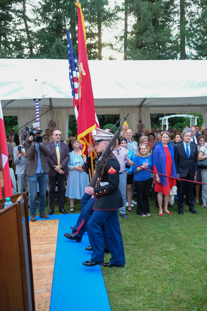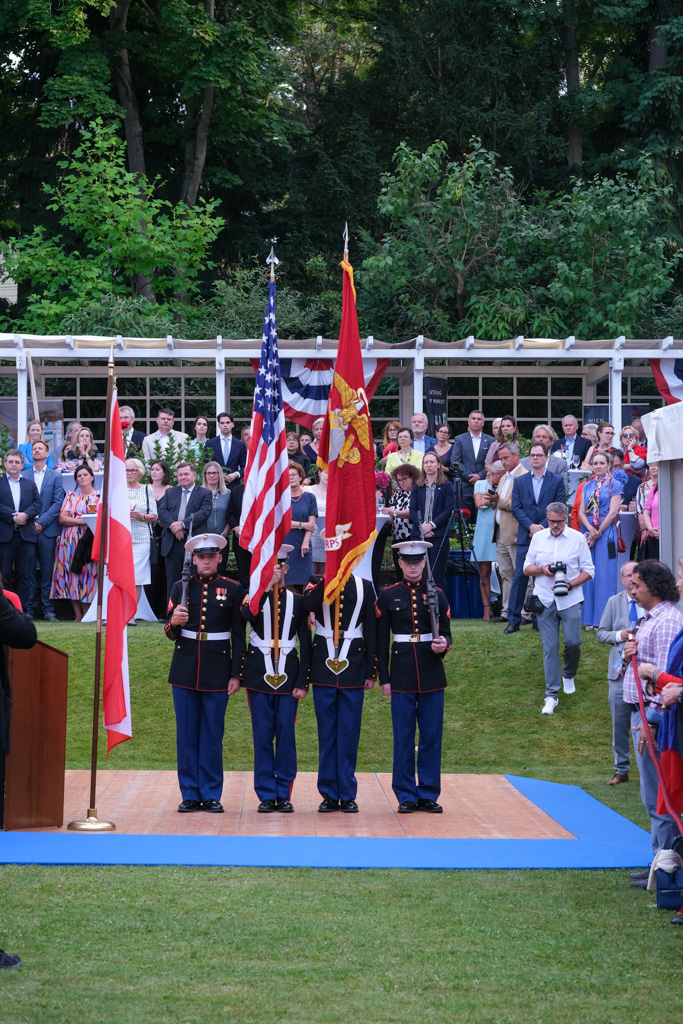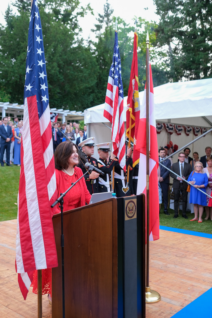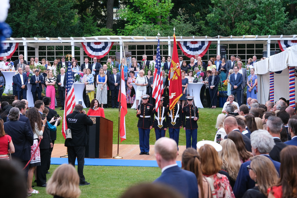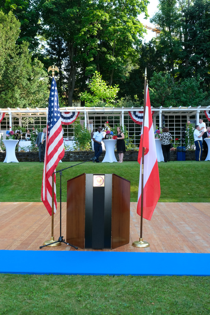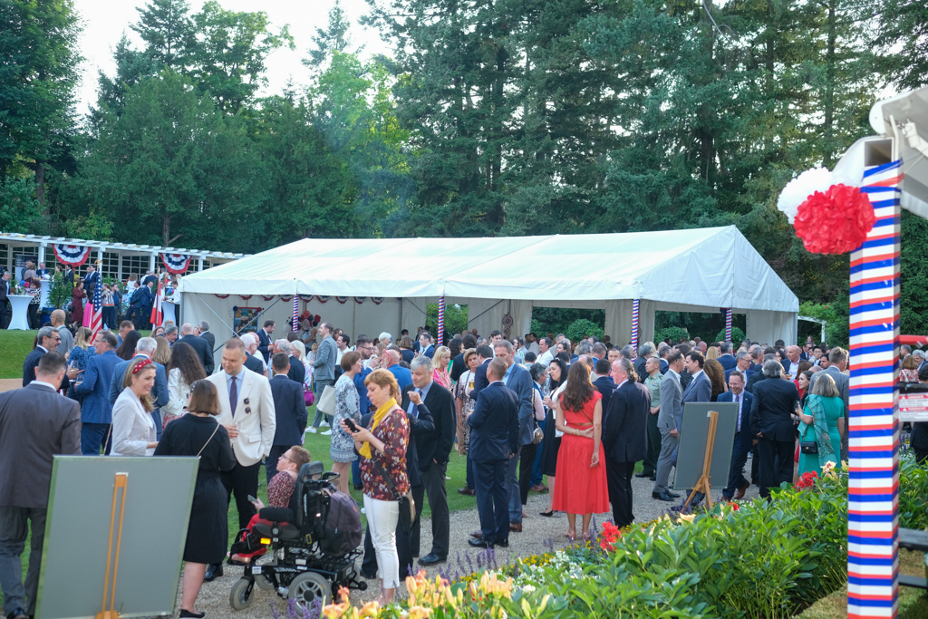 Anlässlich des 247. Jahrestages der Unabhängigkeitserklärung der Vereinigten Staaten von Amerika lud I.E. Victoria Reggie Kennedy, Botschafterin der Vereinigten Staaten von Amerika in Österreich, bei prachtvollem Wetter zu einem Gartenempfang in die Residenz.