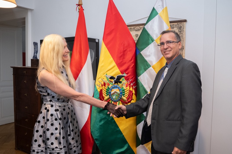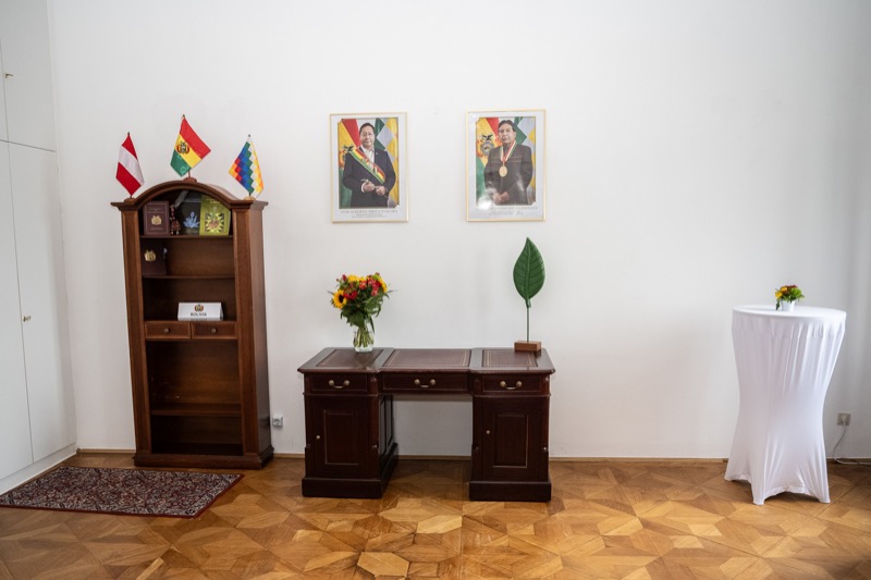 Anlässlich des Nationalfeiertages von Bolivien lud die Geschäftsträgerin a.i. Maria Jolanta Materna Gorna zu einem Empfang in die Botschaft.