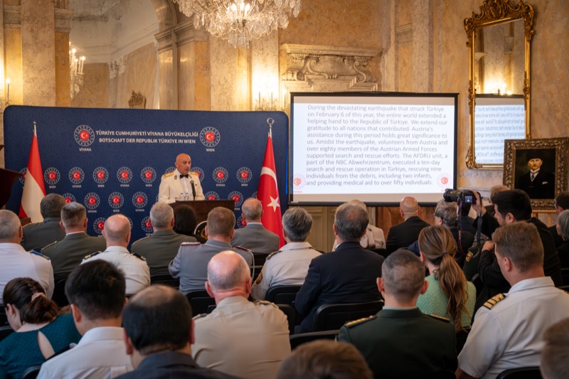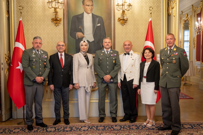 Anlässlich des Tages der Streitkräfte der Republik Türkiye luden der Botschafter der Republik Türkiye, S.E. Ozan Ceyhun und Militärattaché, Oberst Serdar Mercan, zu einem Empfang in die Botschaft.