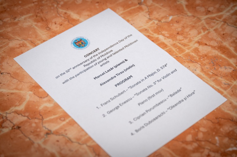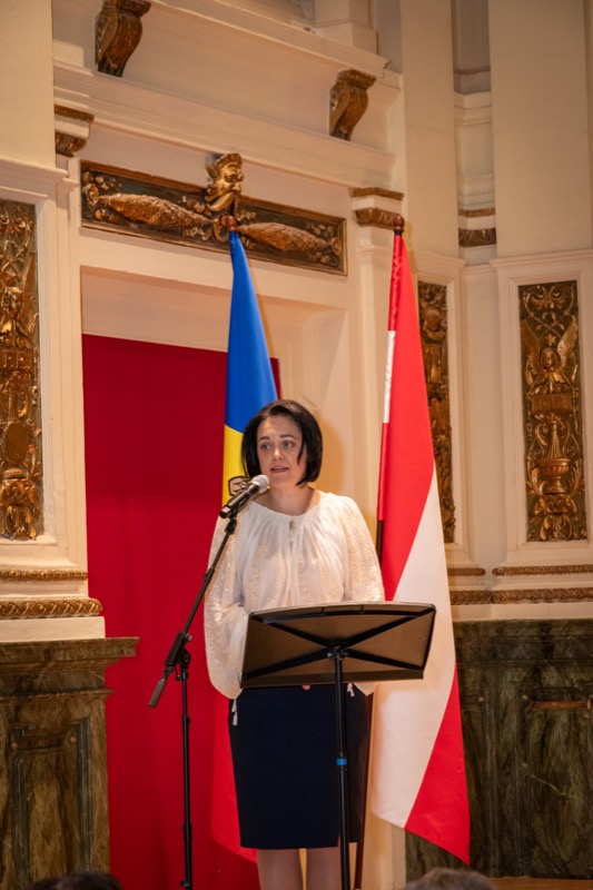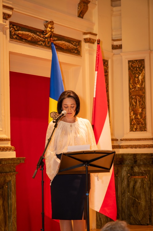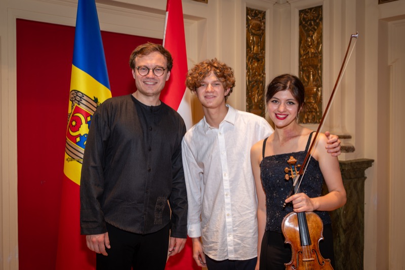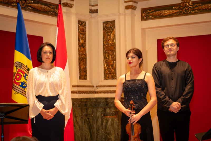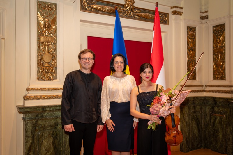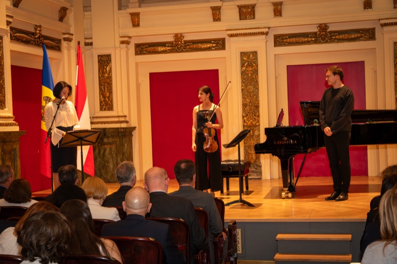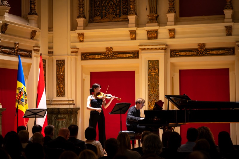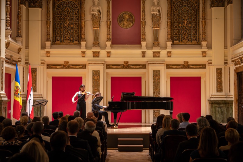 I.E. Mihaela Mocanu, Botschafterin und ständige Vertreterin der Republik Moldau in Österreich, lud anlässlich des 32. Jahrestages der Unabhängigkeit der Republik Moldau zu einem Konzert in den Ehrbaar Saal im Palais Ehrbar. Die jungen Künstler aus der Republik Moldau, Marcel Lazar (Klavier) und Alexandra Tirsu (Violine) begeisterten das Publikum.
