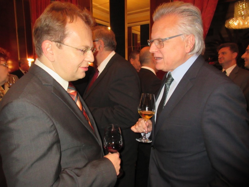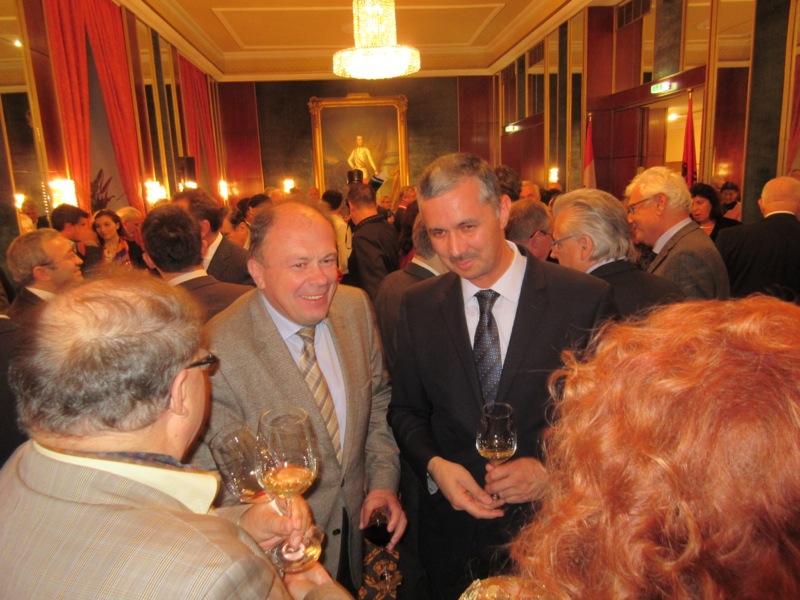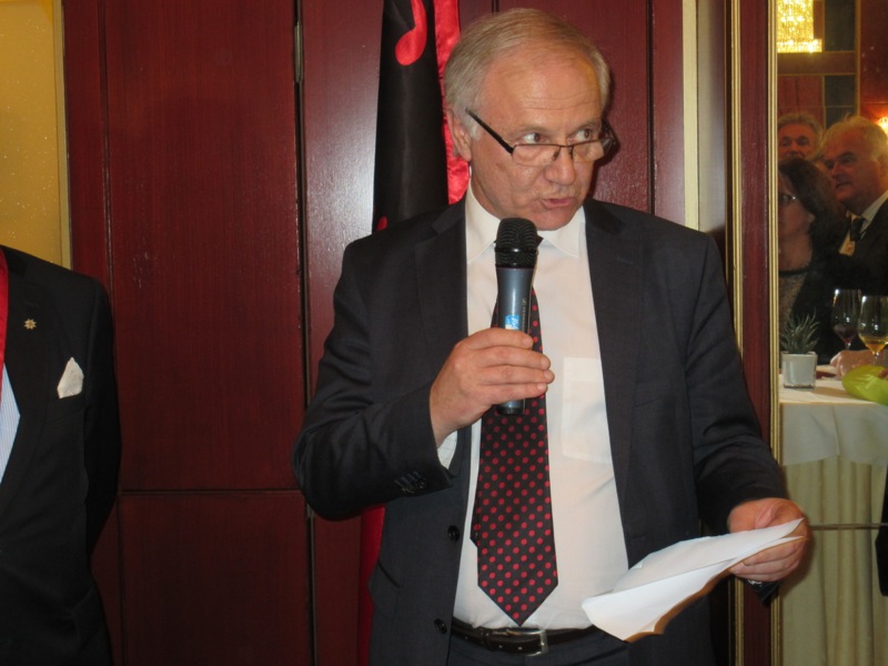 S.E. Roland Bimo, Botschafter von Albanien, und Walter Götz luden zu einem albanischen Abend mit Weinverkostung in das Hotel de France.