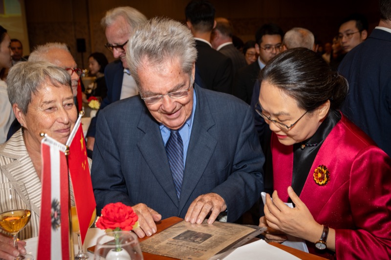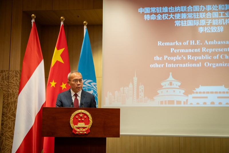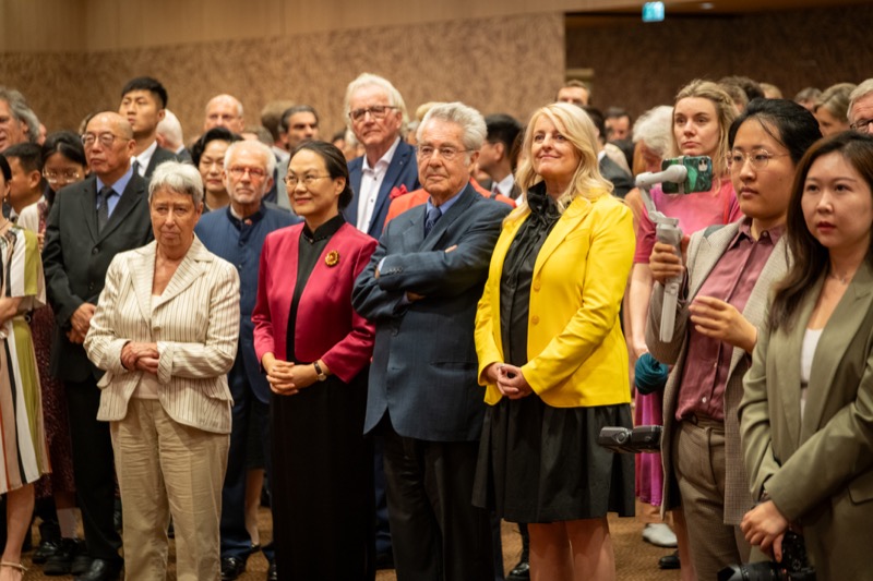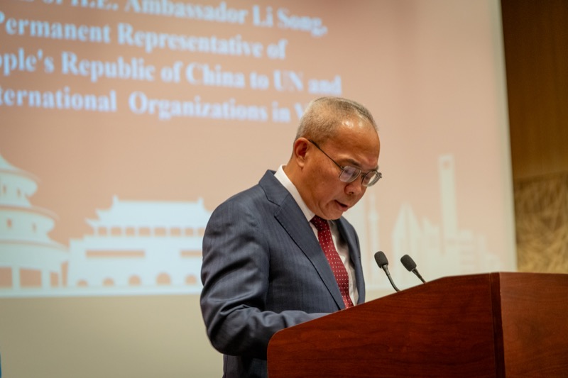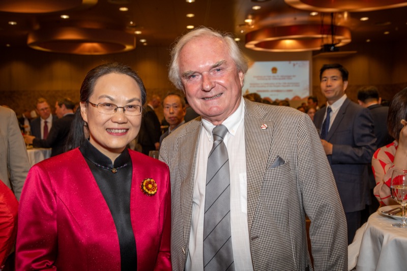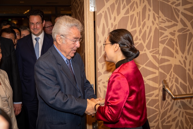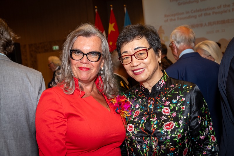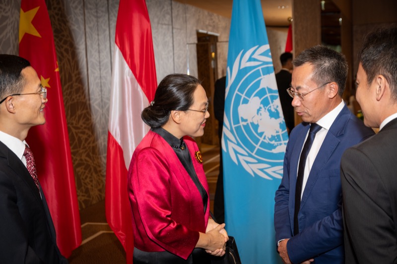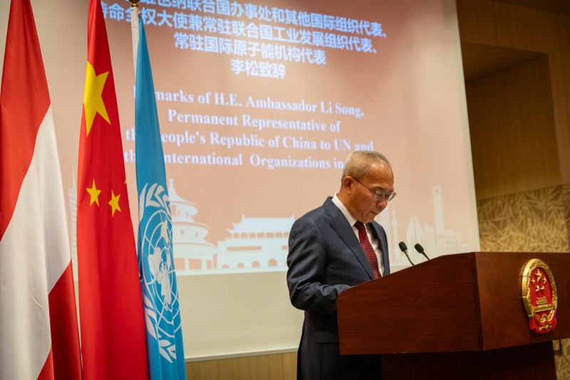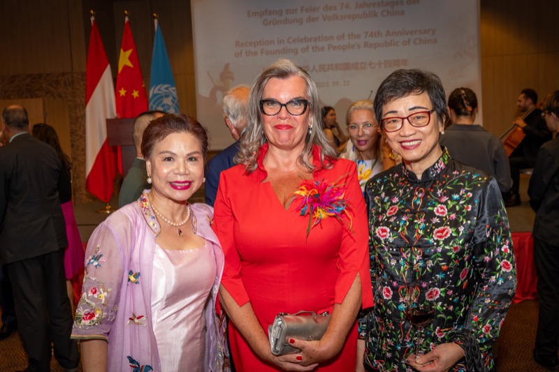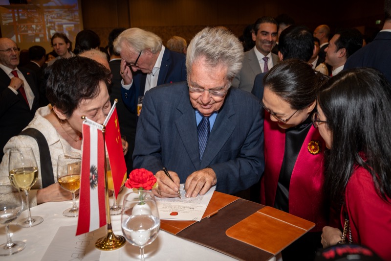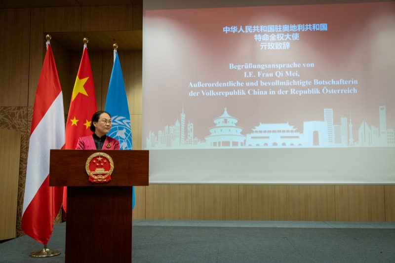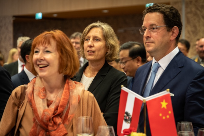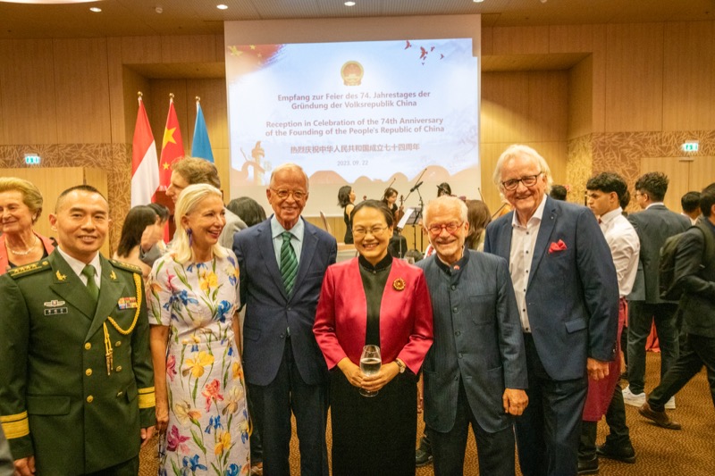 luden die Botschafterin der VR China in der Republik Österreich, I.E. QI Mei, und der Ständige Vertreter der VR China bei den VN und anderen int. Organisationen in Wien, S.E. LI Song, zu einem Empfang in das Hotel Savoyen Vienna.
