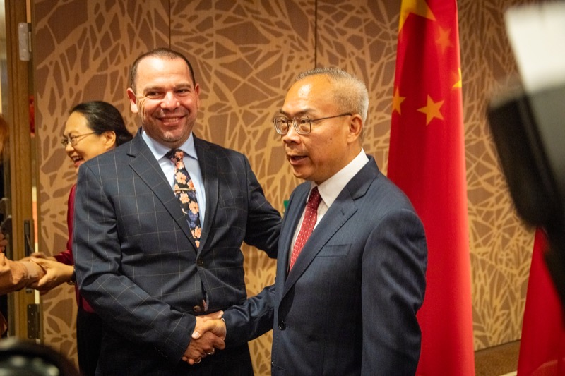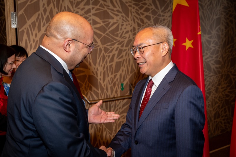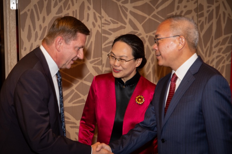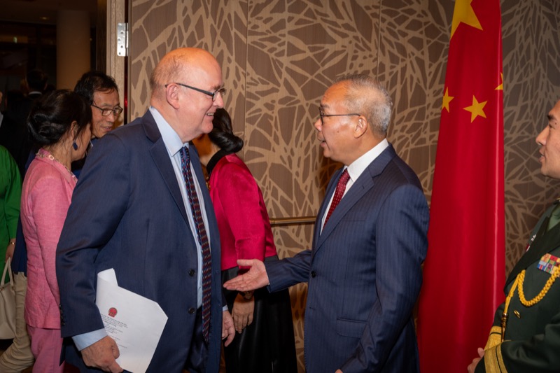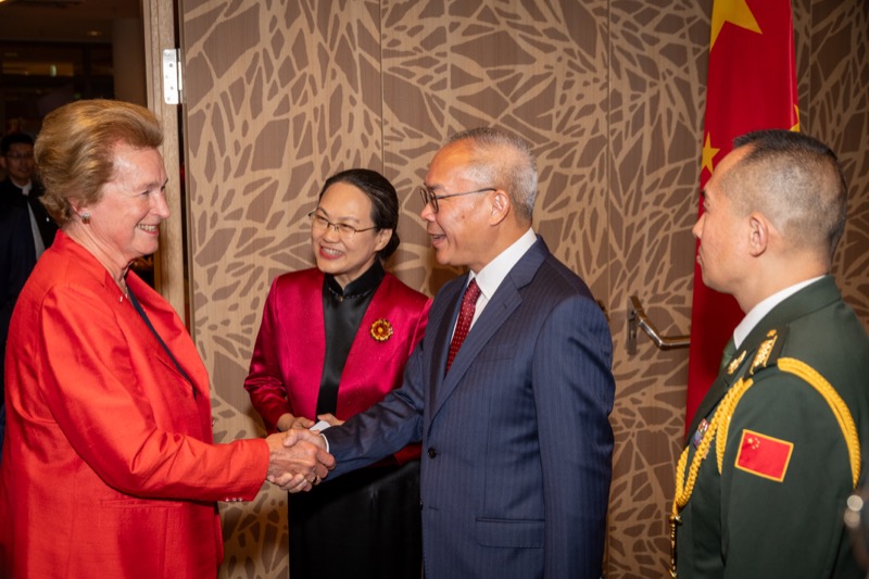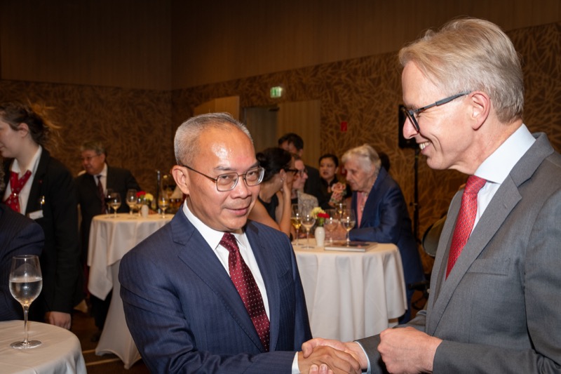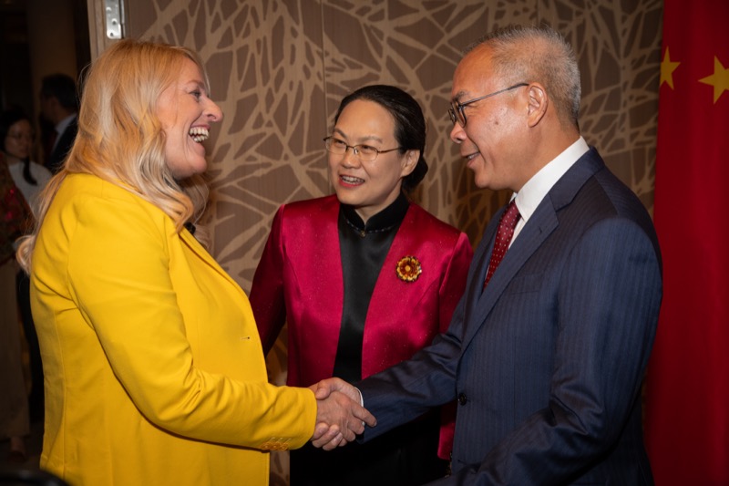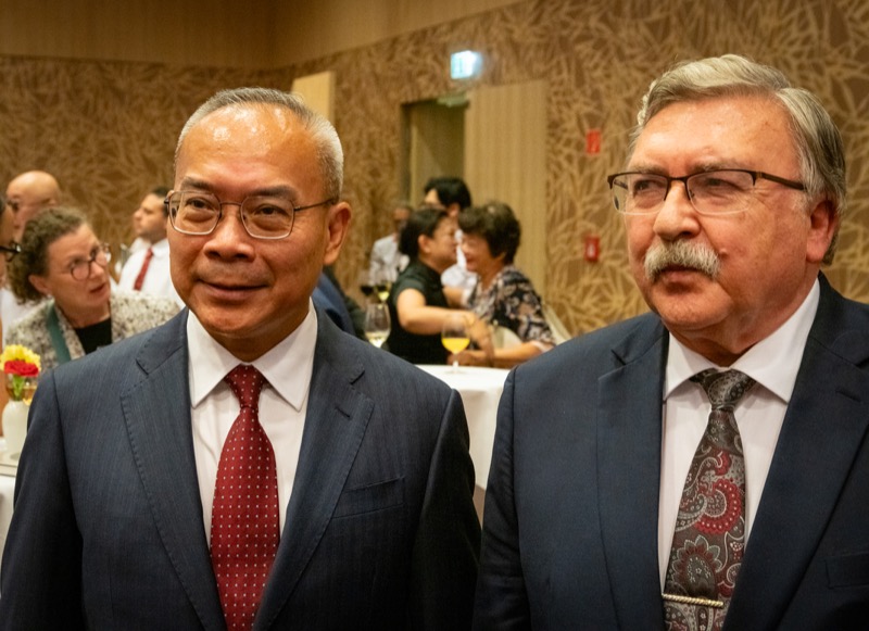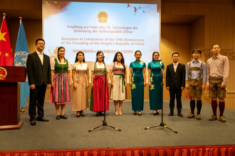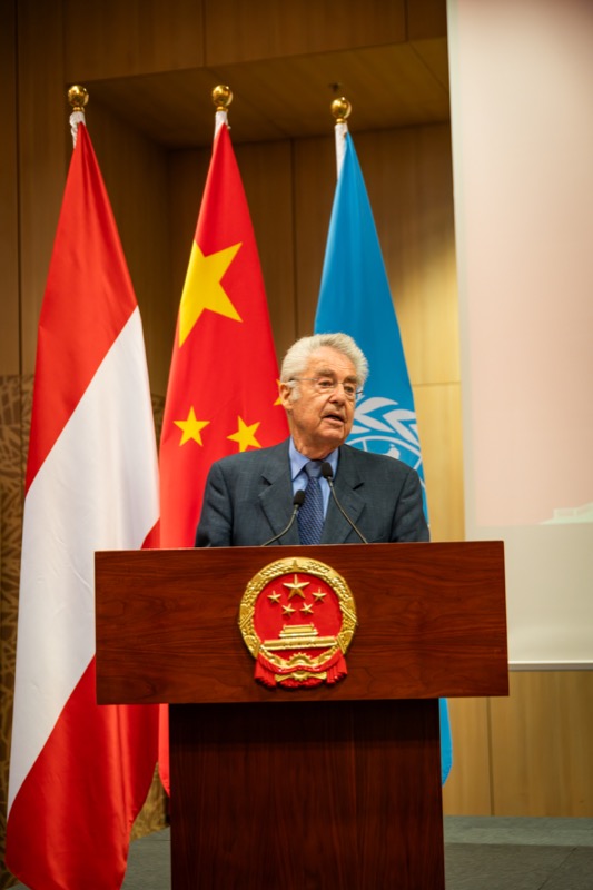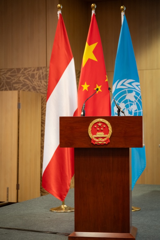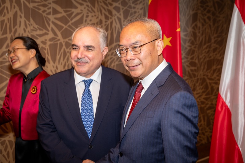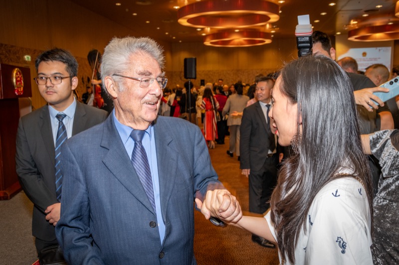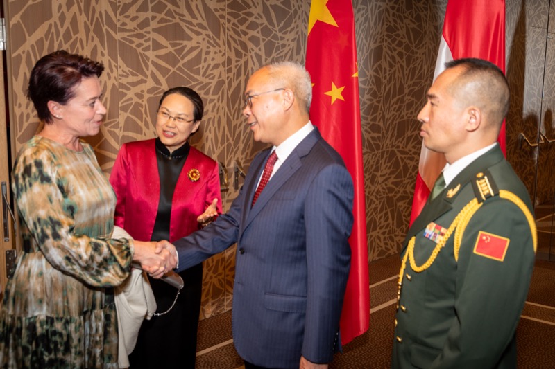 luden die Botschafterin der VR China in der Republik Österreich, I.E. QI Mei, und der Ständige Vertreter der VR China bei den VN und anderen int. Organisationen in Wien, S.E. LI Song, zu einem Empfang in das Hotel Savoyen Vienna.