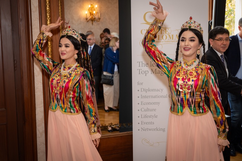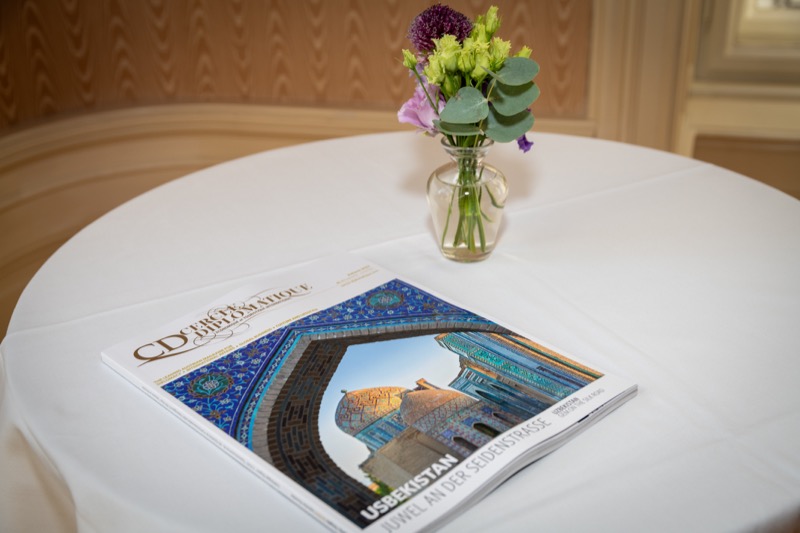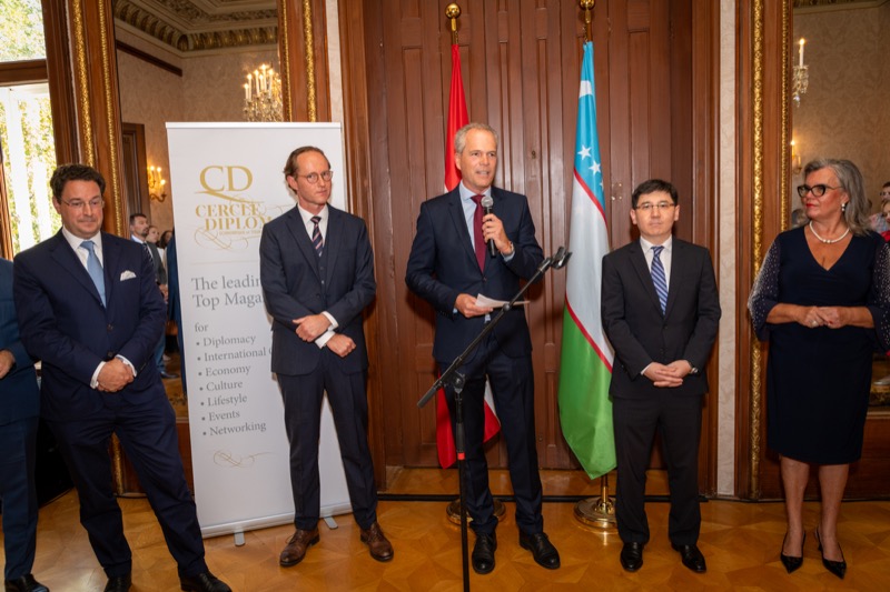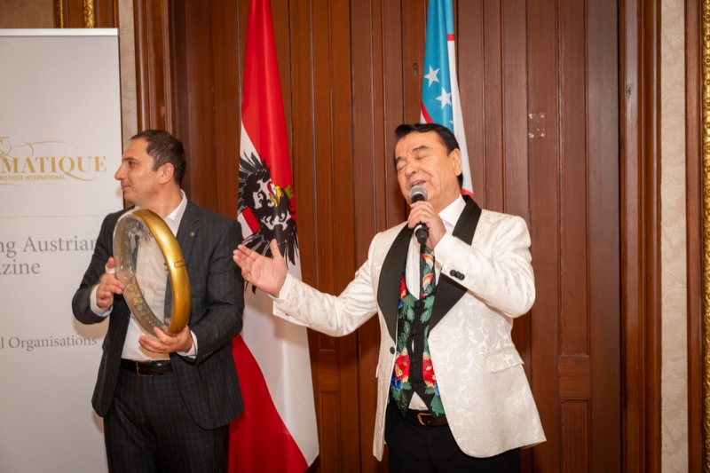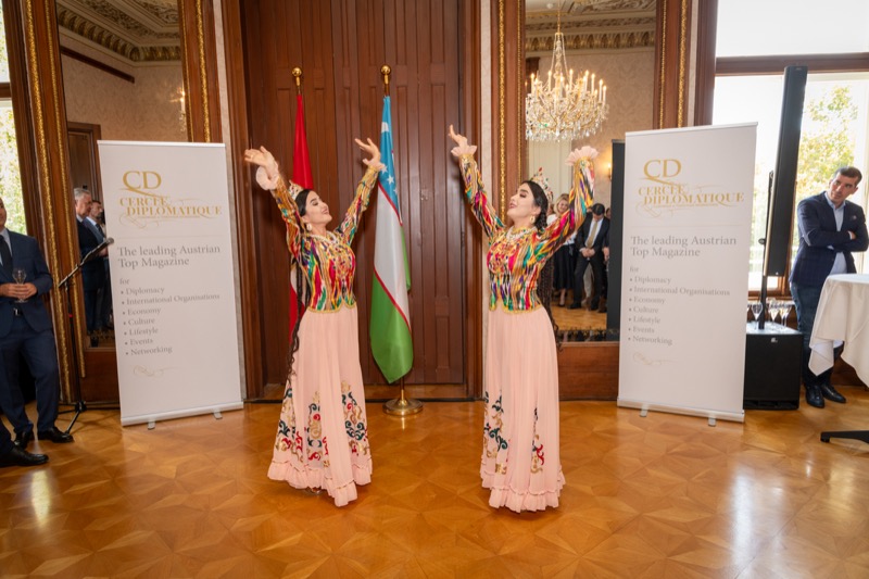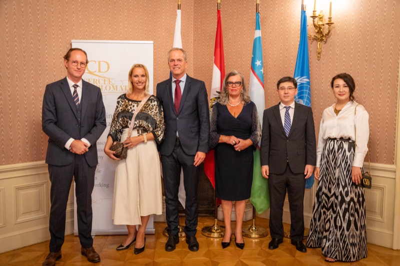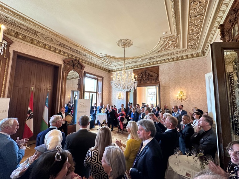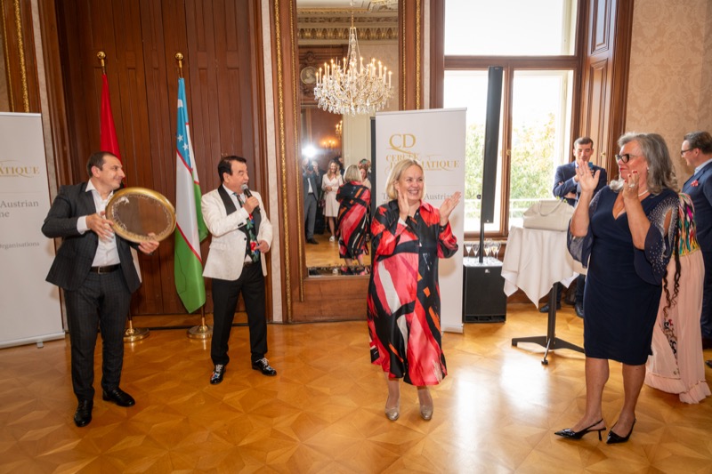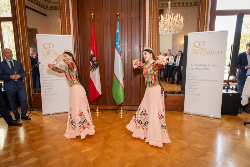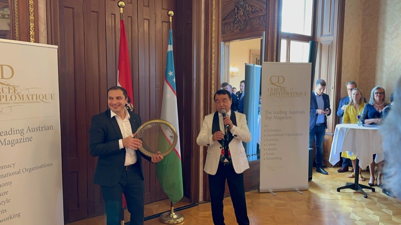 Andrea Fürnweger und Alexander Bursky, Herausgeber von CERCLE DIPLOMATIQUE, luden gemeinsam mit S.E. Abat Fayzullaev, Botschafter der Republik Usbekistan, und Frank Spielmeyer, Generaldirektor des erst kürzlich eröffneten Hotels Almanac Palais Vienna, rund 130 Gäste in die prachtvollen 'Heritage Rooms' des Hotels am Parkring, um gleich drei Ereignisse gebührend zu feiern. Es wurde diesmal nicht nur die Herbstausgabe des Magazins mit der Coverstory über die Republik Usbekistan vorgestellt, sondern es wurde auch der Nationalfeiertag der Republik Usbekistan gefeiert. Ausserdem war es der Abschiedsempfang von Botschafter Fayzullaev, der in Kürze Wien verlassen wird, um seinen neuen Posten als Botschafter in Rom anzutreten.