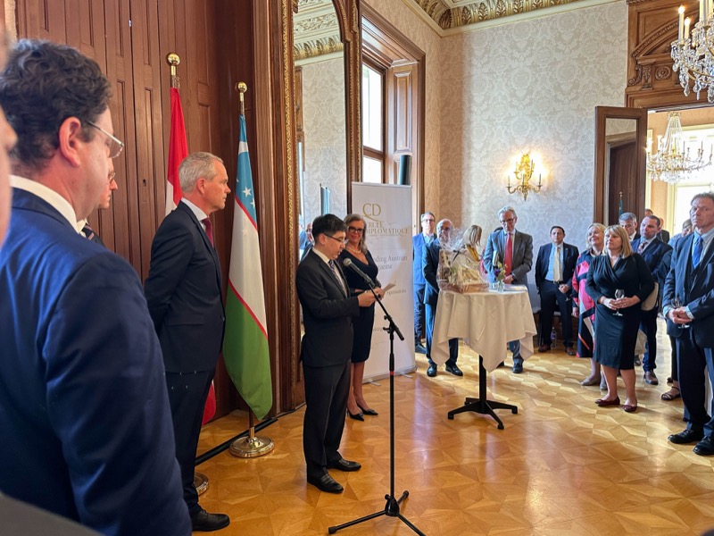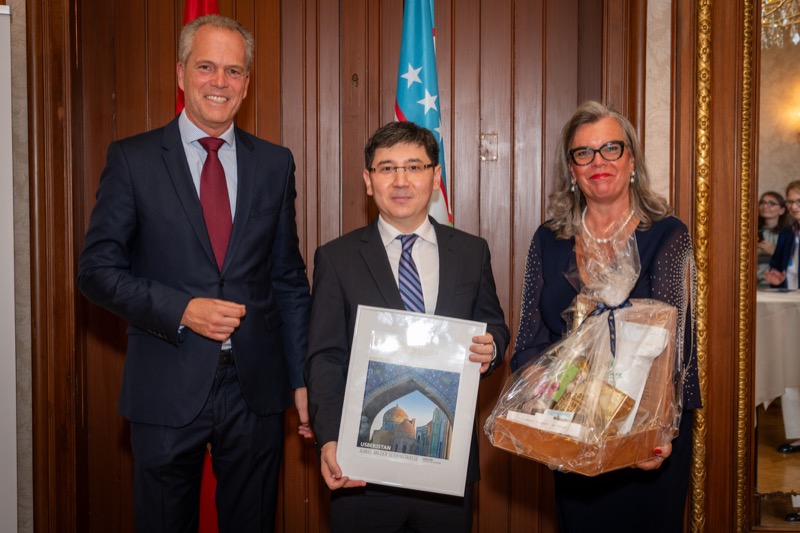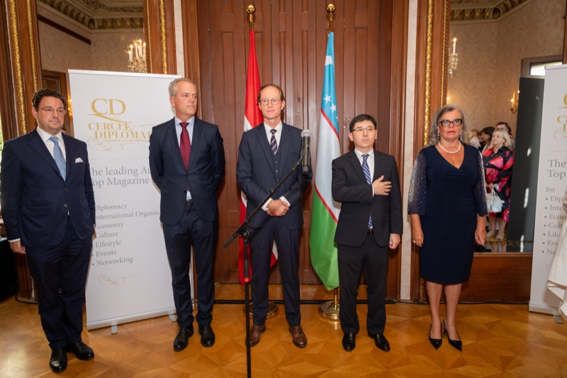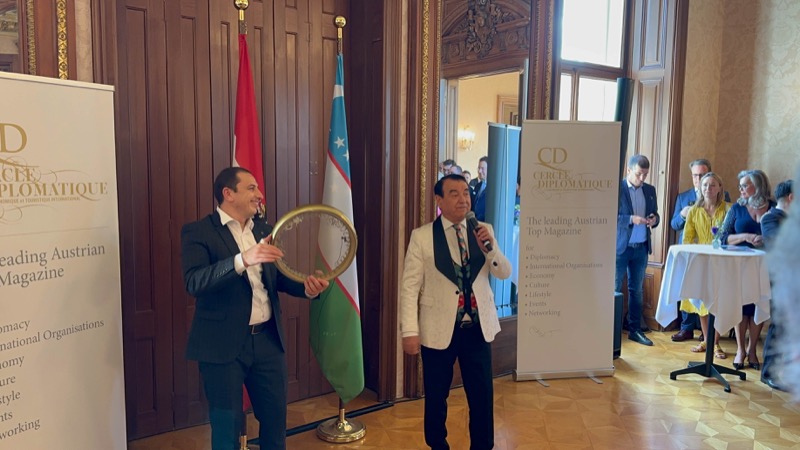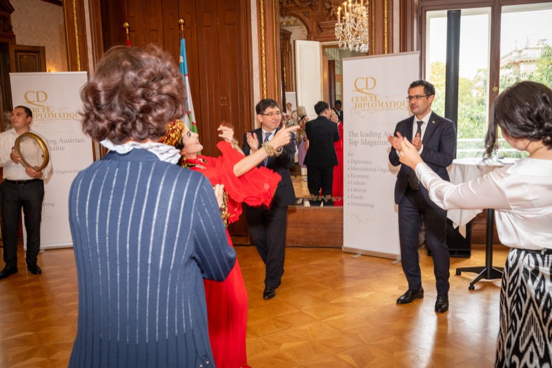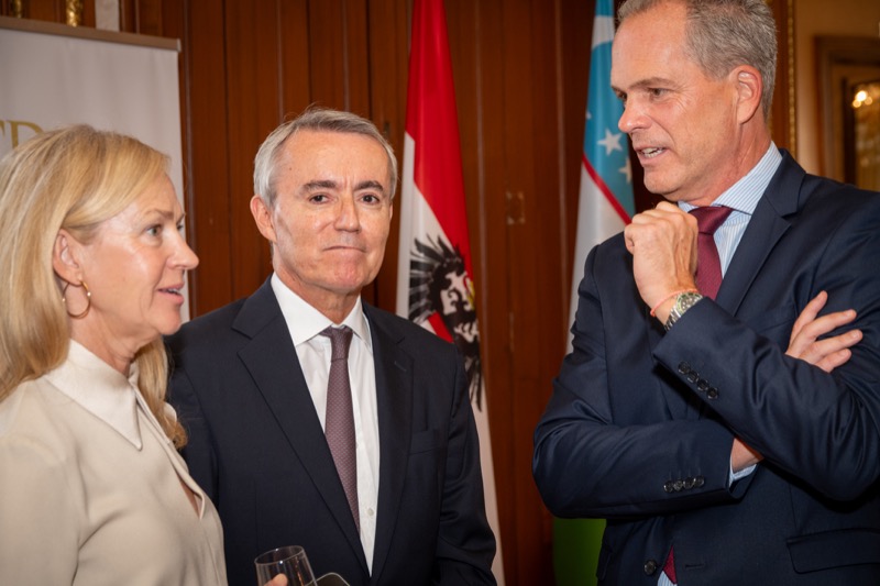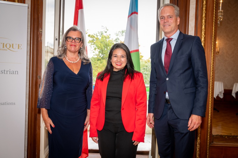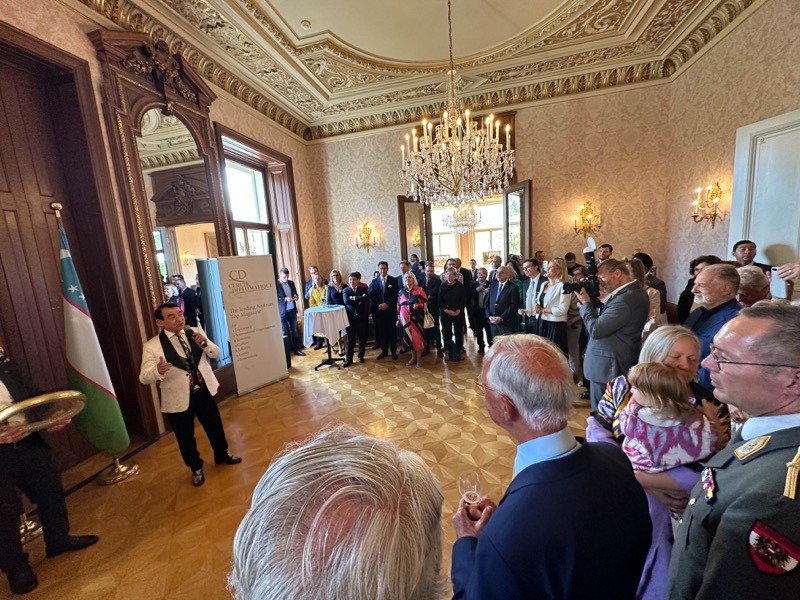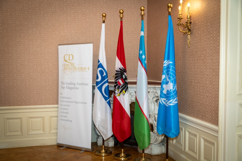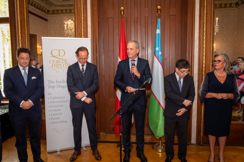 Andrea Fürnweger und Alexander Bursky, Herausgeber von CERCLE DIPLOMATIQUE, luden gemeinsam mit S.E. Abat Fayzullaev, Botschafter der Republik Usbekistan, und Frank Spielmeyer, Generaldirektor des erst kürzlich eröffneten Hotels Almanac Palais Vienna, rund 130 Gäste in die prachtvollen 'Heritage Rooms' des Hotels am Parkring, um gleich drei Ereignisse gebührend zu feiern. Es wurde diesmal nicht nur die Herbstausgabe des Magazins mit der Coverstory über die Republik Usbekistan vorgestellt, sondern es wurde auch der Nationalfeiertag der Republik Usbekistan gefeiert. Ausserdem war es der Abschiedsempfang von Botschafter Fayzullaev, der in Kürze Wien verlassen wird, um seinen neuen Posten als Botschafter in Rom anzutreten.