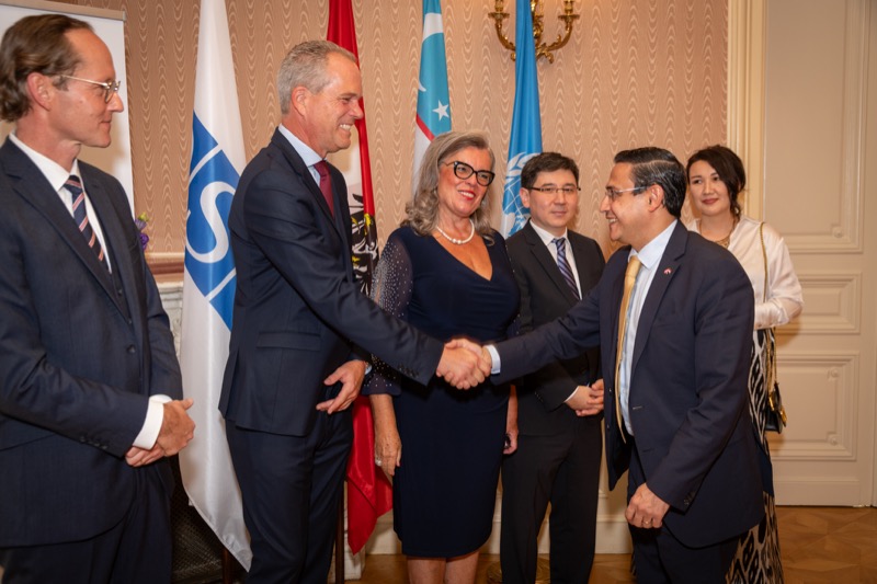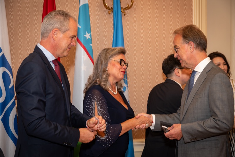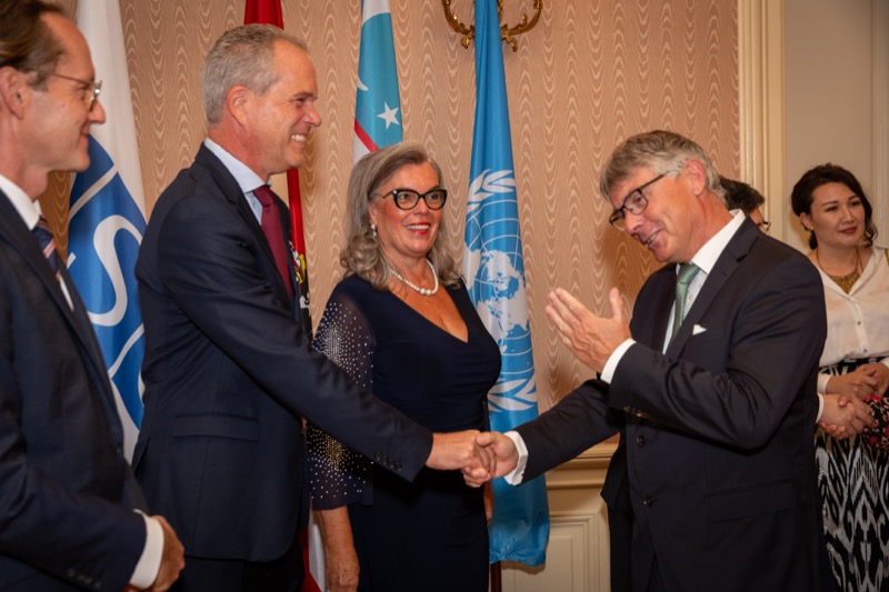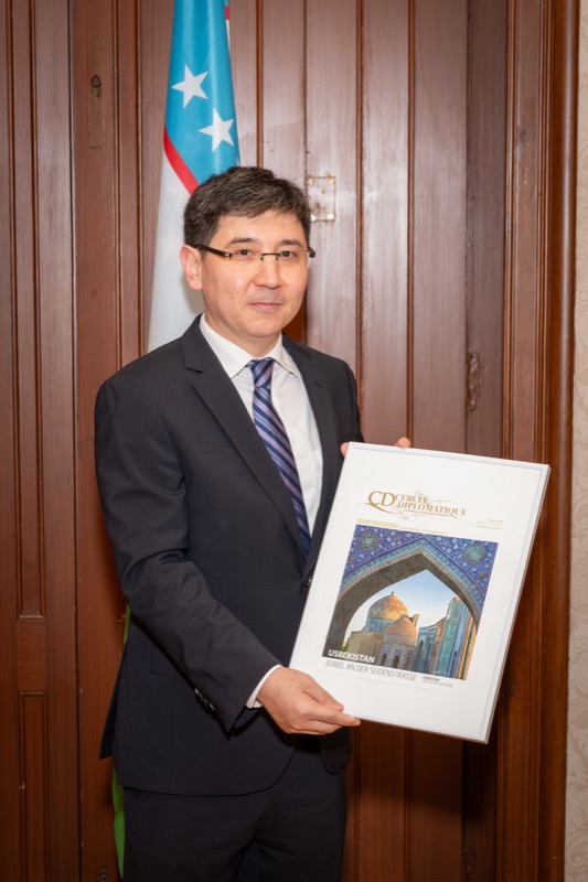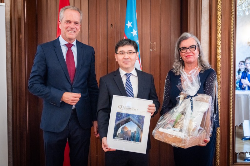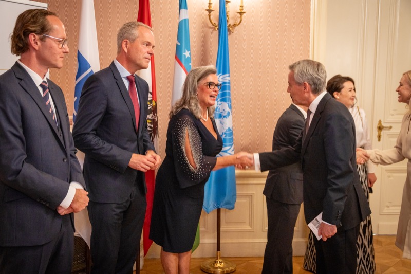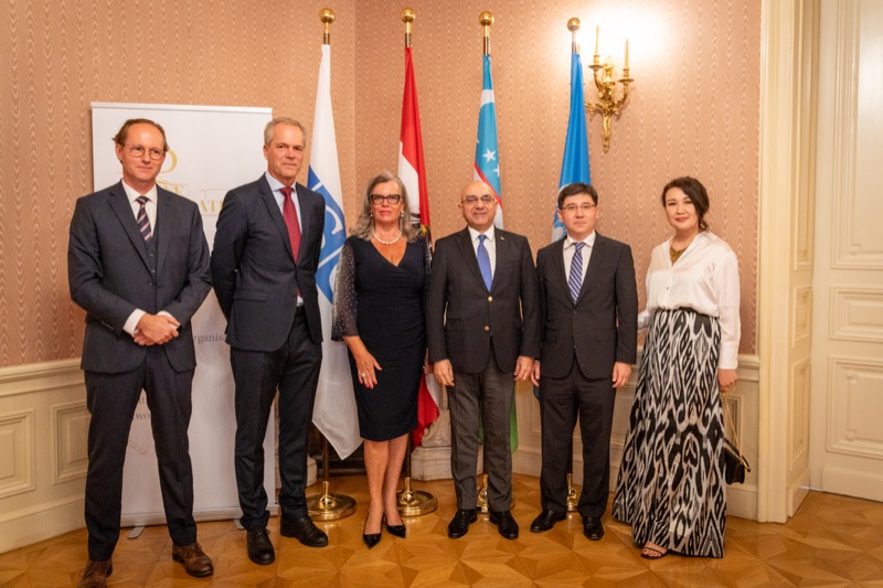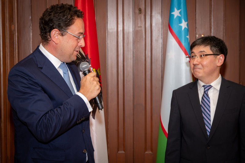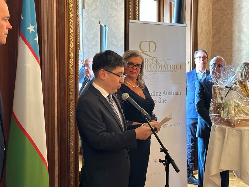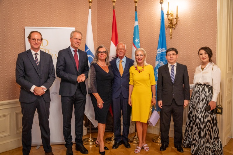 Andrea Fürnweger und Alexander Bursky, Herausgeber von CERCLE DIPLOMATIQUE, luden gemeinsam mit S.E. Abat Fayzullaev, Botschafter der Republik Usbekistan, und Frank Spielmeyer, Generaldirektor des erst kürzlich eröffneten Hotels Almanac Palais Vienna, rund 130 Gäste in die prachtvollen 'Heritage Rooms' des Hotels am Parkring, um gleich drei Ereignisse gebührend zu feiern. Es wurde diesmal nicht nur die Herbstausgabe des Magazins mit der Coverstory über die Republik Usbekistan vorgestellt, sondern es wurde auch der Nationalfeiertag der Republik Usbekistan gefeiert. Ausserdem war es der Abschiedsempfang von Botschafter Fayzullaev, der in Kürze Wien verlassen wird, um seinen neuen Posten als Botschafter in Rom anzutreten.