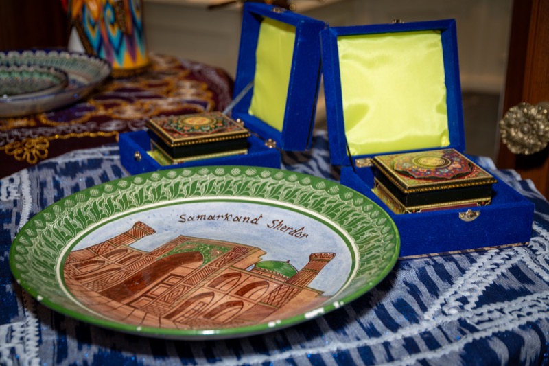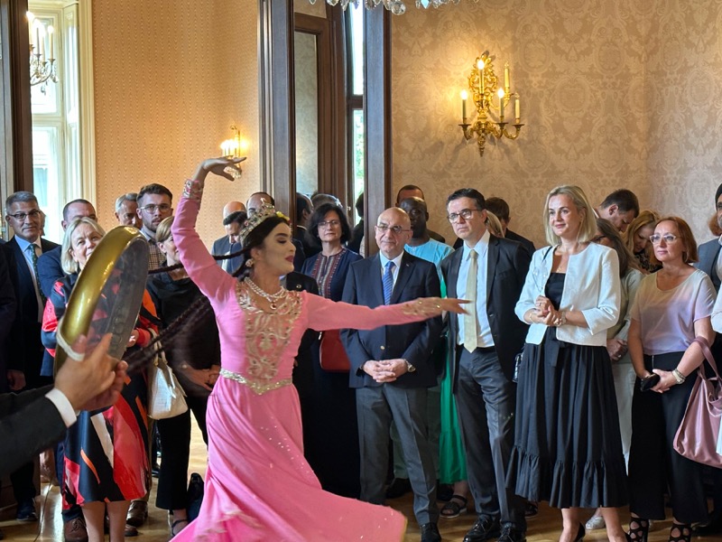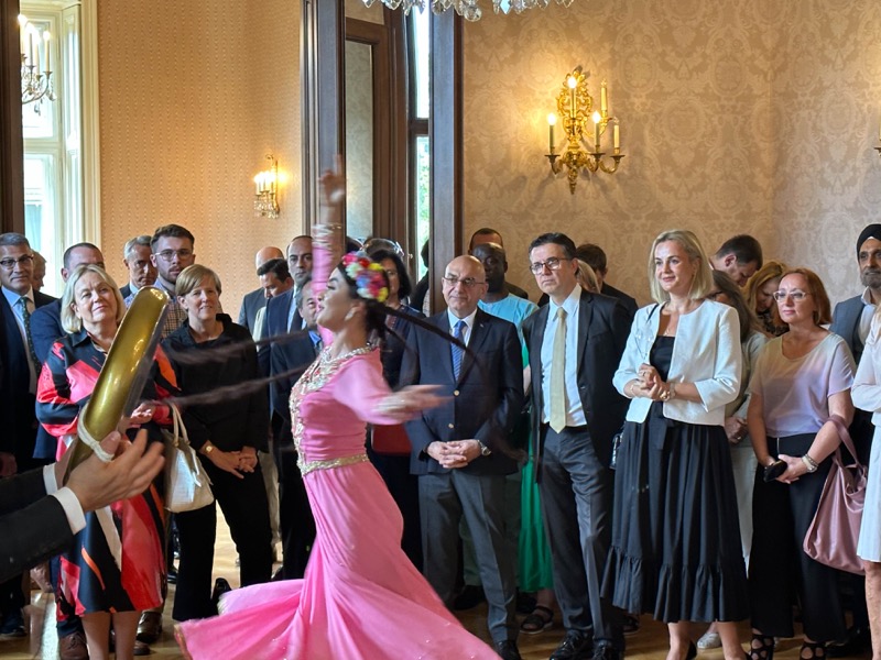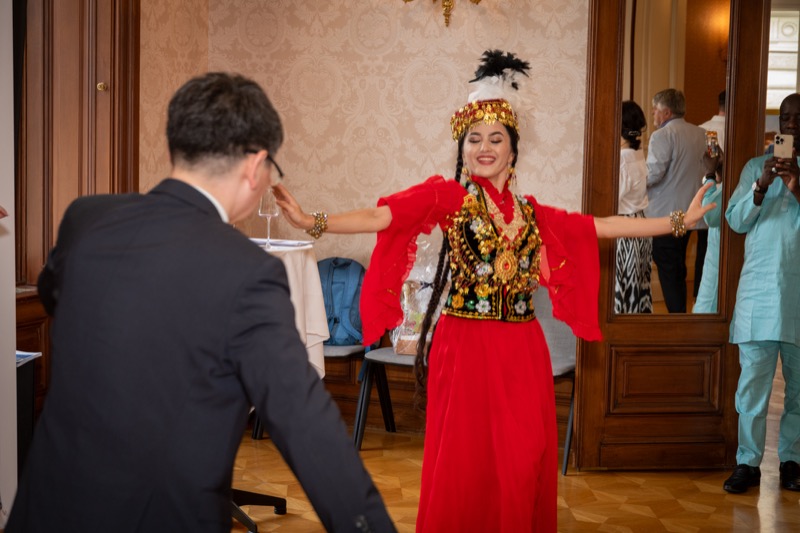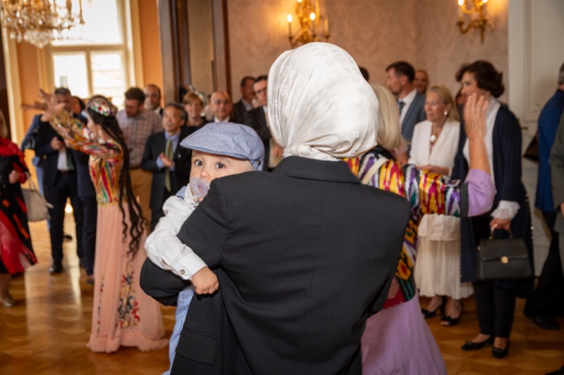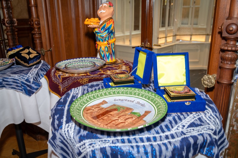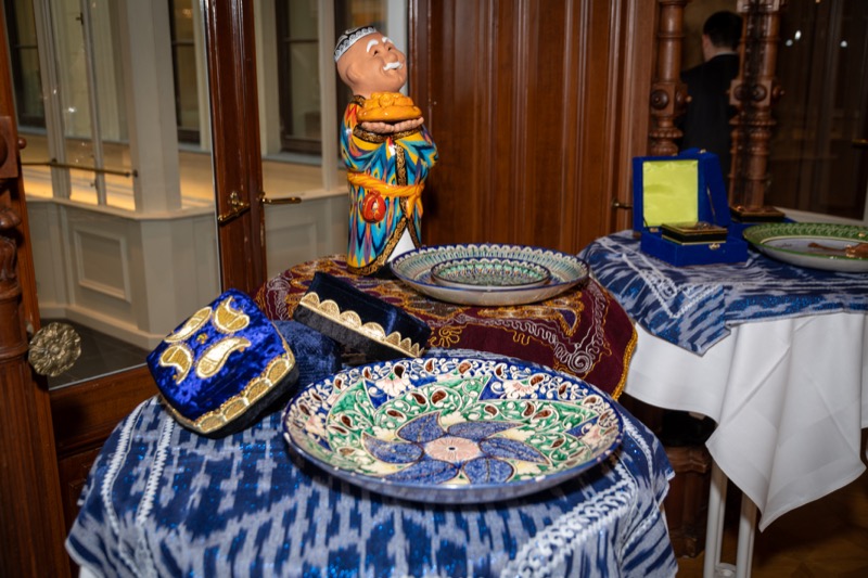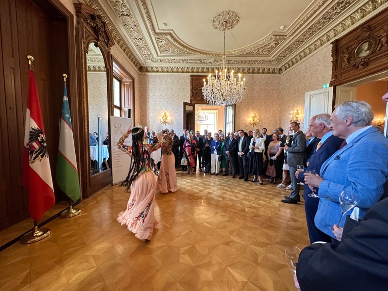 Nach den Ansprachen sowie der Überreichung eines 'Gerstner'-Geschenkkorbes mit Spezialitäten an Botschafter Fayzullaev, wurden die Gäste von extra aus Usbekistan eingeflogenen Tänzerinnen und Musikern unterhalten und konnten danach usbekische Spezialitäten verkosten.