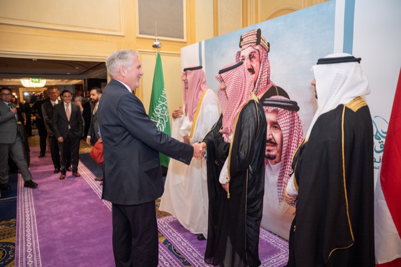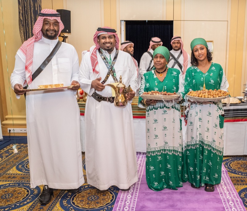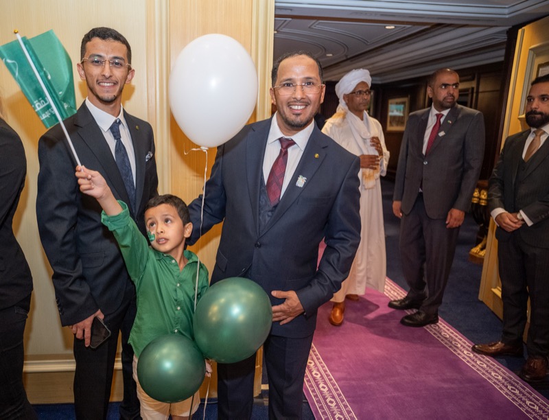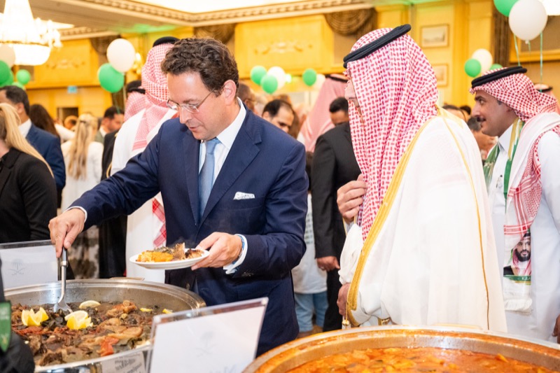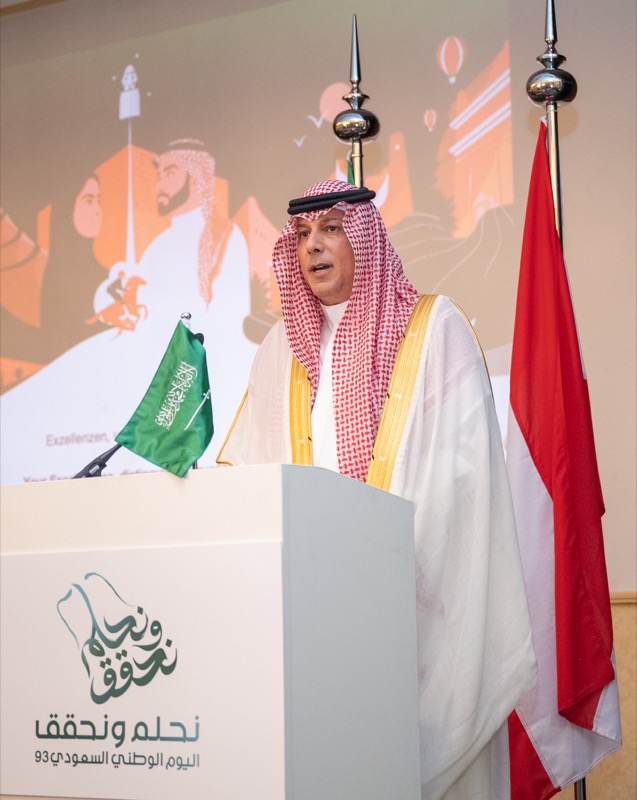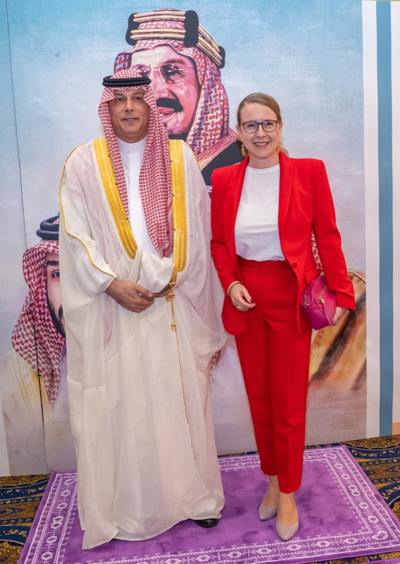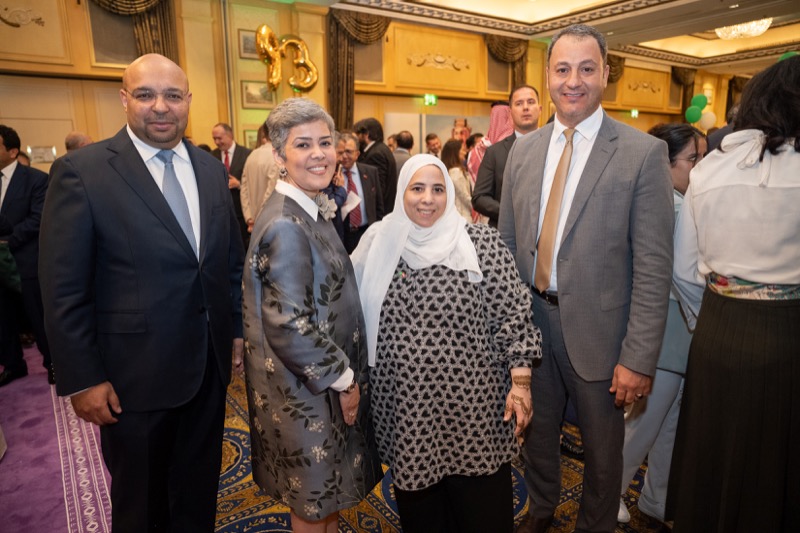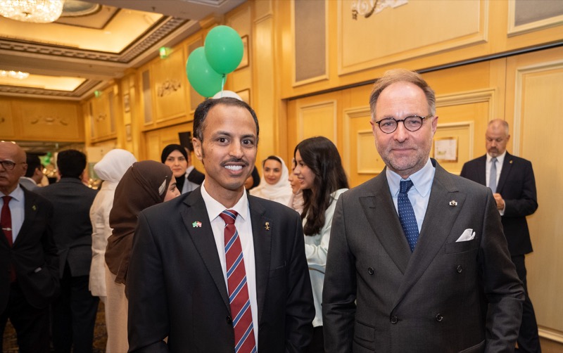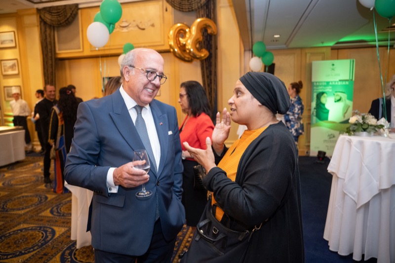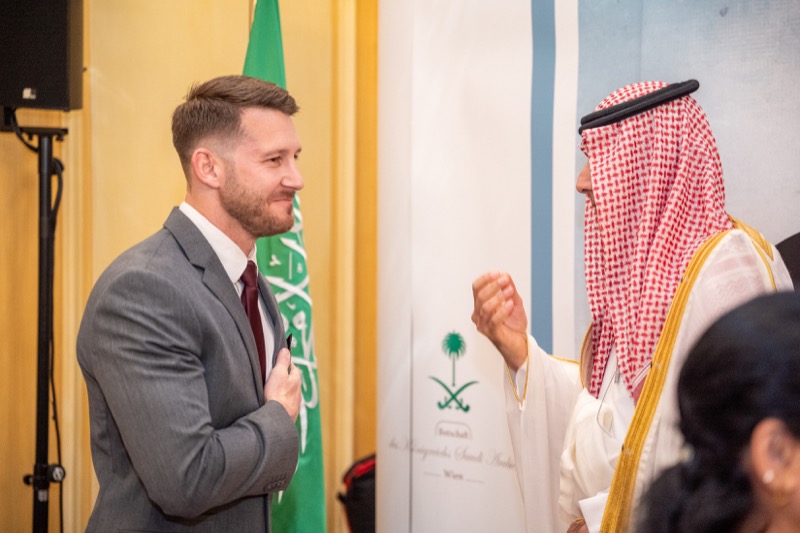 Anlässlich des 93. Nationalfeiertages luden der designierte Botschafter und ständige Vertreter bei den internationalen Organisationen des Königreichs Saudi Arabien, H.E. Abdullah Bin Khalid Tawlah, und Frau Marwah Mohammed A. Bederi, zu einem Empfang.