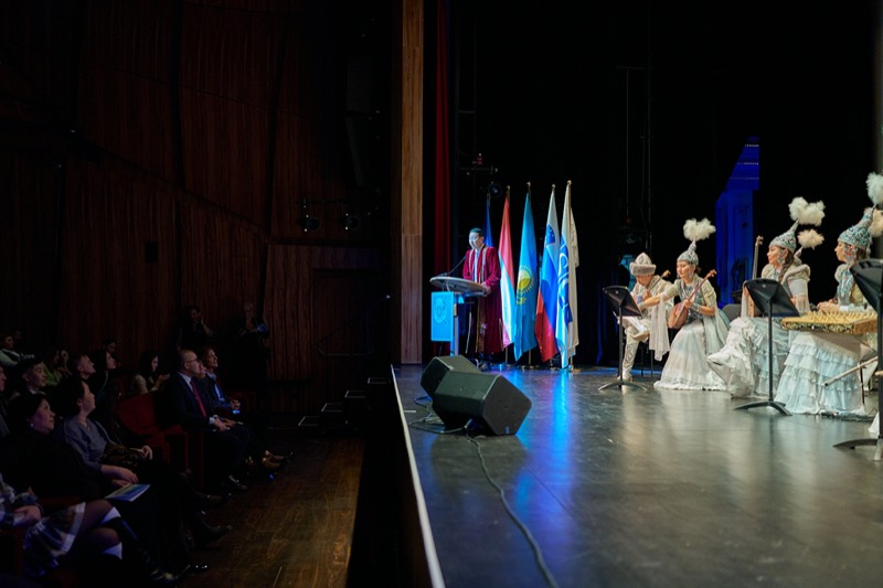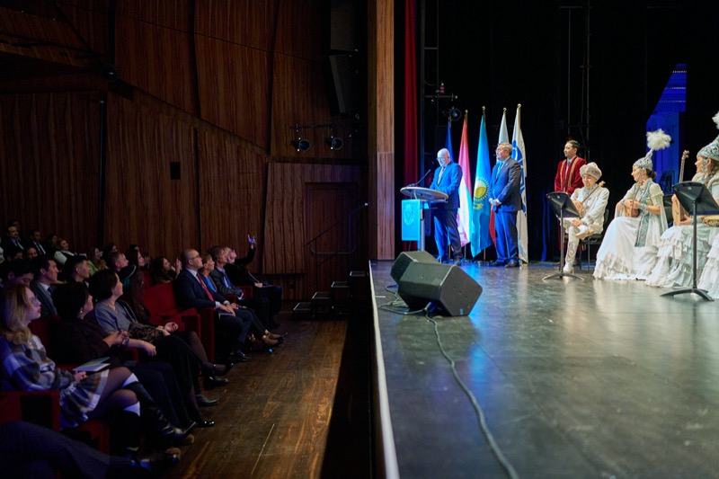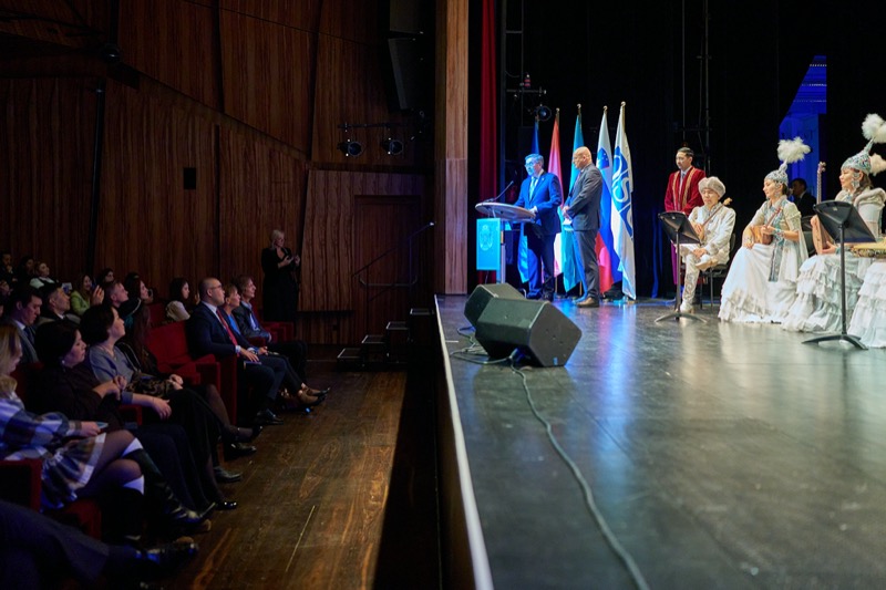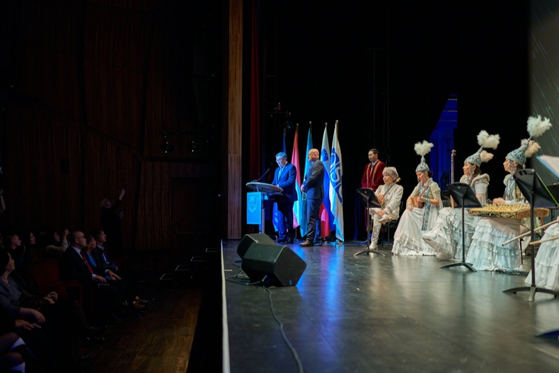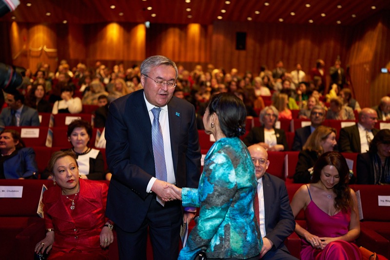 S.E. Mukhtar Tileuberdi, Botschafter von Kasachstan in Österreich und ständiger Vertreter bei den internationalen Organisationen, lud anlässlich des Unabhängigkeitstages zu einem Konzert des Ethno-Folk Ensembles "Sazgen Sazy" in den MuTh Konzertsaal.