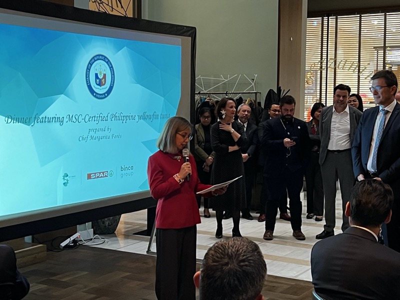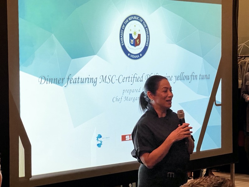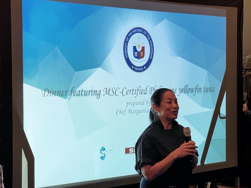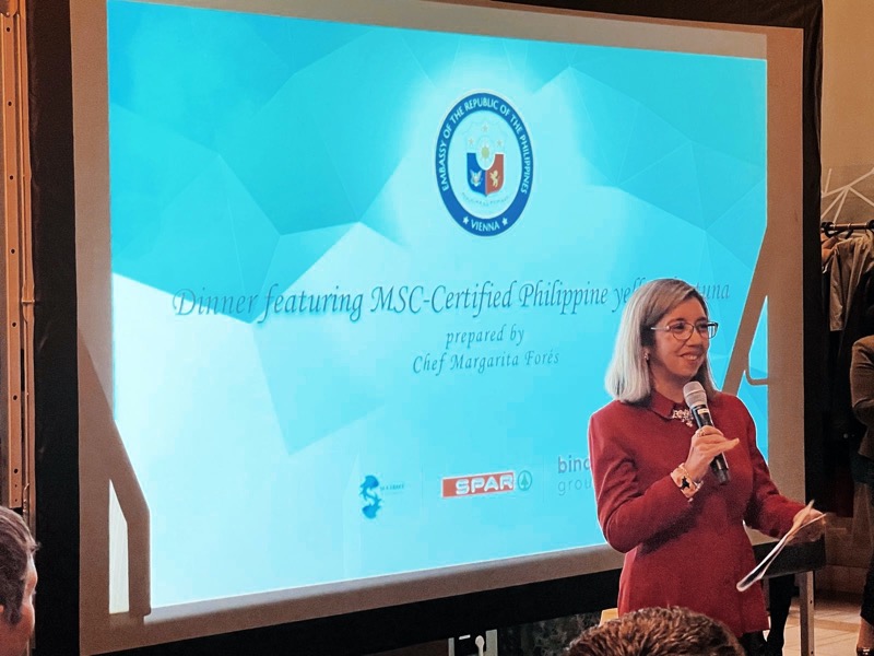 I.E. Evangelina Lourdes A. Bernas, Botschafterin und Ständige Vertreterin der Philippinen in Österreich, lud zu einem exklusiven Abend in das Restaurant das Mezzanin im INTERSPAR Flagship in der Wiener Schottengasse. Von Chefin Margarita Forés und Ihrem Team wurden Köstlichkeiten mit MSC-zertifiziertem Gelbflossen-Thunfisch von den Philippinen zubereitet.